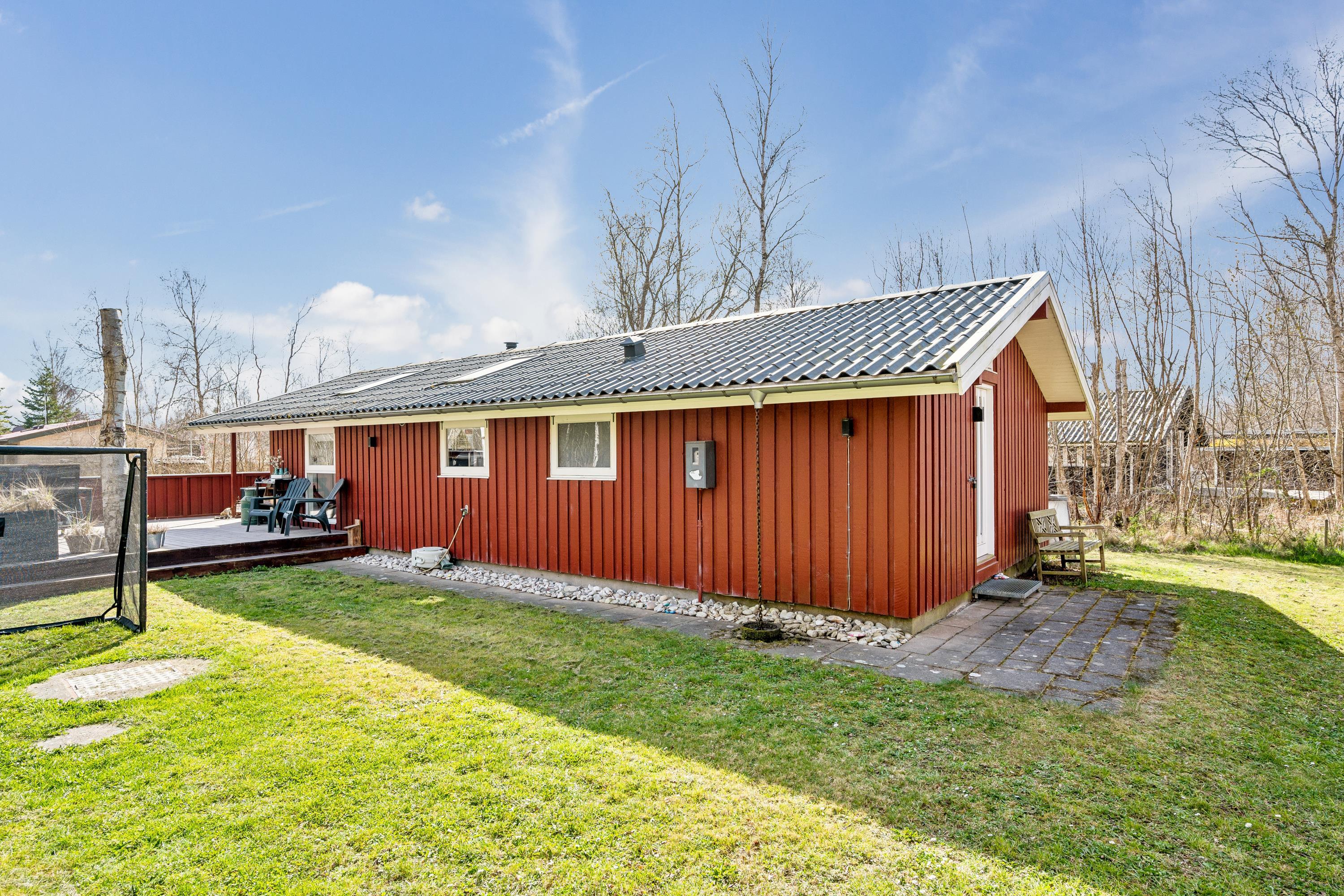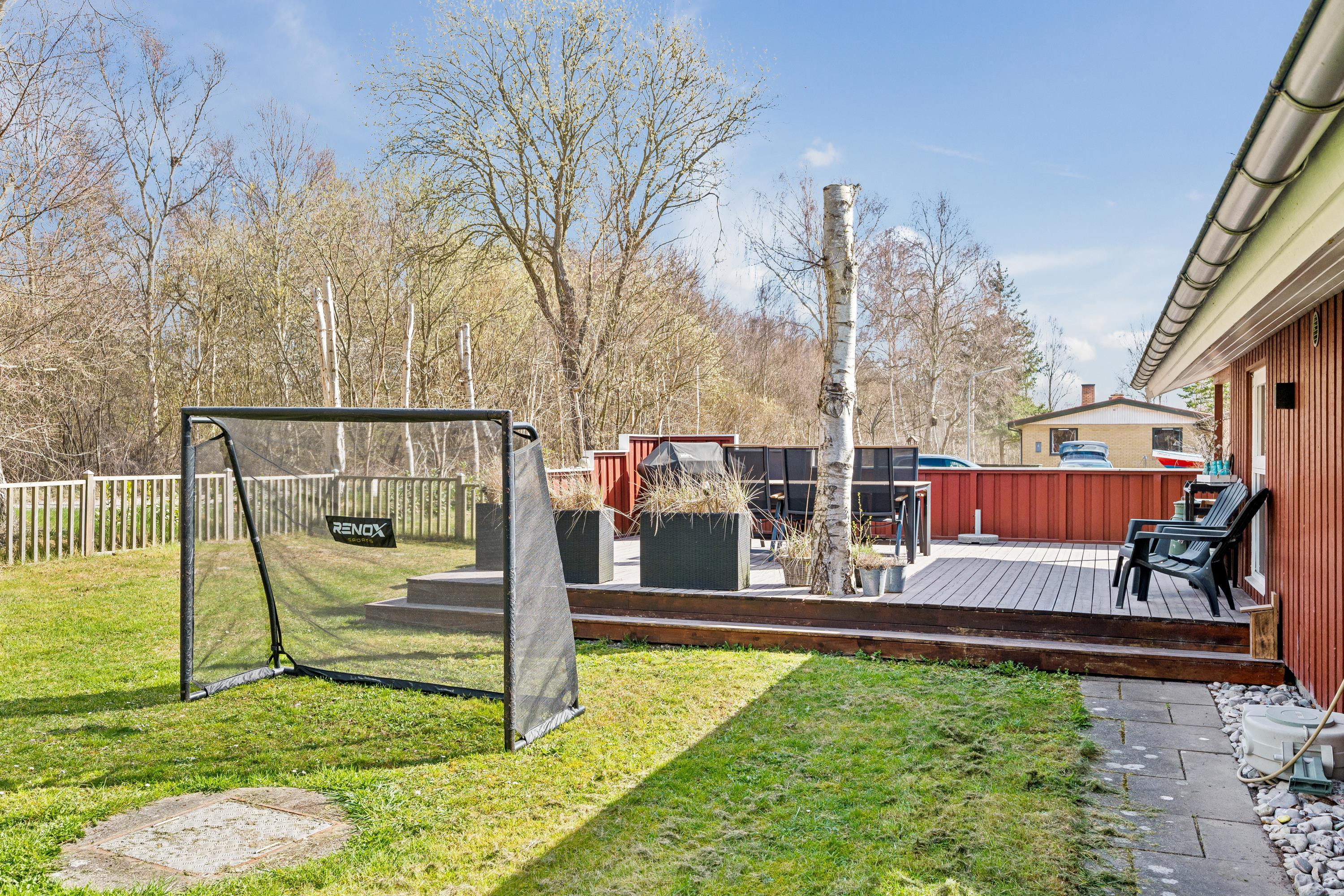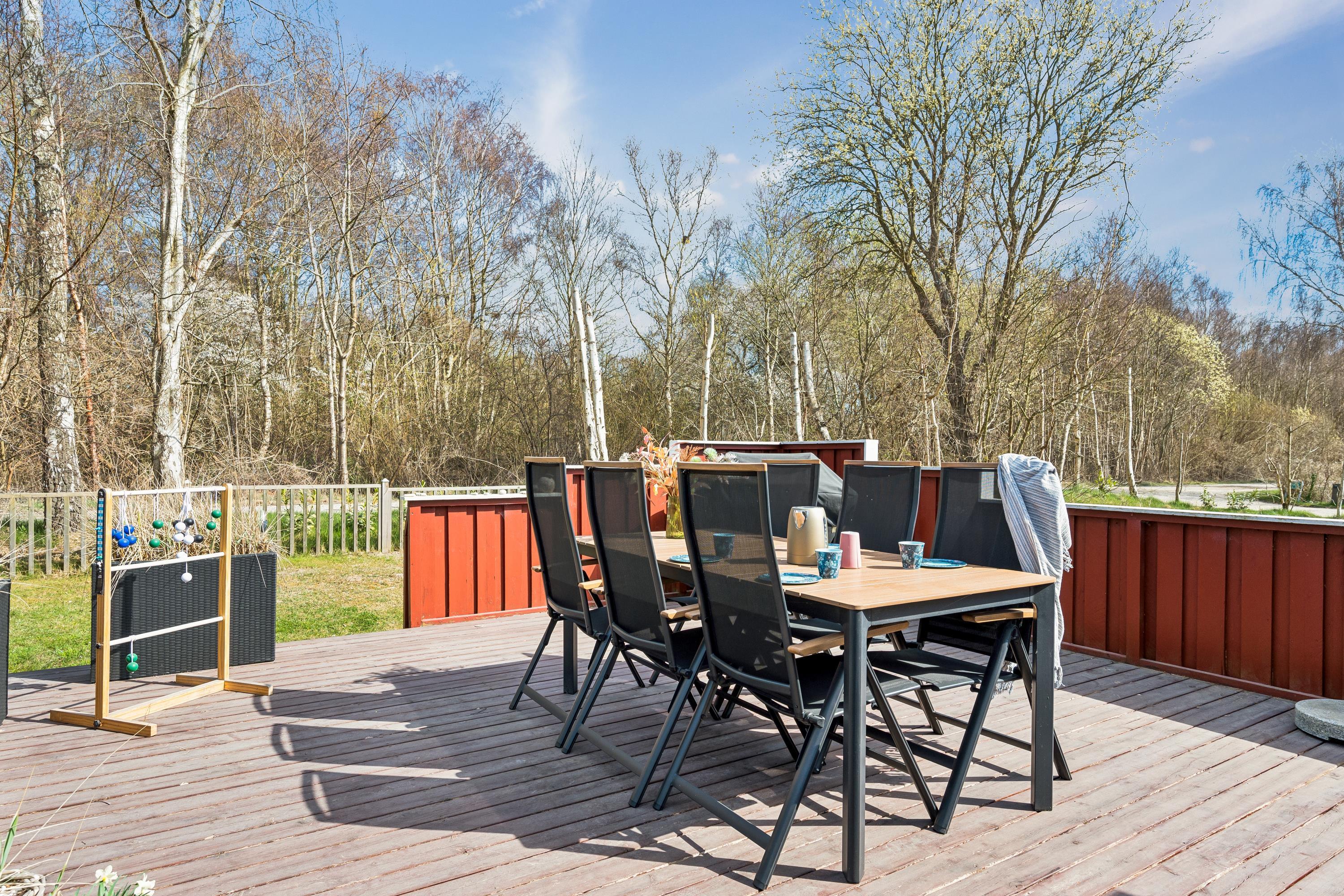 The house sits on a beautiful plot with a large lawn, perfect for play and ball games. A wide variety of outdoor games are freely available, such as Kubb (Viking game), bean bag toss, and more, along with swings, a slide, and a football goal. A truly delightful house for a small family with children – and the beach is within walking distance.