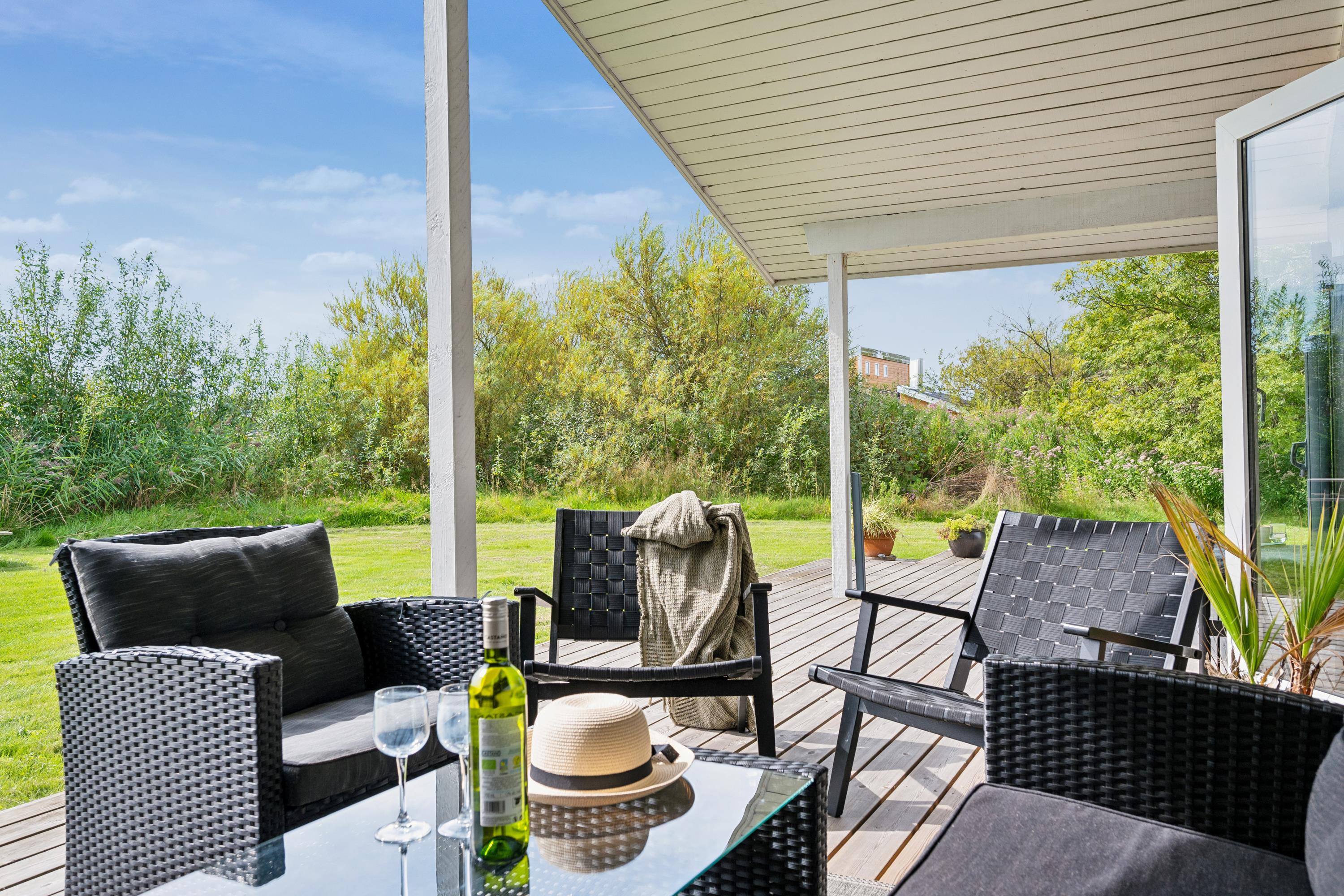 Well-maintained and well-equipped holiday house located in the beautiful landscape near Øer, just 150 meters from the child-friendly Øer Strand. Large, lovely, partially covered south- and west-facing wooden terrace with garden furniture, sun loungers, parasol, and a grill.