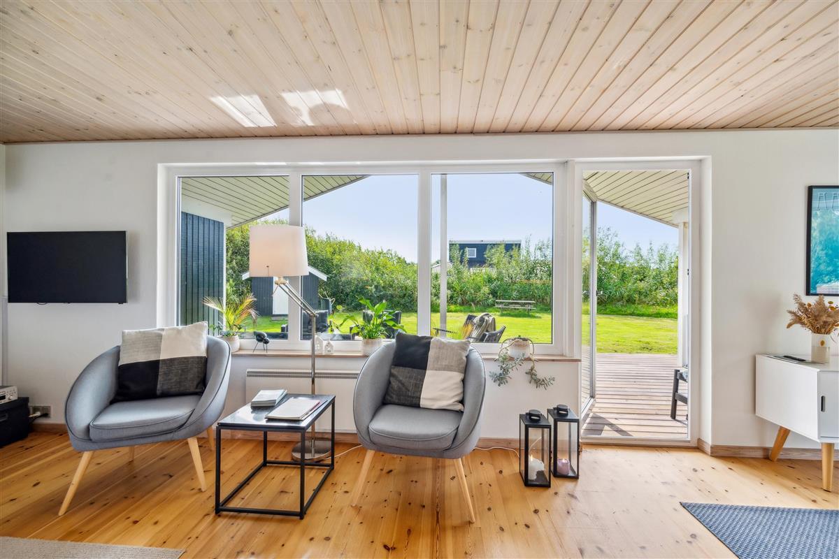 The 88 sqm. include a bright and well-furnished living room with access to a covered terrace. There is dining space for 8 people, a wood-burning stove, TV with Danish Free channels and German channels, Apple TV, CD player, and radio + USB connection for smartphones. The spacious, well-equipped kitchen is in open connection with the living room and features a ceramic stove with an oven, refrigerator/freezer, dishwasher, and microwave. Large, delightful bathroom with a shower, spa, and sauna, as well as a smaller bathroom with a shower. The large bathroom has underfloor heating. Additionally, there is a practical utility room with a washing machine and a dryer. The 6 sleeping places are distributed among a large, bright bedroom with a double bed and 2 smaller rooms with 2 single beds each. There is also a cozy little annex that accommodates two extra single beds. The house also has a cot and a high chair. Internet access/WIFI is available.