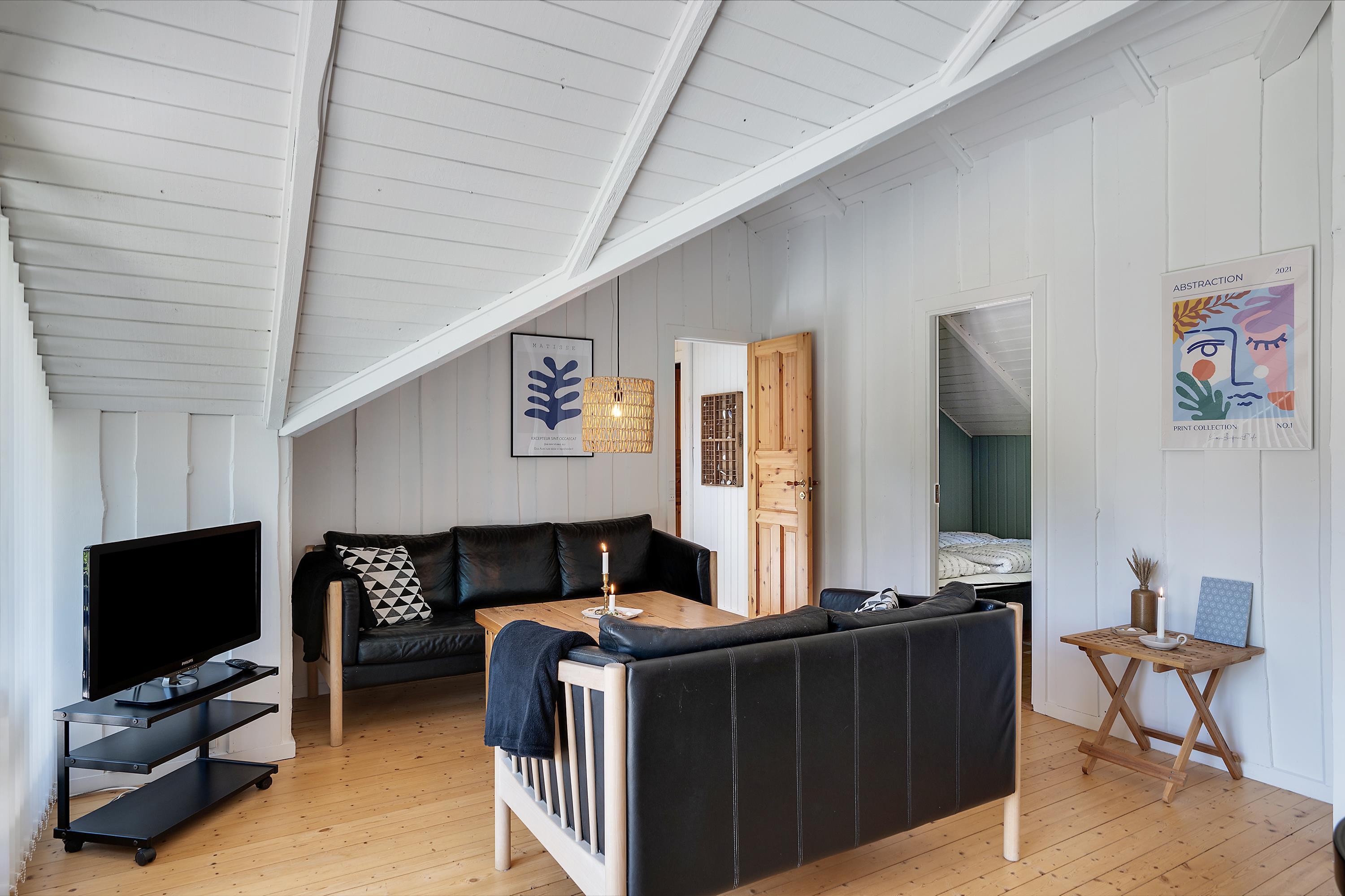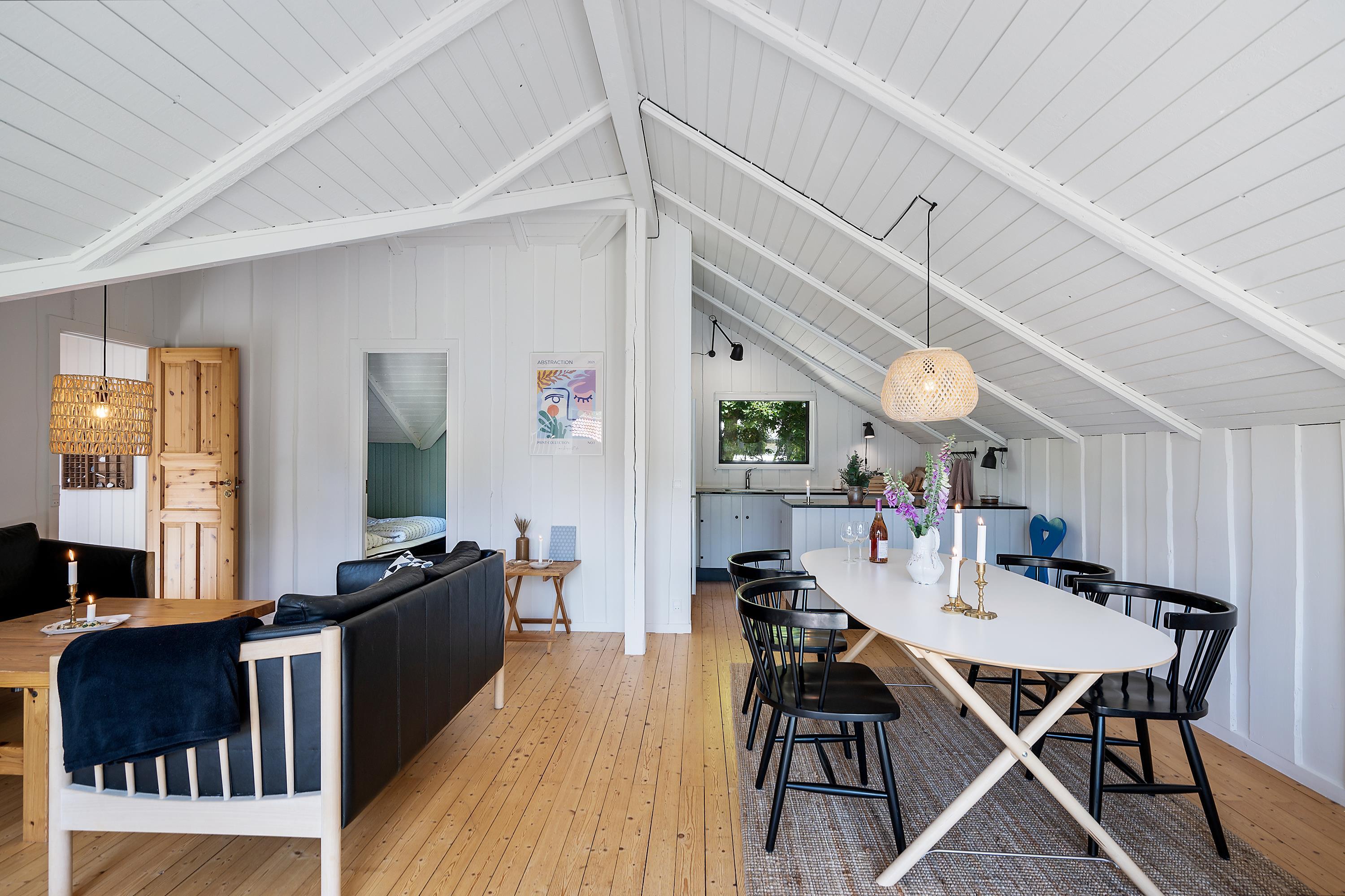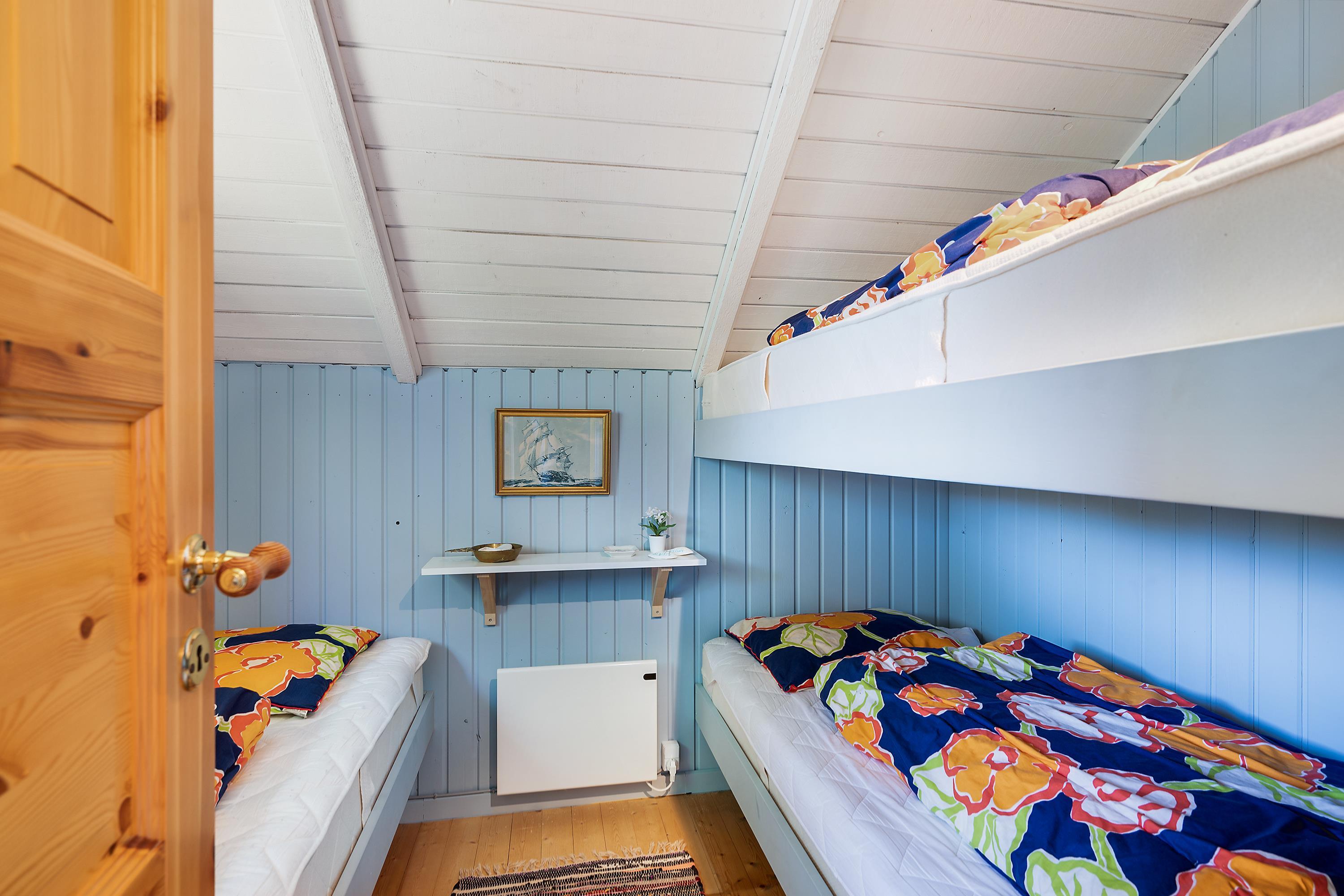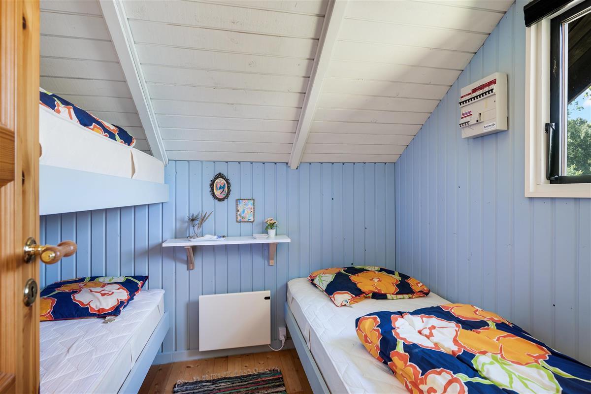 As soon as you open the door and step into the entrance, you sense the genuine cottage atmosphere in this house. Here, you'll find a well-appointed and truly cozy living room with good furniture and, among other things, a heat pump. From the living room, there is access to a lovely covered terrace, where you can sit and eat in peace while observing the rich wildlife in the area. Connected to the dining area, you'll find the smaller but functional kitchen with a dishwasher. The sleeping places in the house are located in the three cozy bedrooms, including one room with a double bed and two rooms with bunk beds. Nice and bright bathroom with a shower. There is internet in the house.