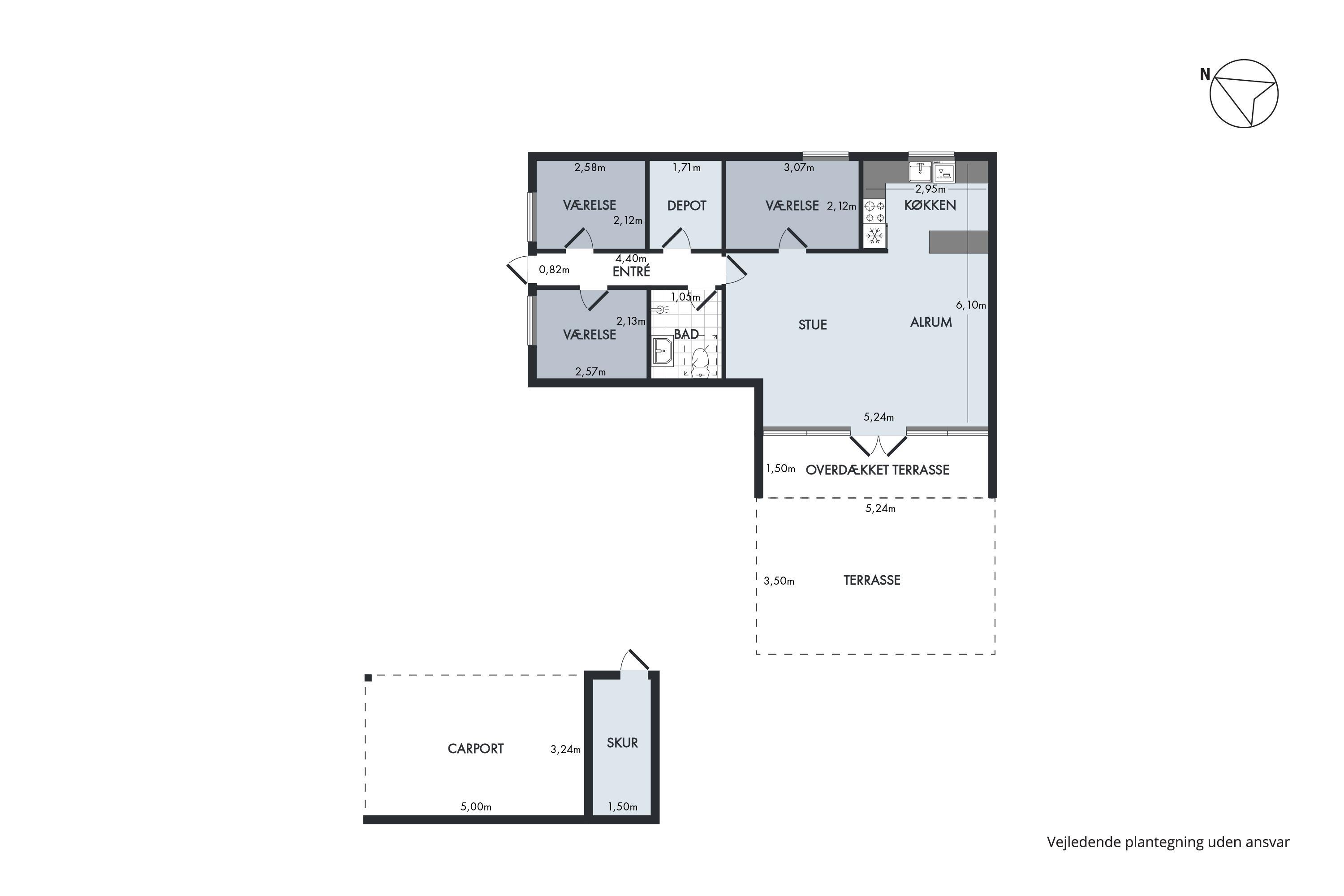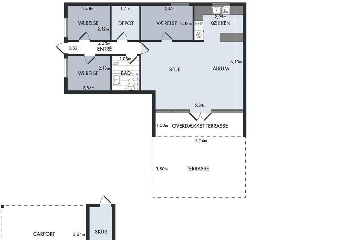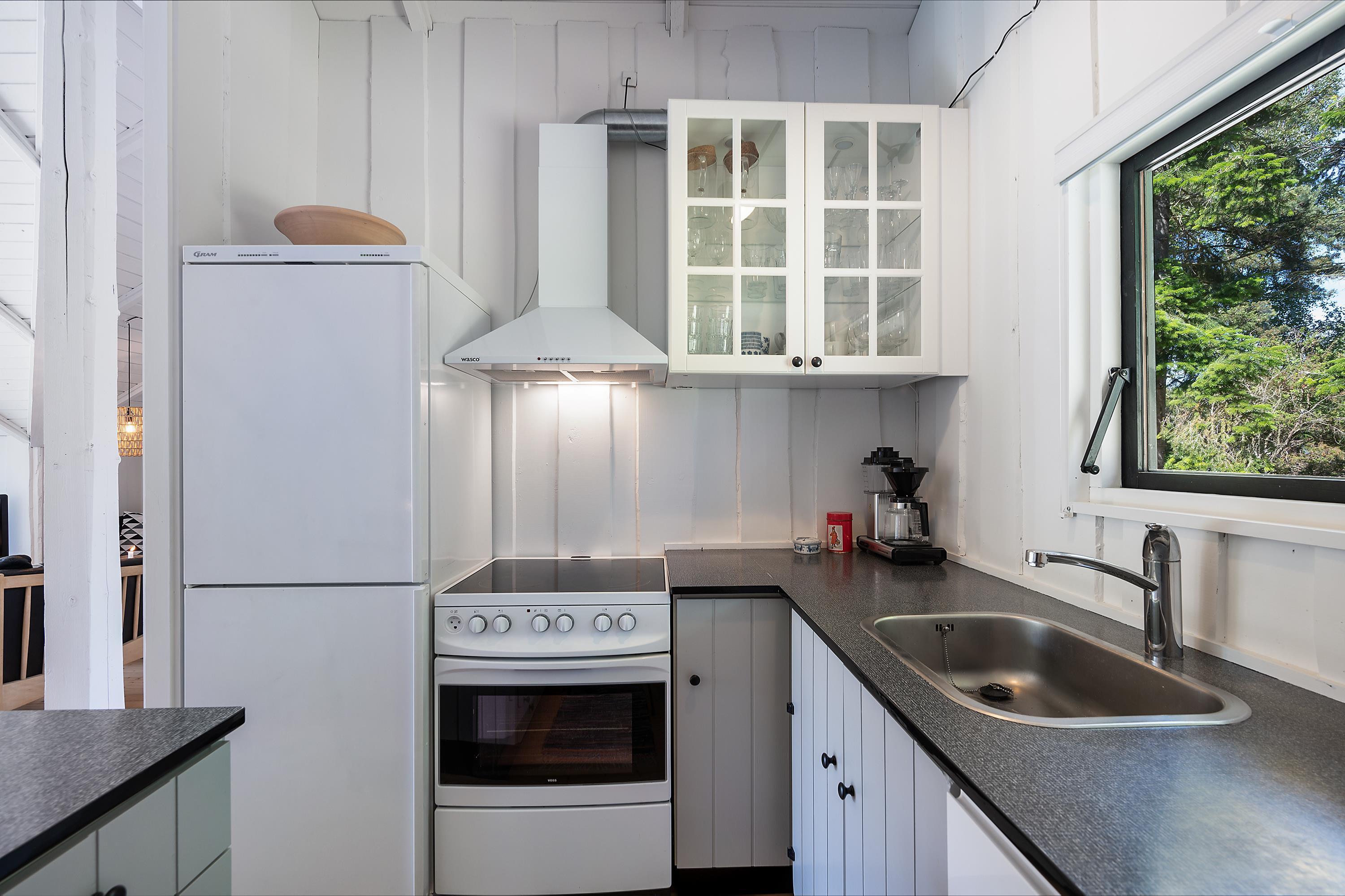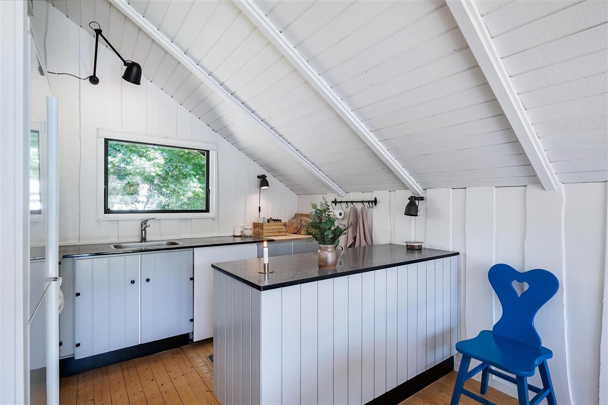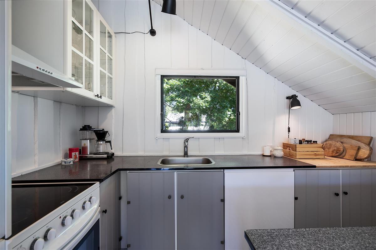 As soon as you open the door and step into the entrance, you sense the genuine cottage atmosphere in this house. Here, you'll find a well-appointed and truly cozy living room with good furniture and, among other things, a heat pump. From the living room, there is access to a lovely covered terrace, where you can sit and eat in peace while observing the rich wildlife in the area. Connected to the dining area, you'll find the smaller but functional kitchen with a dishwasher. The sleeping places in the house are located in the three cozy bedrooms, including one room with a double bed and two rooms with bunk beds. Nice and bright bathroom with a shower. There is internet in the house.
