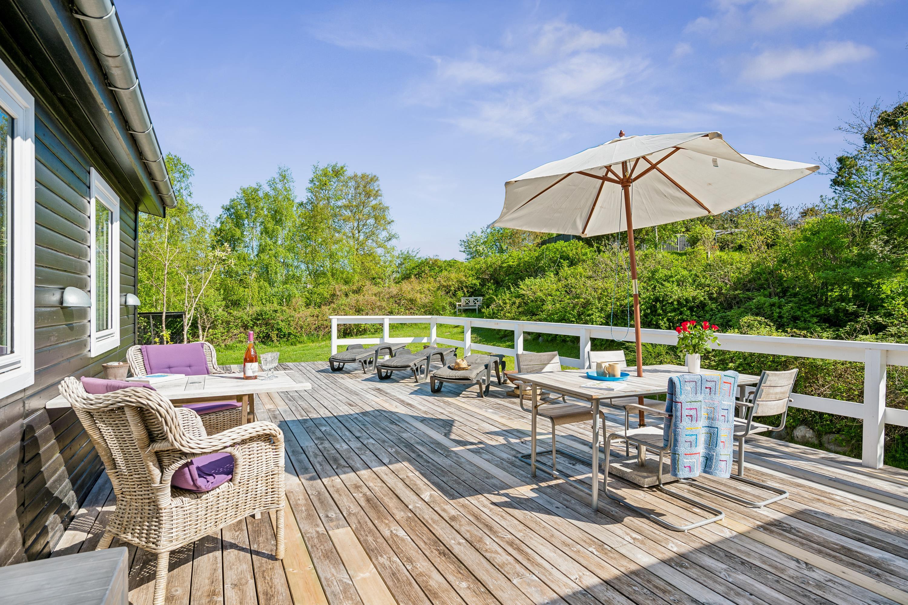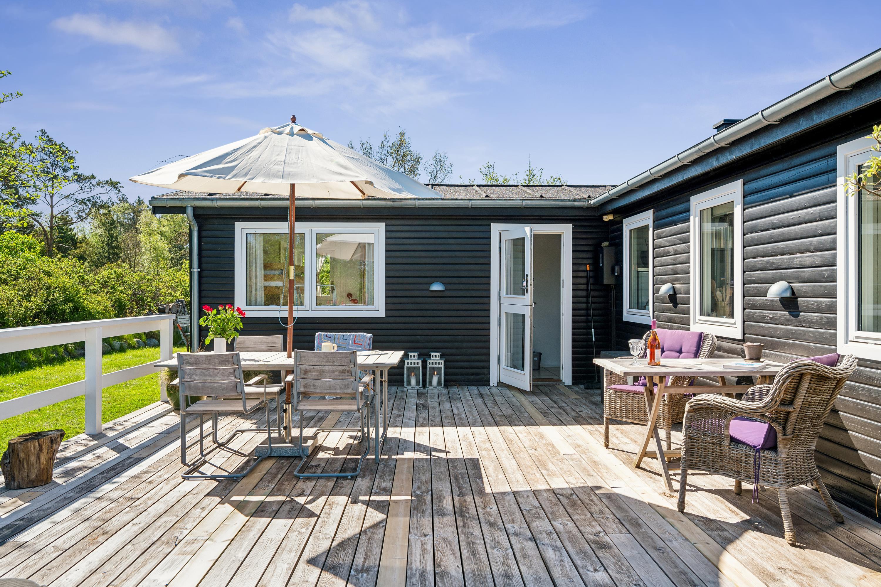The area around Øer is a cozy and popular vacation spot close to the forest and the beach. The beach is characterized by shallow water and sandy shores, although in certain places, it may be a mix of stones and sand. For mountain biking enthusiasts, there is a 13 km trail in the area, divided into various difficulty levels. It takes about 5 minutes by car from the house to the harbor in Ebeltoft, where you'll find the Glass Museum, a leading institution in modern glass art, and the frigate Jylland. On the harbor, there are also several good dining options, and you can always buy freshly caught fish. In the charming cobblestone streets of Ebeltoft, you'll find many exciting shops with, among other things, handicrafts and small cozy cafes. The town's most visited attraction, the Old Town Hall, can also be found here. From the house, it's about an hour's drive to both the Kattegat Center in Grenaa and Northern Europe's largest amusement park, Djurs Sommerland.