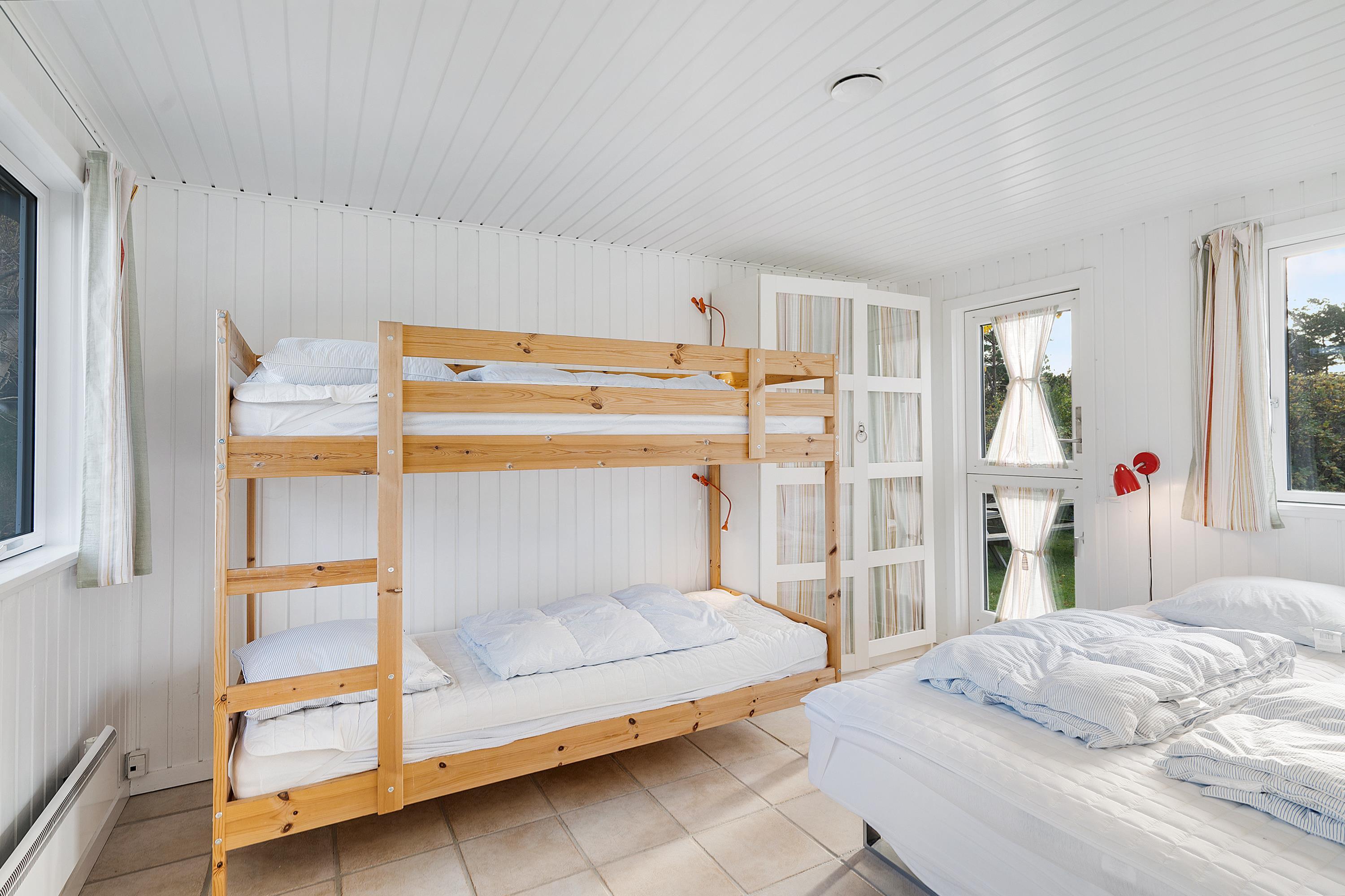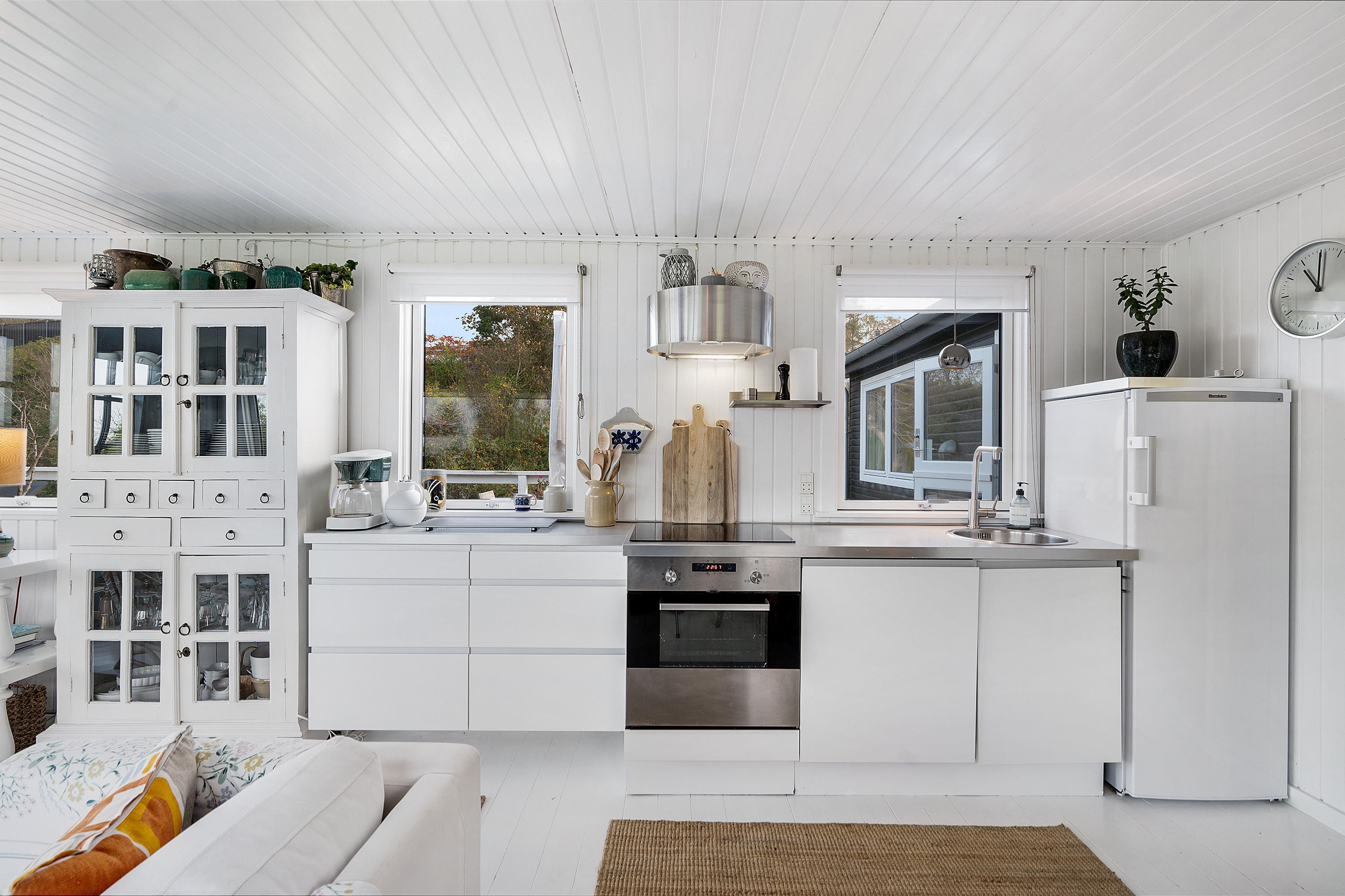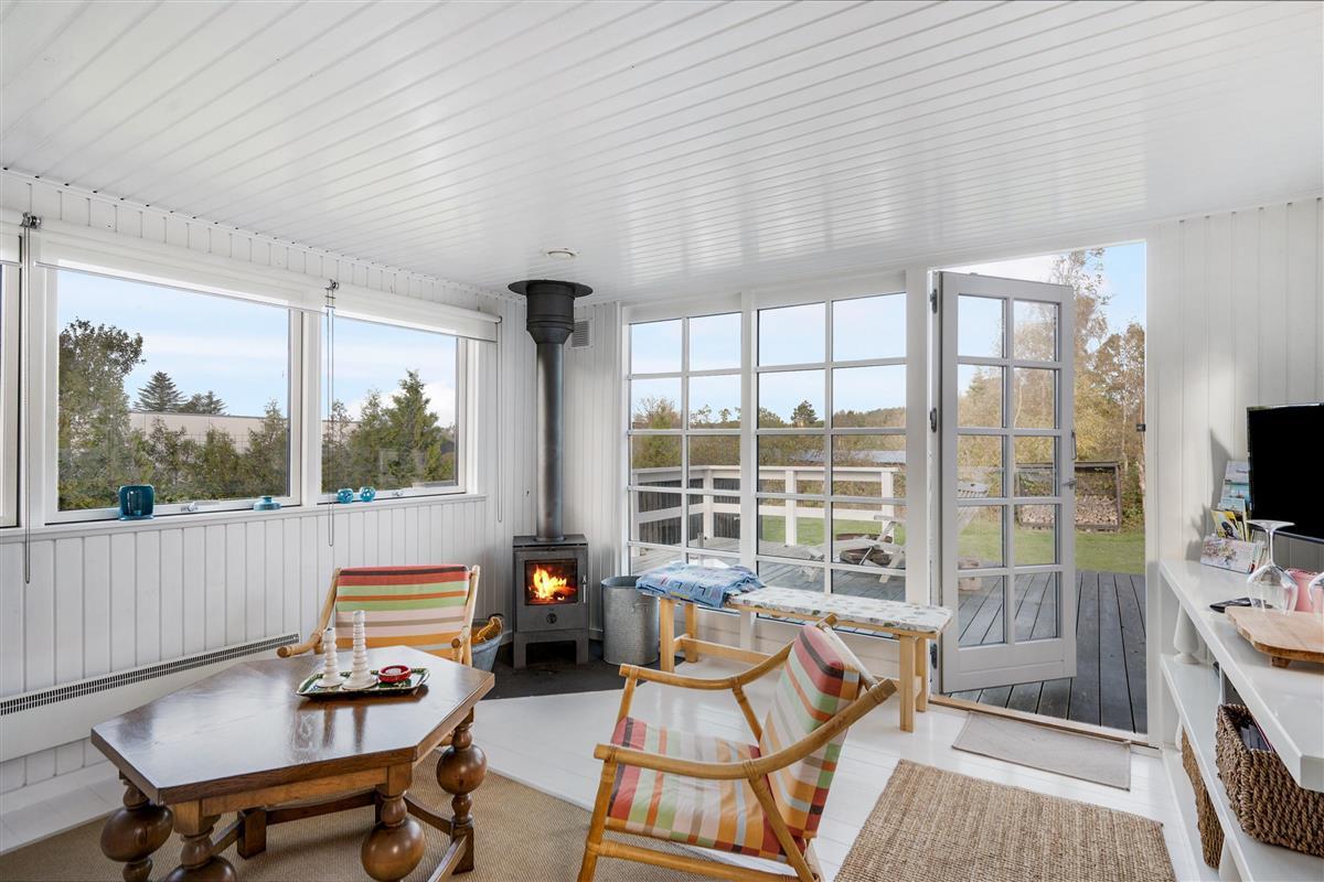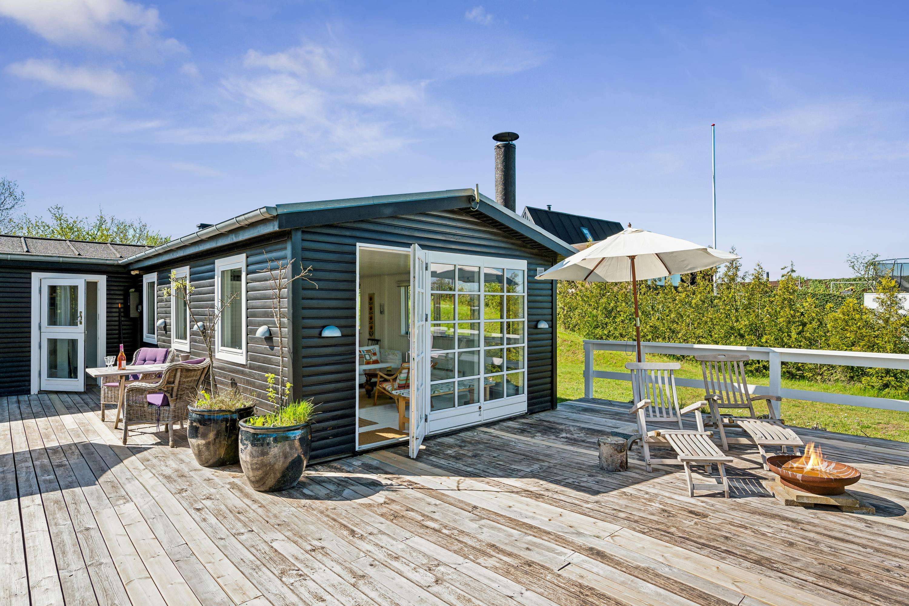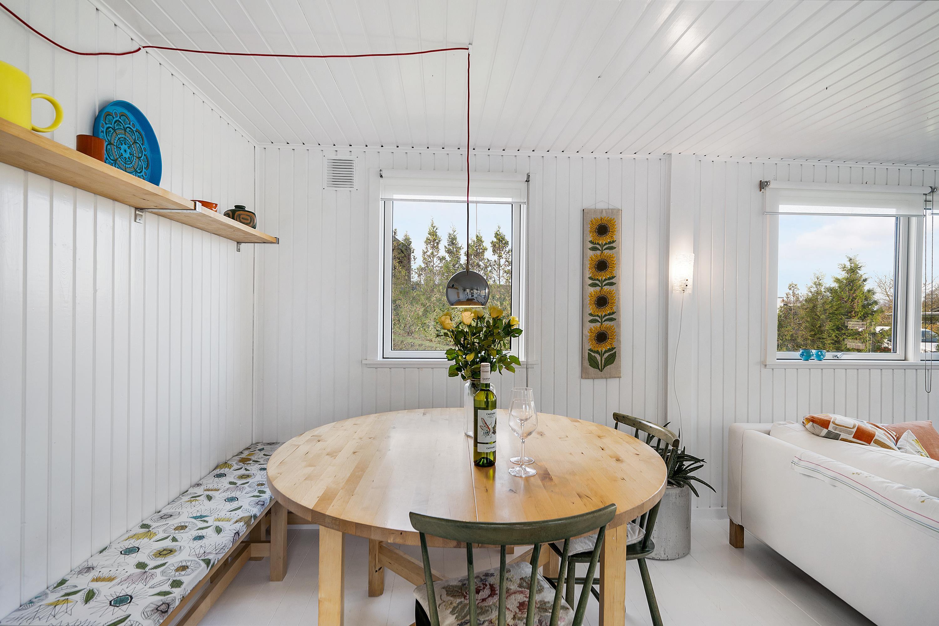 Close to Ebeltoft, you'll find this cozy and atmospheric vacation home that truly exudes authentic cottage charm. The house offers a charmingly furnished and bright living room, including a wood-burning stove. In connection to the living room is the lovely kitchen with amenities such as a dishwasher and a separate dining area. The sleeping accommodations in the house are in two good-sized bedrooms; one with a double bed and another with a bunk bed and a double bed. A very nice bathroom with a shower completes the interior.