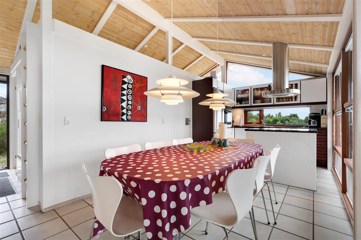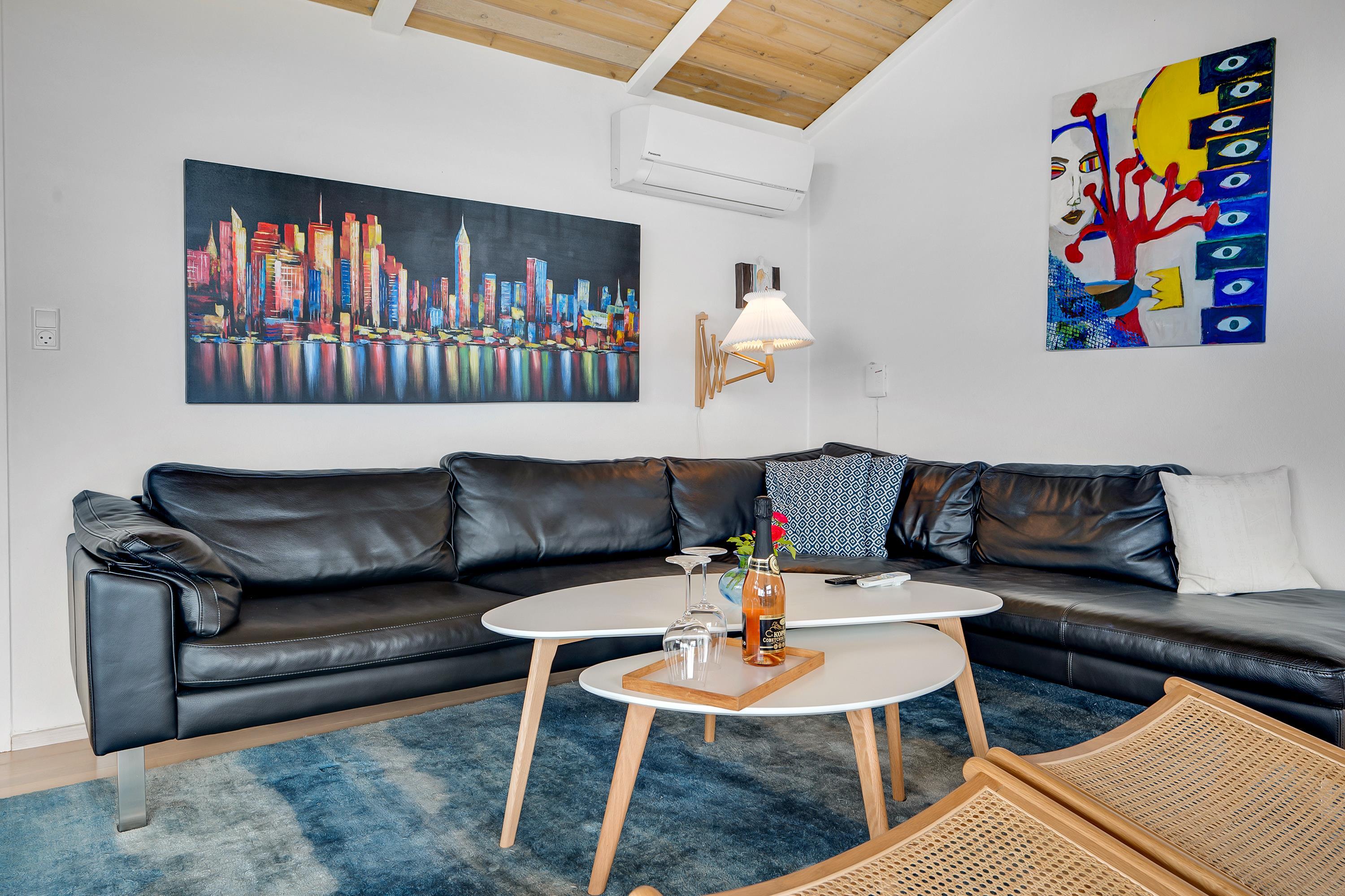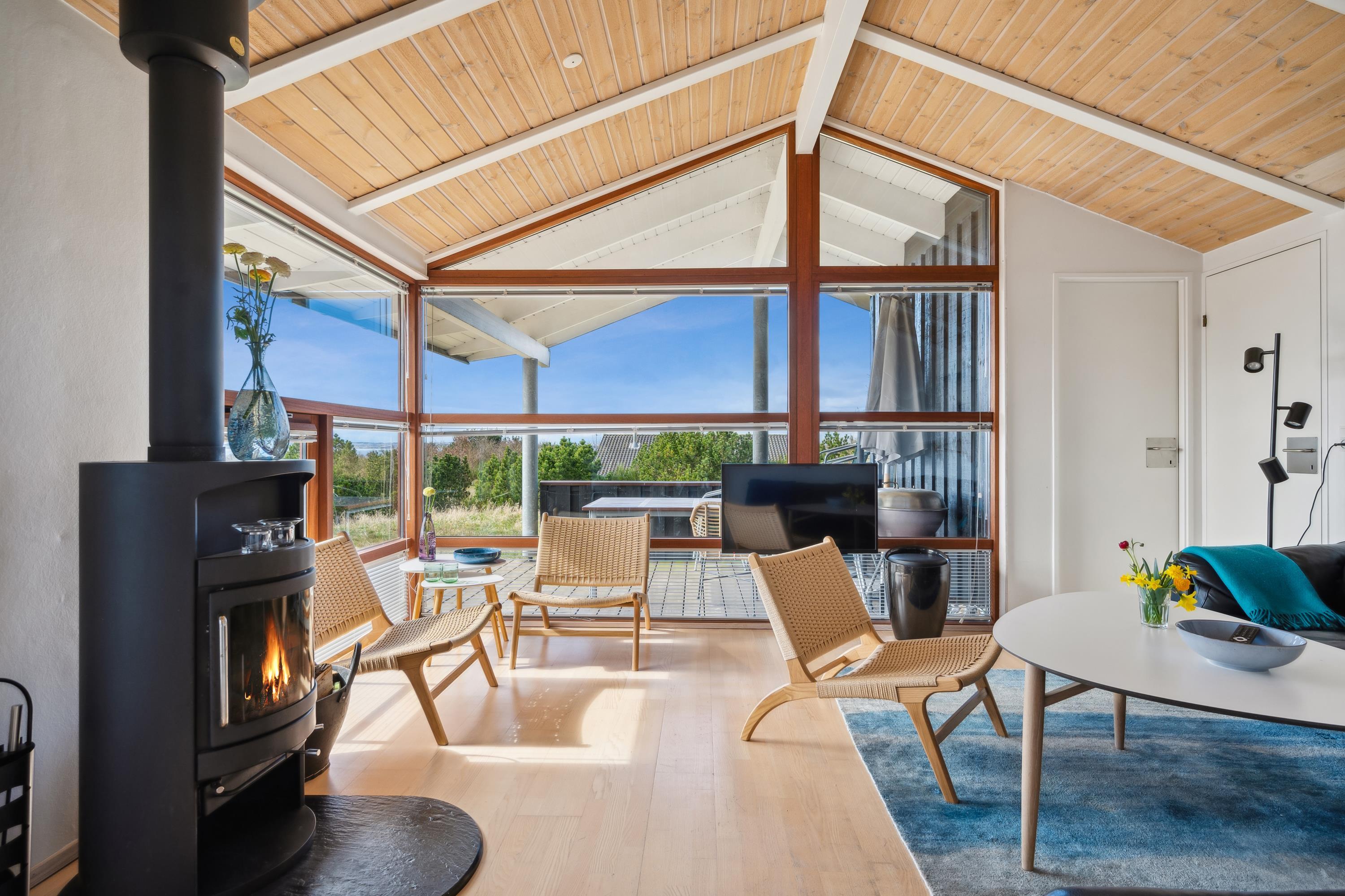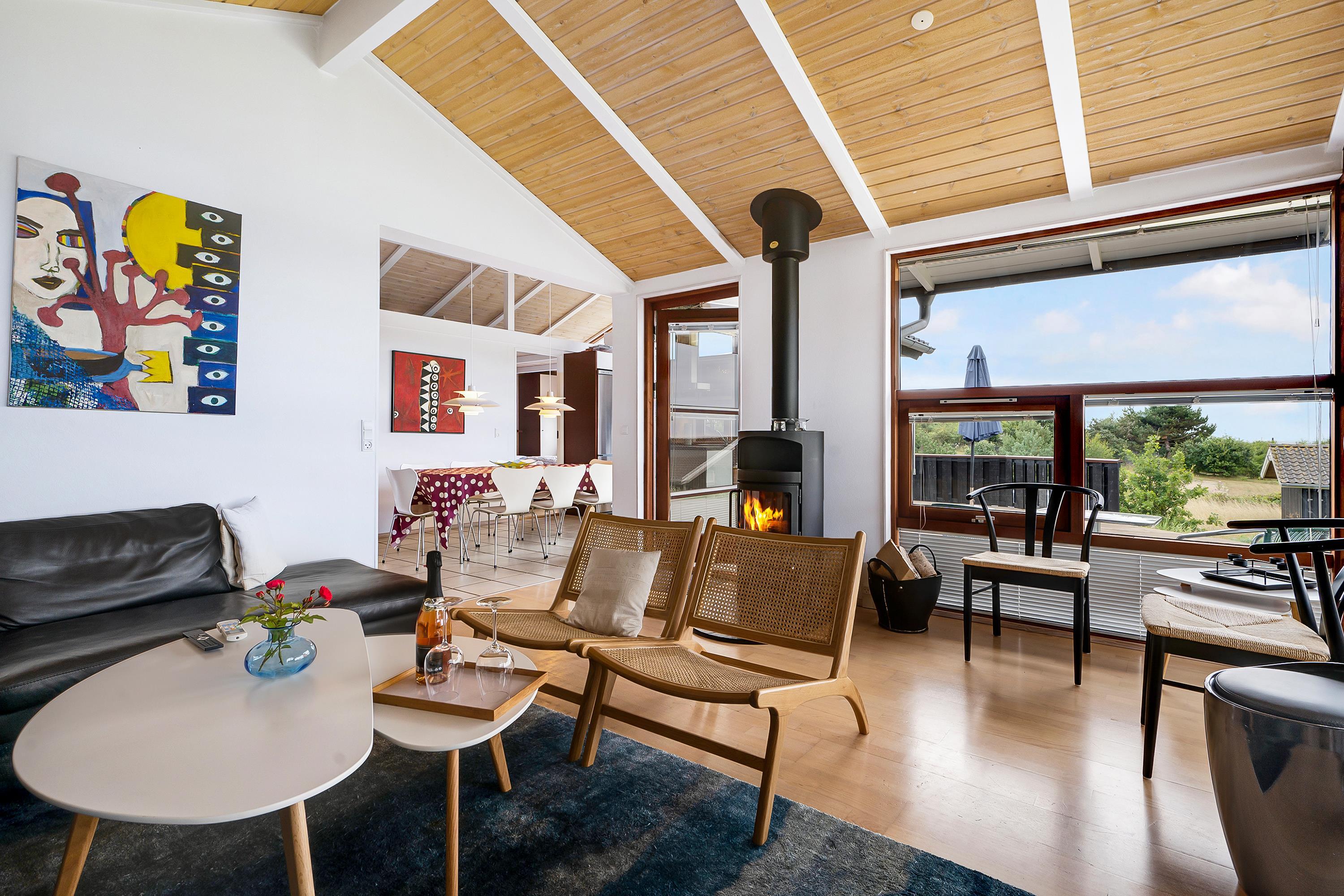 Just a 5-minute drive from Ebeltoft town, you'll find this super beautiful and exceptionally well-maintained holiday home. The house features a delightful, bright, and well-furnished living room with, among other things, a wood-burning stove and heat pump, with access to both a covered and an open terrace from where you have the most beautiful view of the water. Beautiful and well-equipped kitchen with all appliances, underfloor heating, and a separate dining area. Two lovely bathrooms with underfloor heating, one of which has a spa bath, and in the other, you'll find a washing machine and dryer. The sleeping places in the house are in four lovely bedrooms with double beds. A high chair and crib are available for the youngest holiday guests.