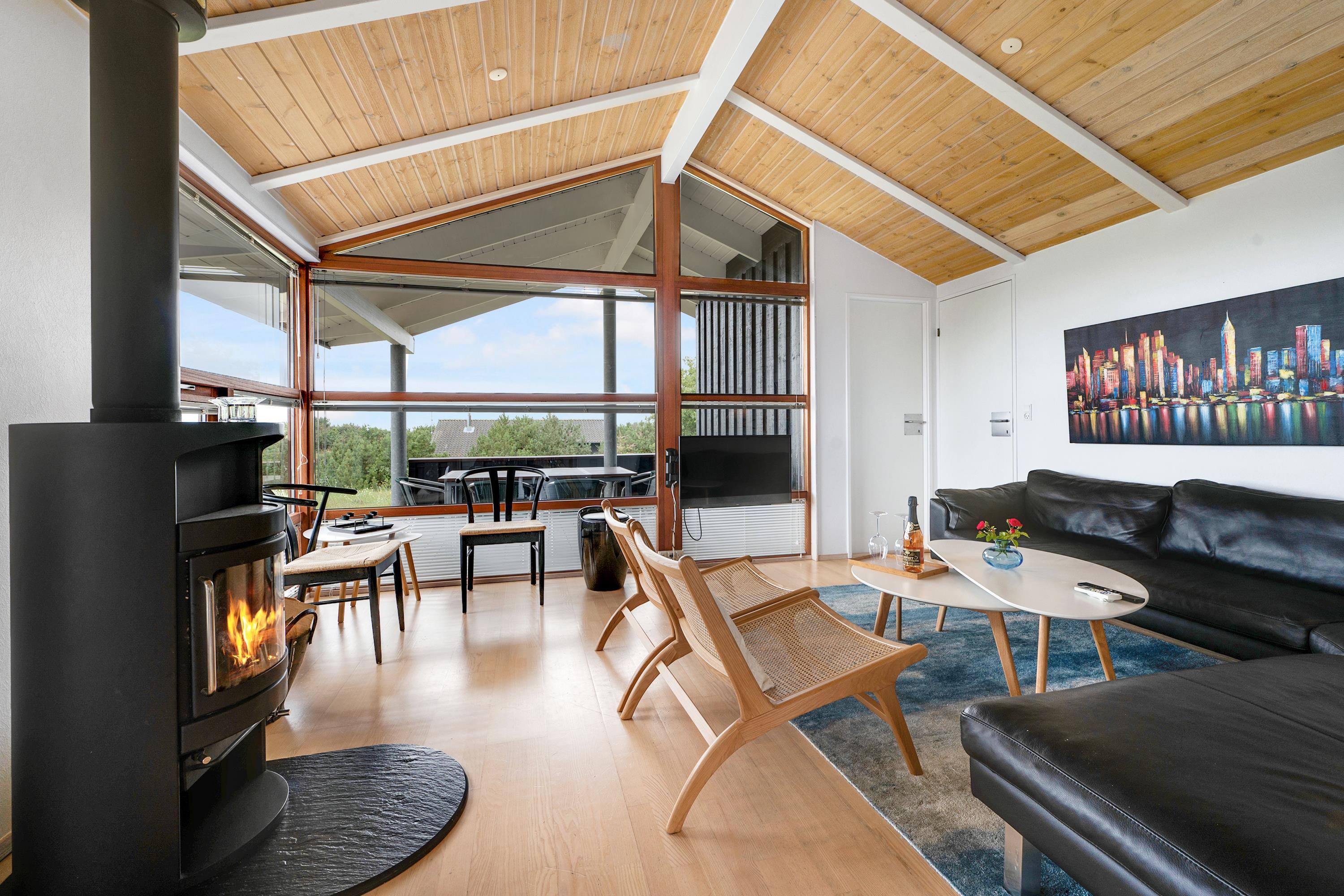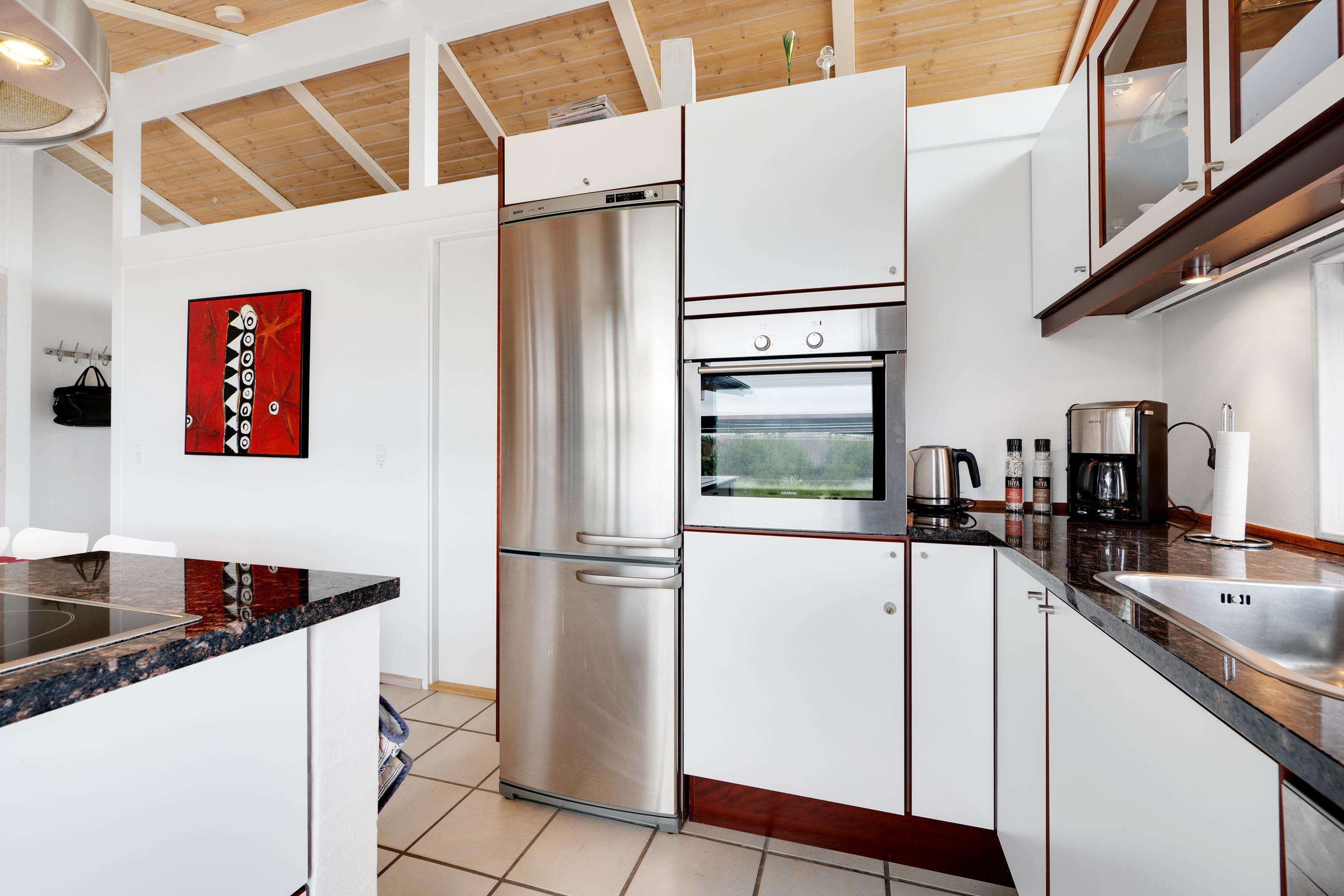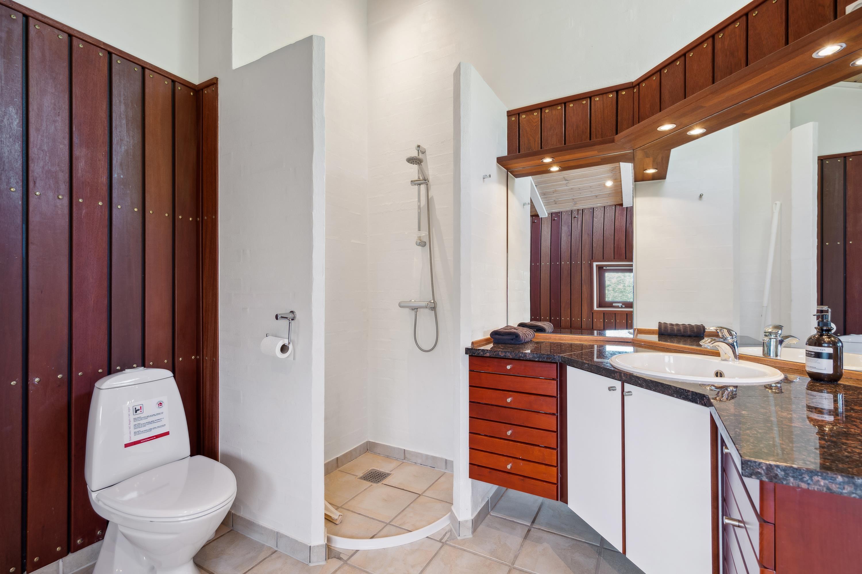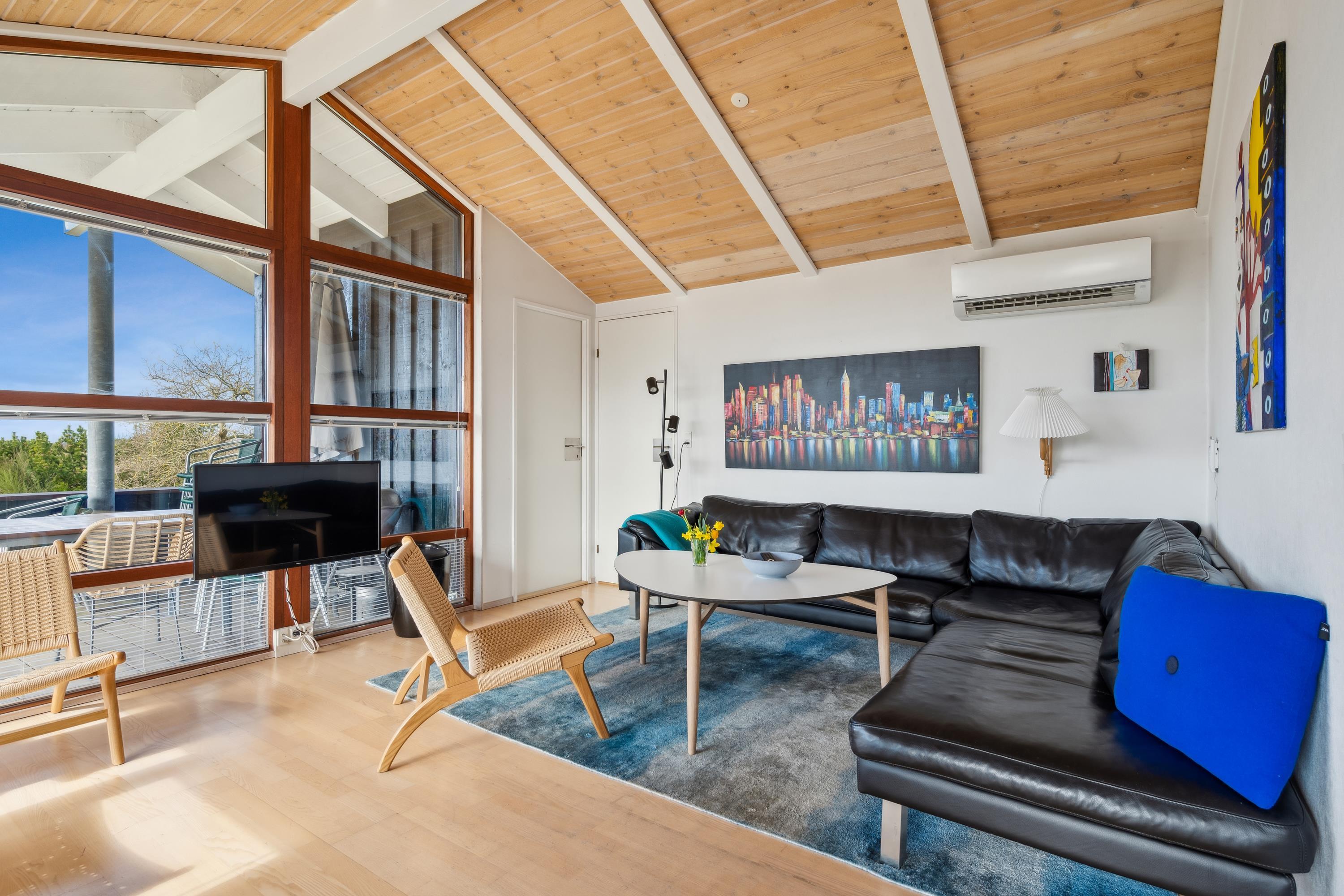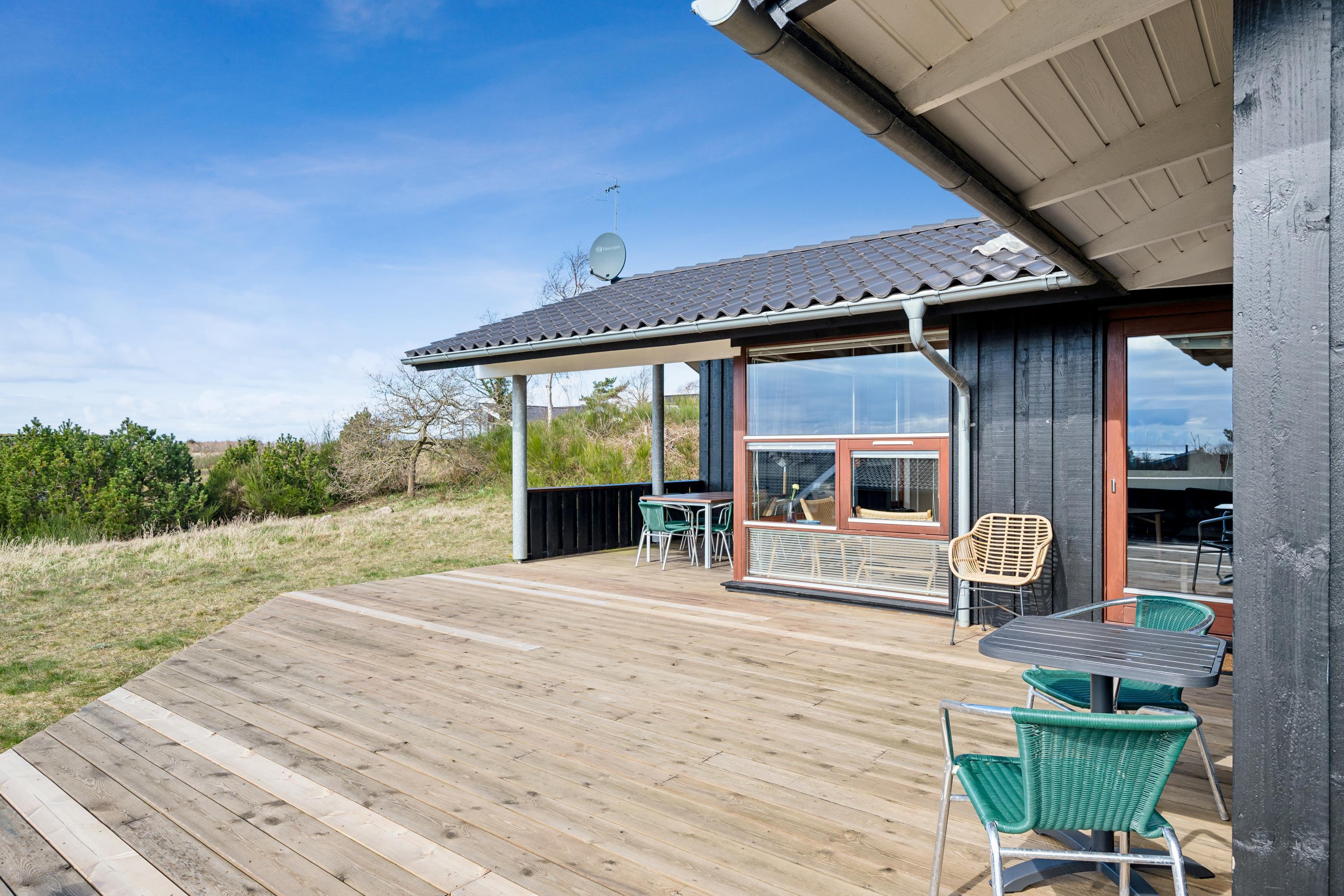 Just a 5-minute drive from Ebeltoft town, you'll find this super beautiful and exceptionally well-maintained holiday home. The house features a delightful, bright, and well-furnished living room with, among other things, a wood-burning stove and heat pump, with access to both a covered and an open terrace from where you have the most beautiful view of the water. Beautiful and well-equipped kitchen with all appliances, underfloor heating, and a separate dining area. Two lovely bathrooms with underfloor heating, one of which has a spa bath, and in the other, you'll find a washing machine and dryer. The sleeping places in the house are in four lovely bedrooms with double beds. A high chair and crib are available for the youngest holiday guests.