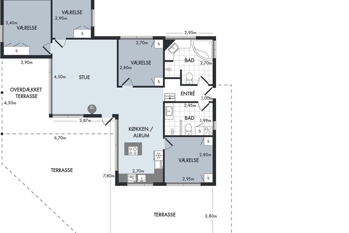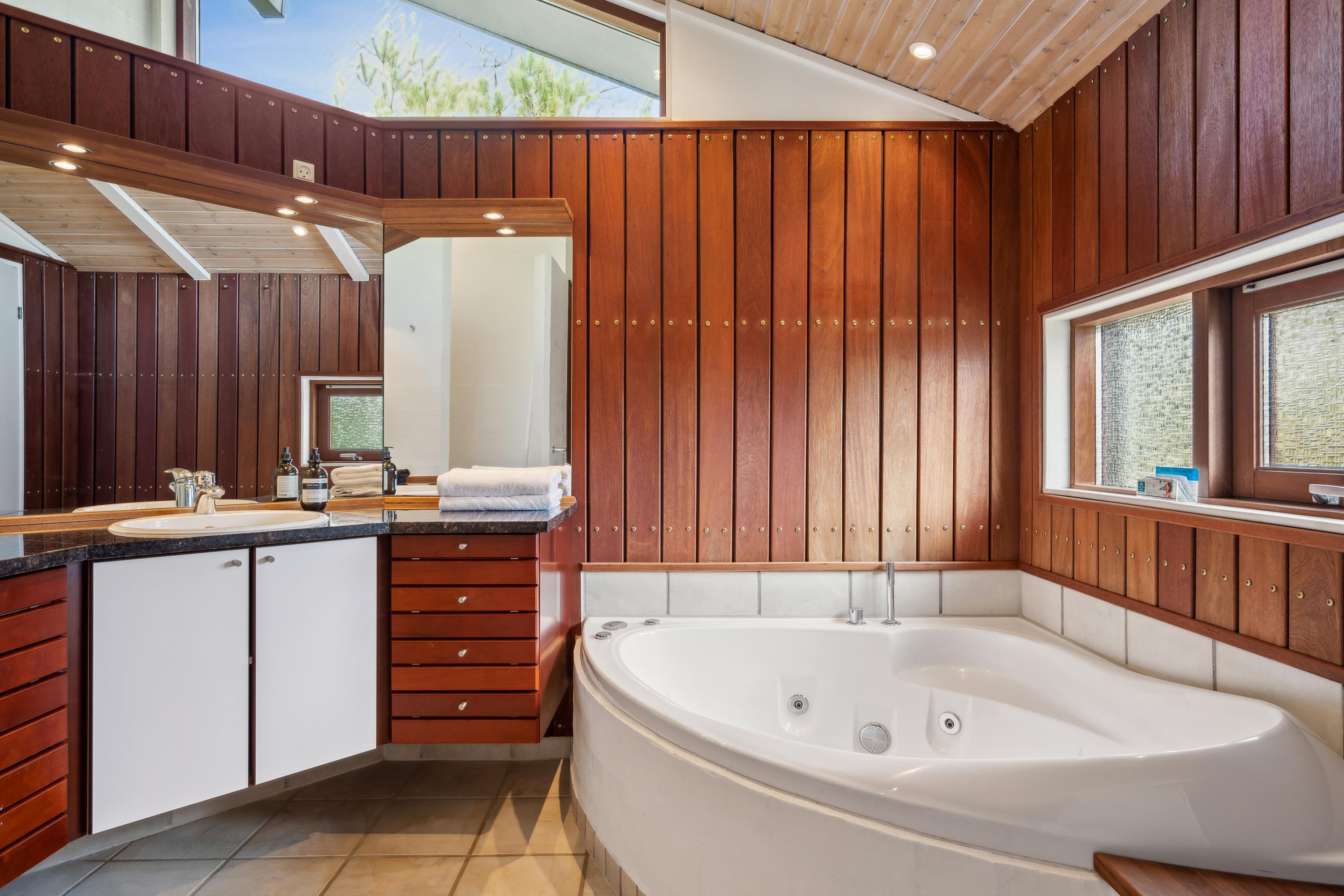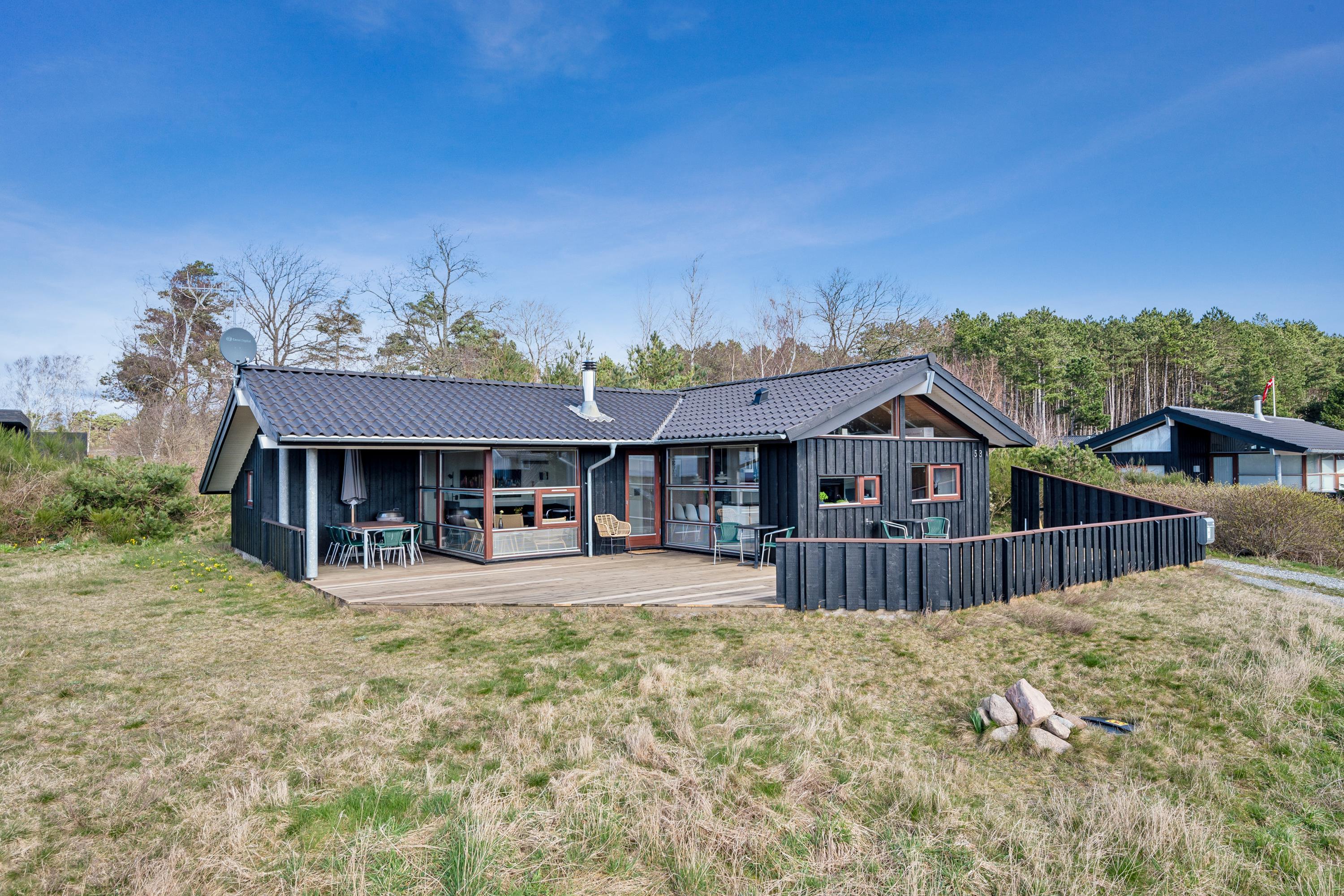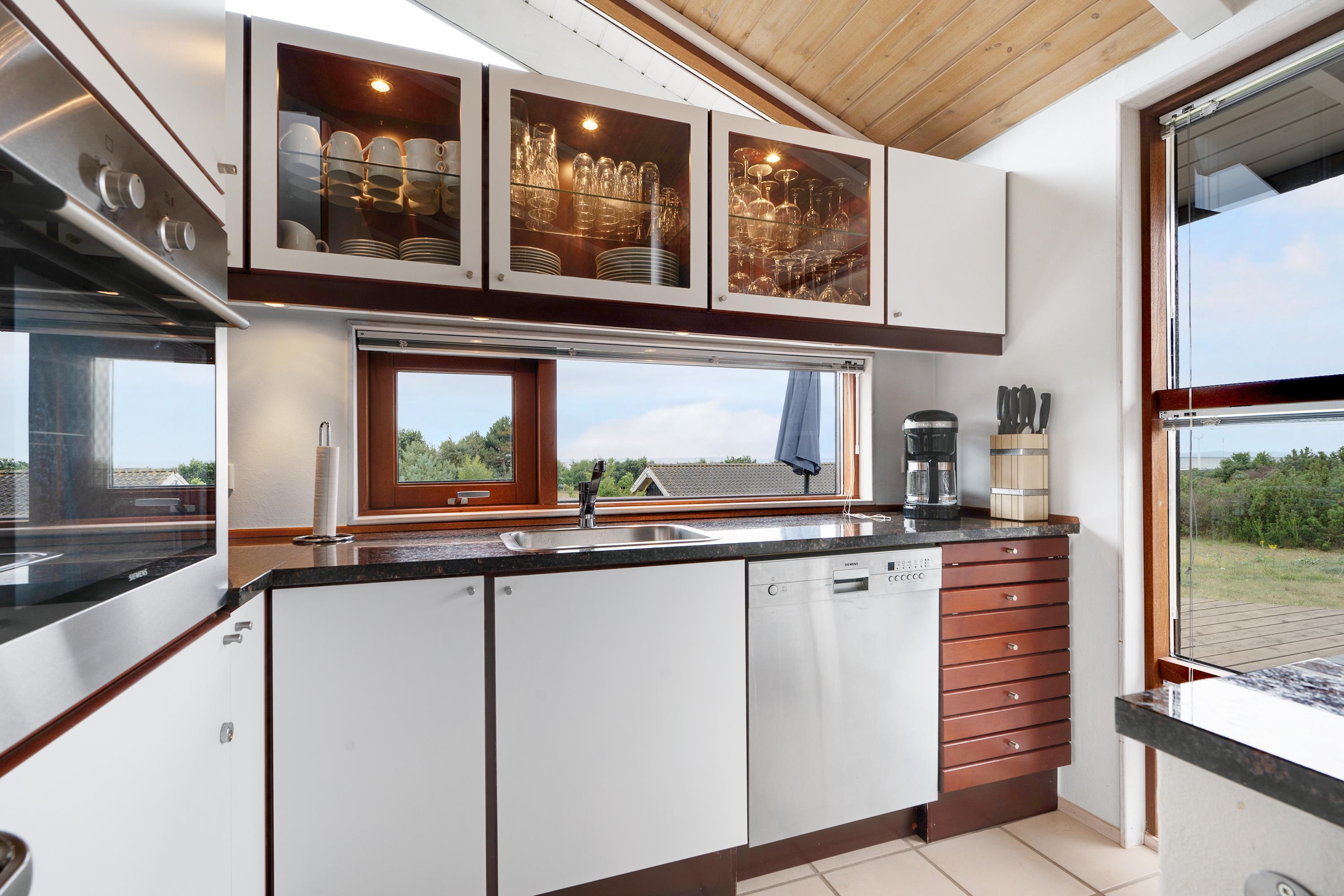 Just a 5-minute drive from Ebeltoft town, you'll find this super beautiful and exceptionally well-maintained holiday home. The house features a delightful, bright, and well-furnished living room with, among other things, a wood-burning stove and heat pump, with access to both a covered and an open terrace from where you have the most beautiful view of the water. Beautiful and well-equipped kitchen with all appliances, underfloor heating, and a separate dining area. Two lovely bathrooms with underfloor heating, one of which has a spa bath, and in the other, you'll find a washing machine and dryer. The sleeping places in the house are in four lovely bedrooms with double beds. A high chair and crib are available for the youngest holiday guests.