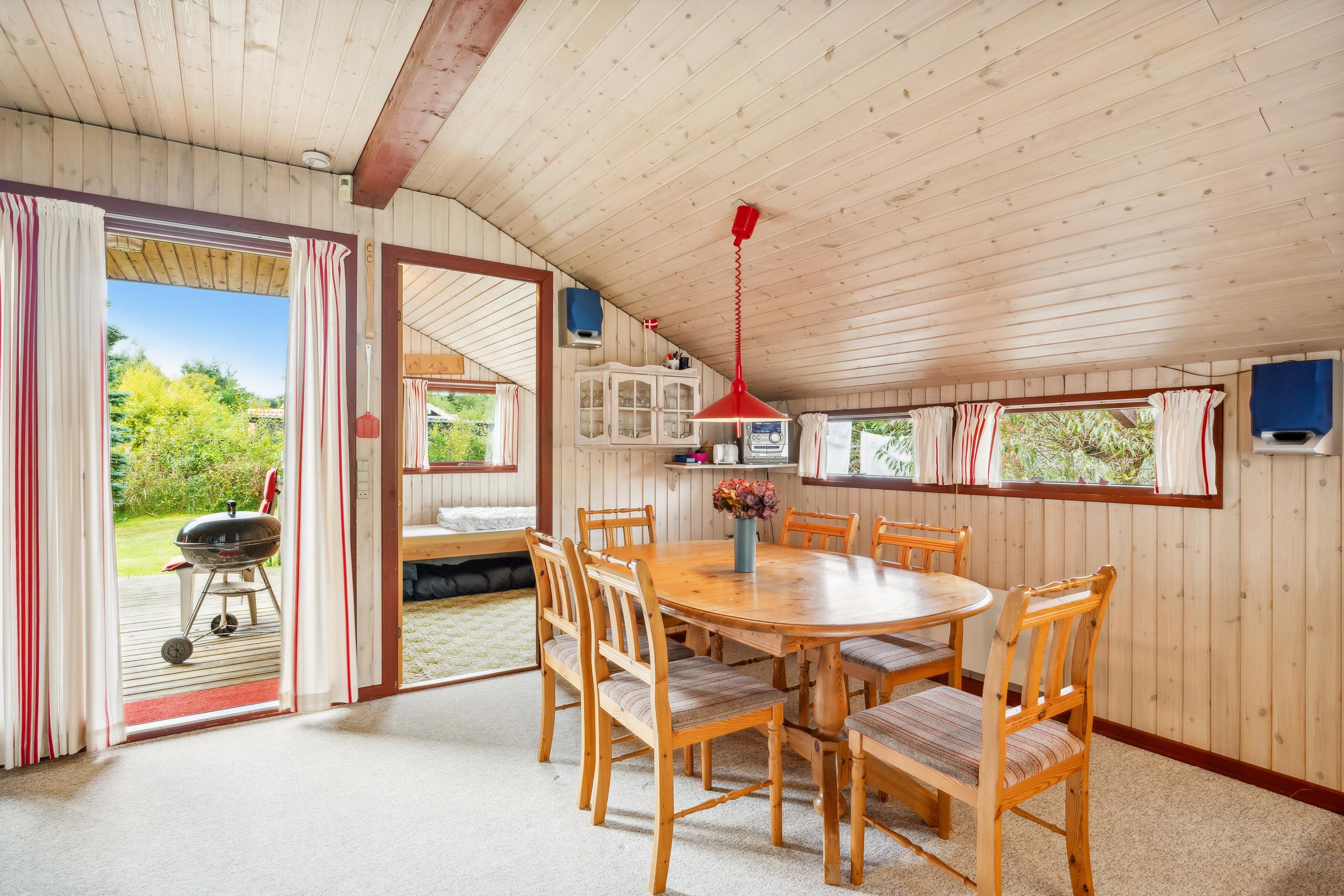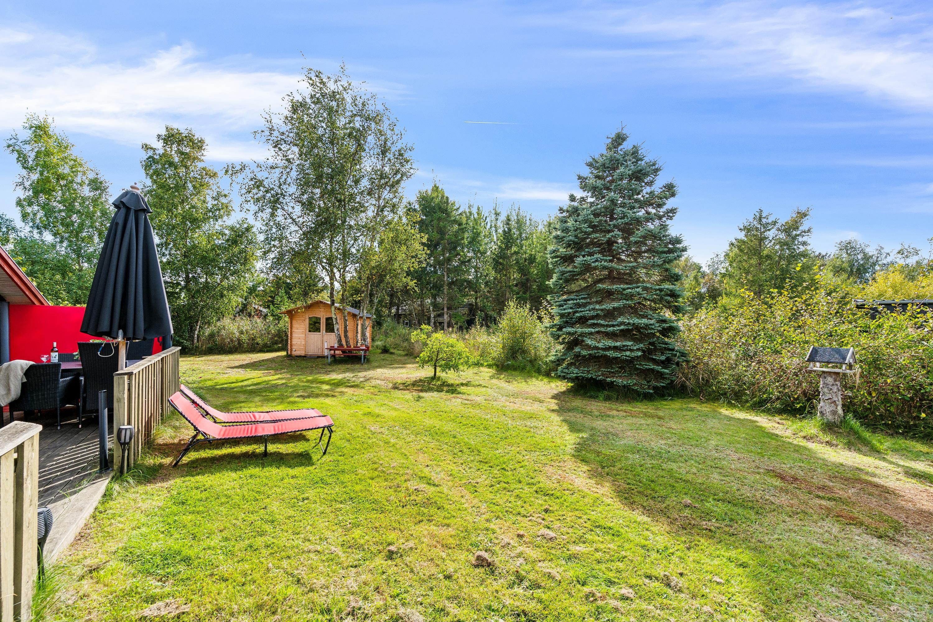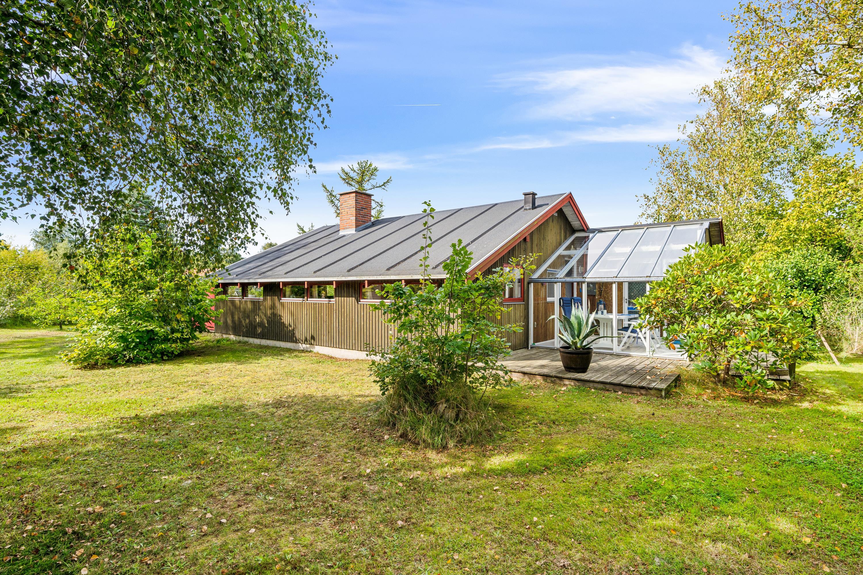 Not far from Ebeltoft, you will find this authentic summer house, located on a beautiful plot with a large courtyard. By the entrance, there is a covered conservatory with tiled flooring and a nice dining area. A cozy living room with a wood stove, leading out to a large covered terrace with good garden furniture and a grill. The older, functional kitchen is adjacent to the dining area. The house’s sleeping accommodations are divided across two bedrooms: one with a double bed and one with two single beds. In the garden, you will find a newly built annex with two sleeping spaces in a bunk bed. The bathroom has a shower cubicle. There is no internet in the house, but it can be rented at our office. The house is situated on a lovely plot with a large lawn, perfect for playing and ball games, and is about a 5-minute walk from the water.