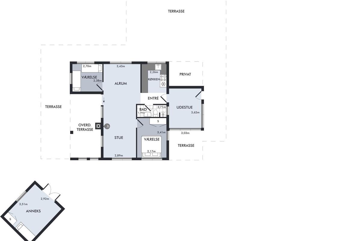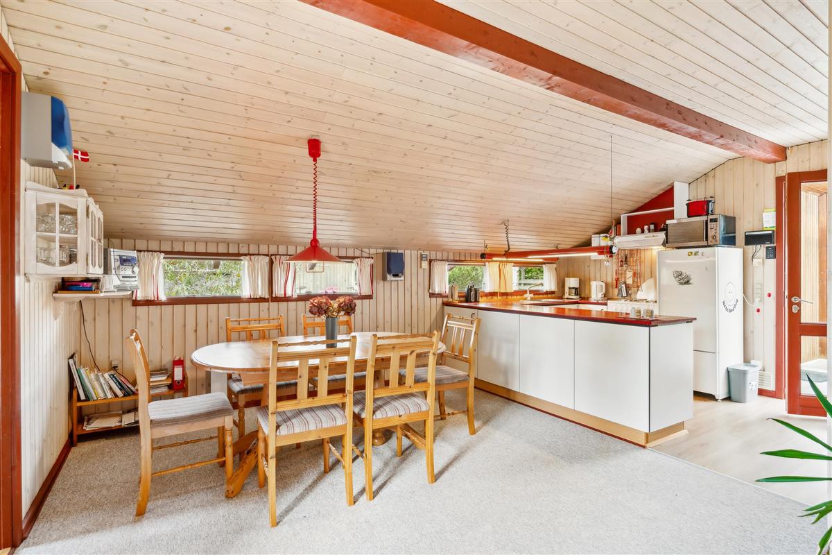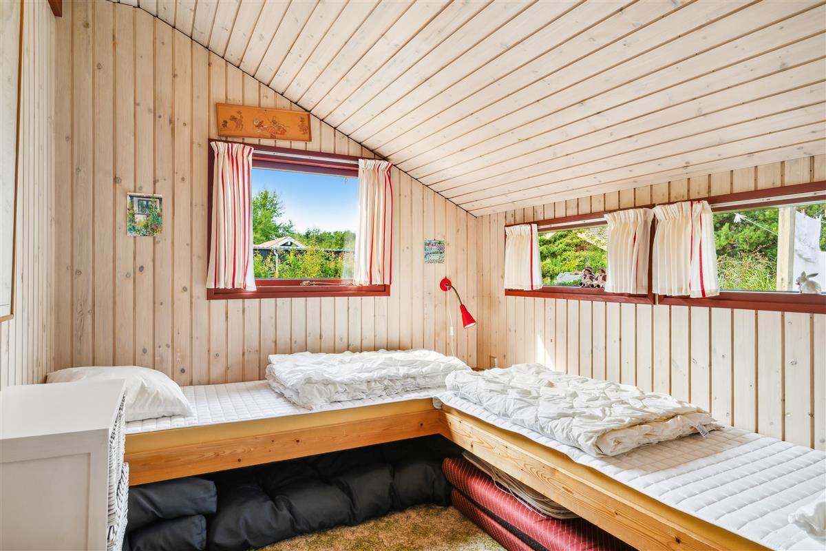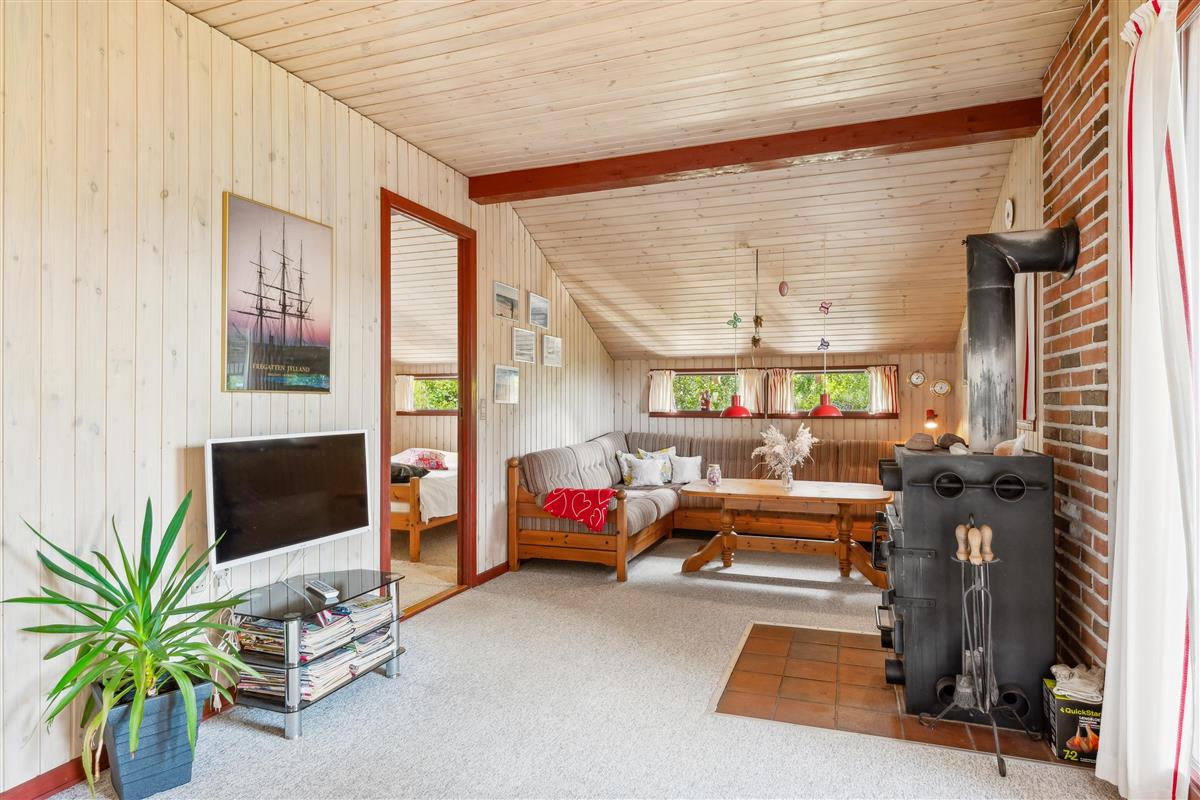 Not far from Ebeltoft, you will find this authentic summer house, located on a beautiful plot with a large courtyard. By the entrance, there is a covered conservatory with tiled flooring and a nice dining area. A cozy living room with a wood stove, leading out to a large covered terrace with good garden furniture and a grill. The older, functional kitchen is adjacent to the dining area. The house’s sleeping accommodations are divided across two bedrooms: one with a double bed and one with two single beds. In the garden, you will find a newly built annex with two sleeping spaces in a bunk bed. The bathroom has a shower cubicle. There is no internet in the house, but it can be rented at our office. The house is situated on a lovely plot with a large lawn, perfect for playing and ball games, and is about a 5-minute walk from the water.