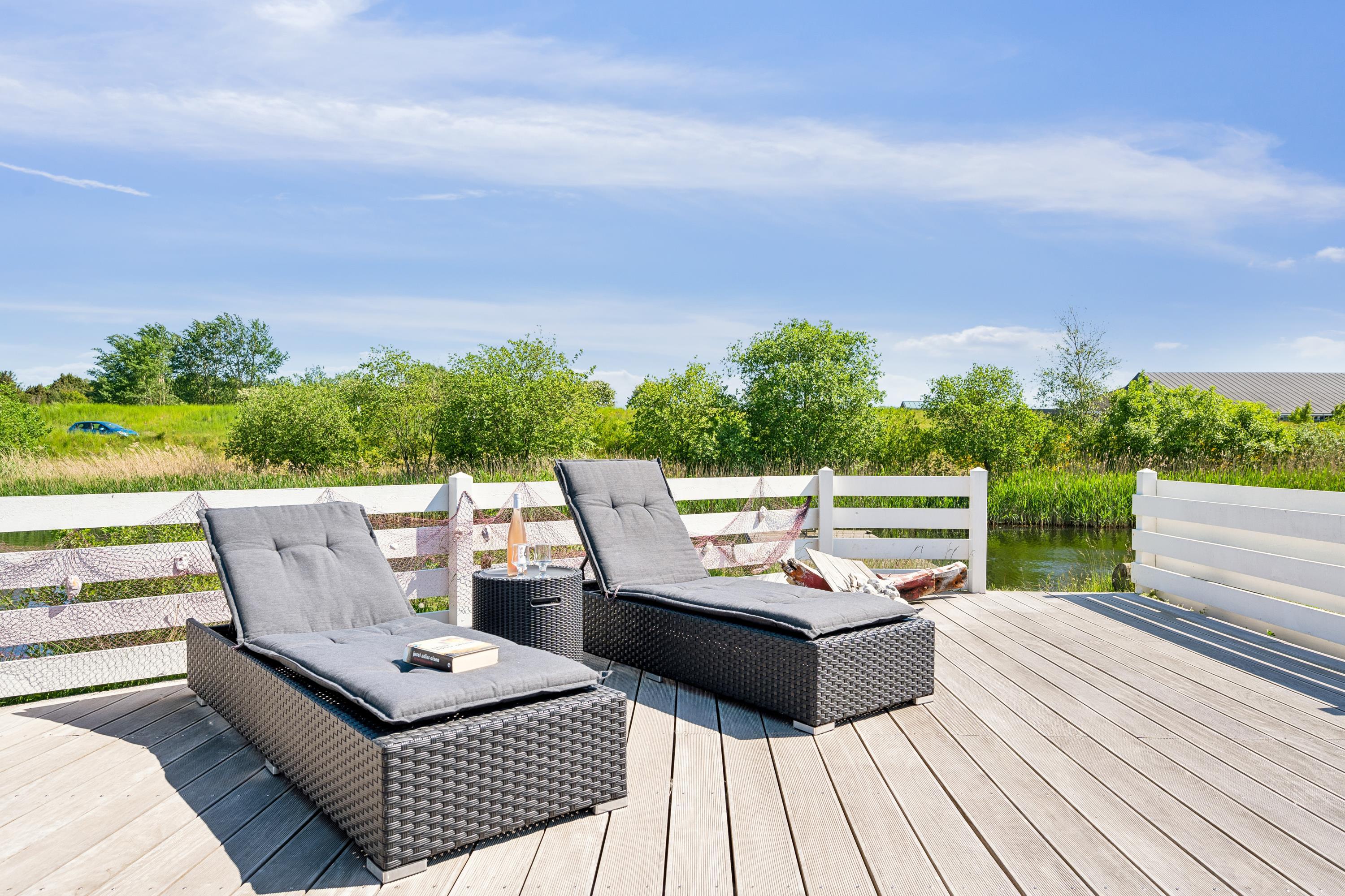In Øer Maritime Holiday Village, you will find this incredibly beautiful and well-appointed house. The ground floor contains a lovely kitchen with a dining area, leading to a large terrace with garden furniture and access to a private bathing bridge. The cozy and tastefully furnished living area features comfortable furniture and a heat pump. A beautiful bathroom with a shower and underfloor heating is also located on the ground floor. On the first floor, you will find the house's 6 sleeping places distributed in a room with a double bed, a room with two single beds, and two good mattresses on the landing. The house has internet access as well as various Danish, German, Norwegian, and Swedish TV channels. The house boasts a truly wonderful location with parking right next to it. On the communal area, there is a charging station for electric cars.