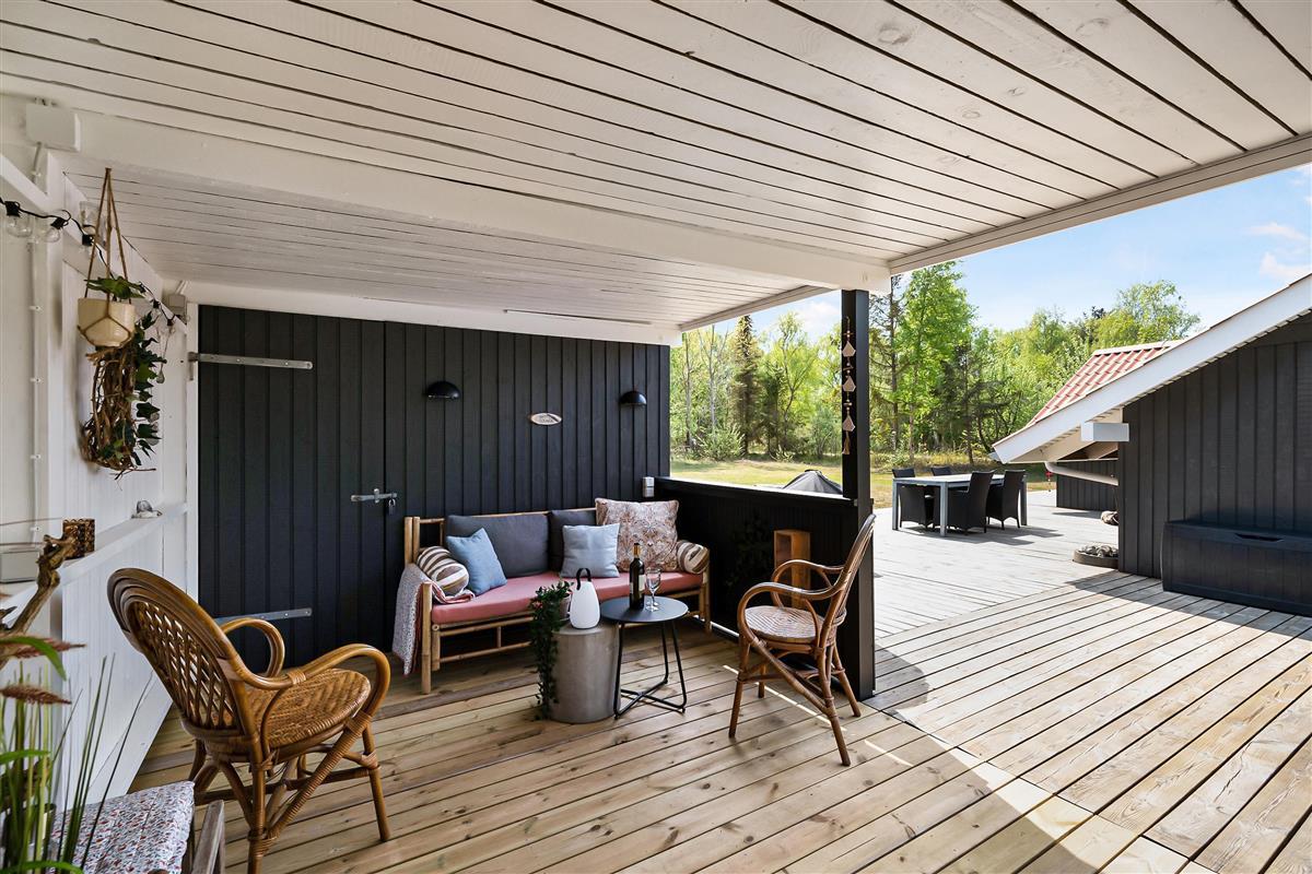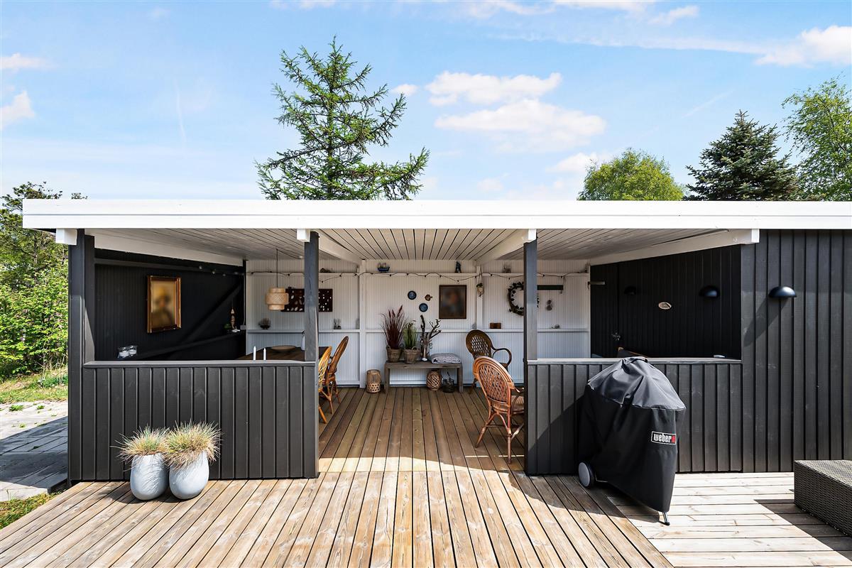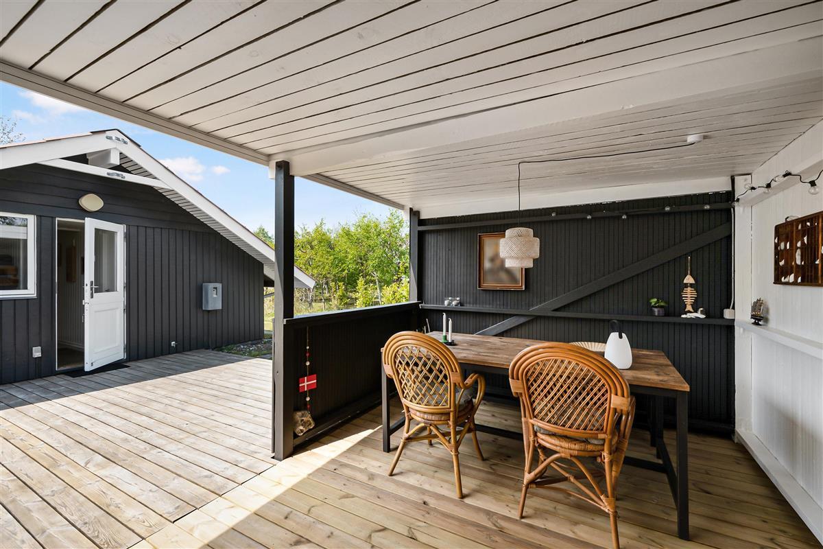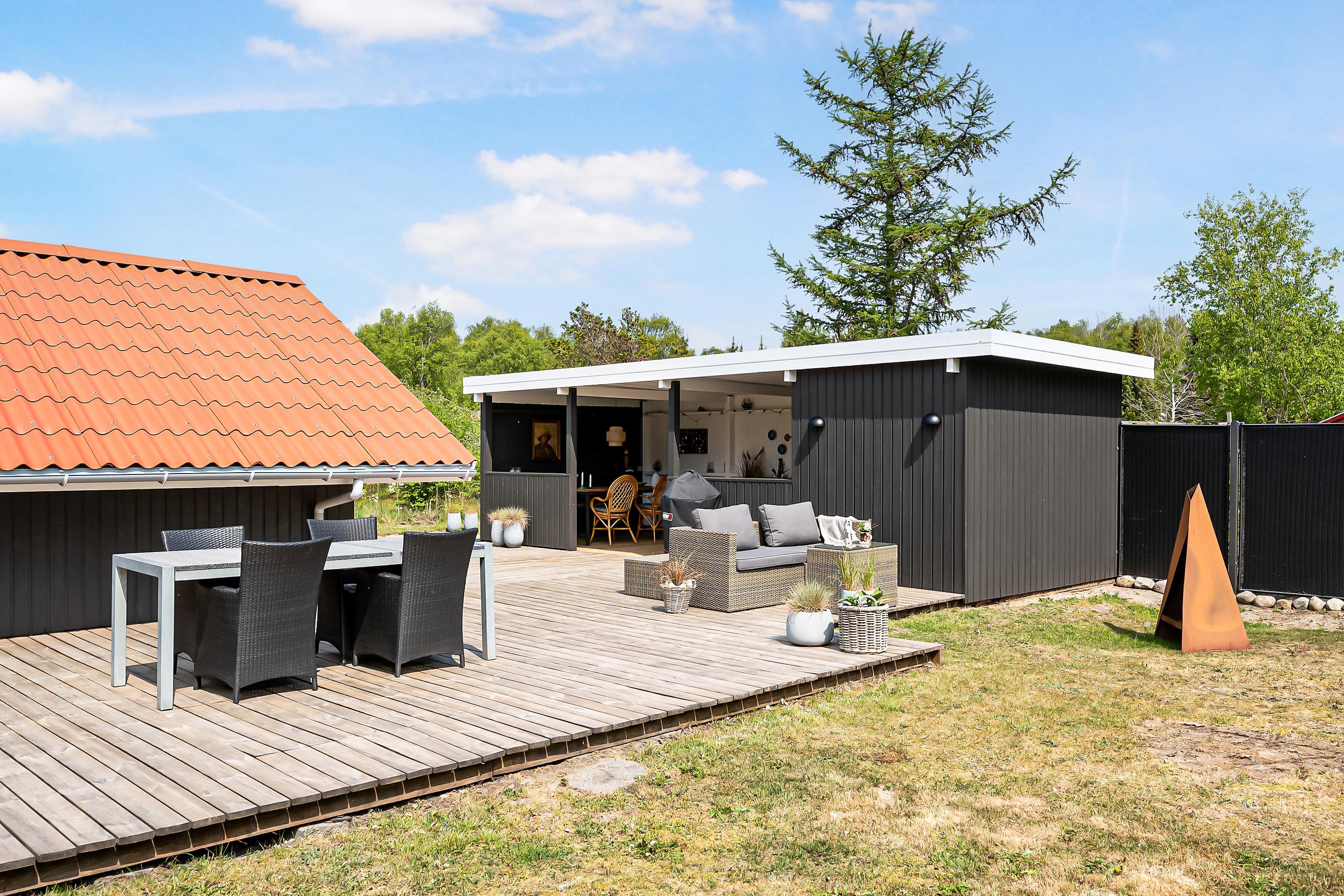 Renovated holiday house located on a secluded natural lot in the beautiful cottage area near Øer Strand, just 250 meters from sand dunes and a child-friendly beach. A traditional and truly cozy house. The house is surrounded by a large, lovely, partially covered wooden terrace with garden furniture and a grill, where you can enjoy the sun from morning to evening.
