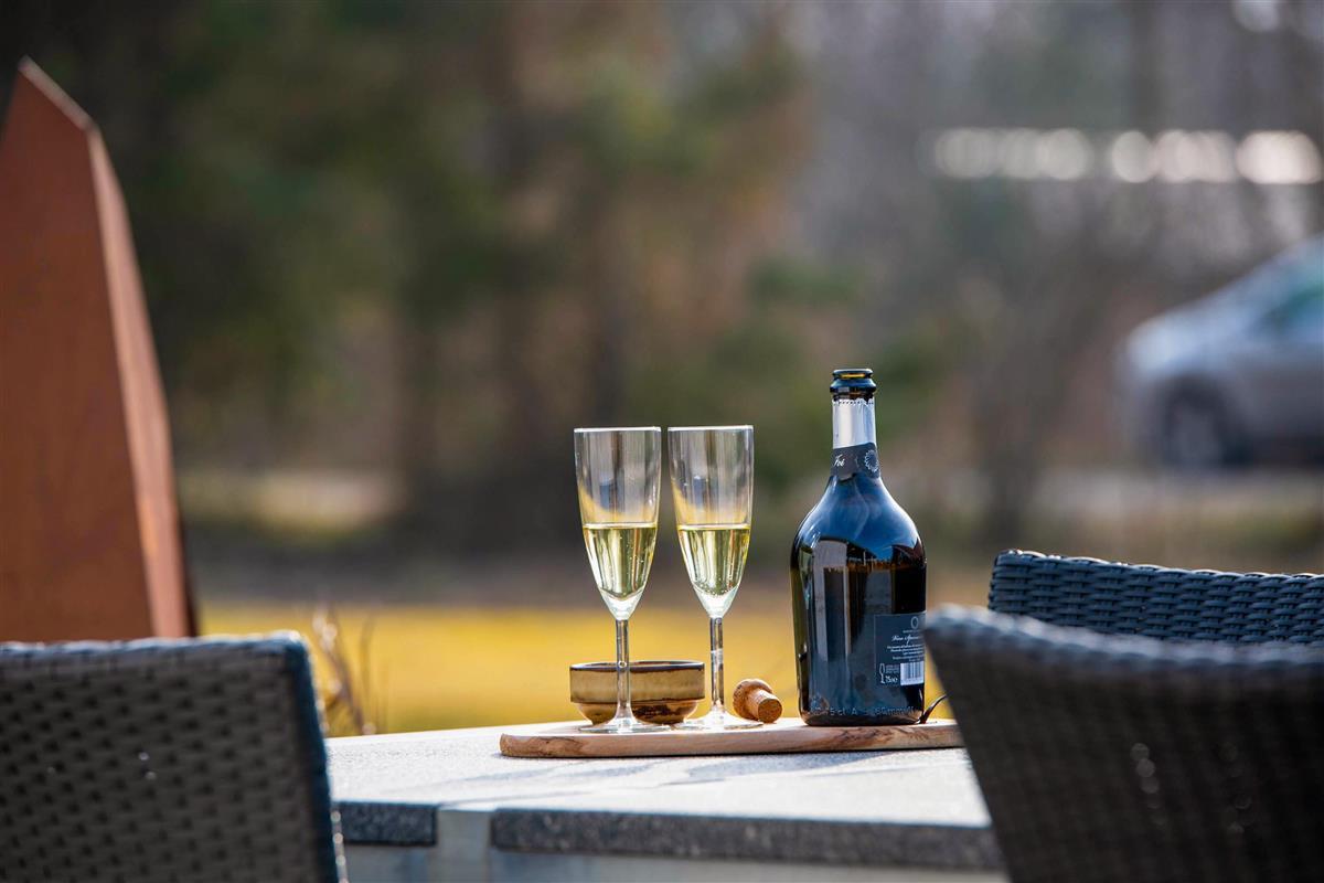 The cozy newly built lounge area invites you to have your meals or simply enjoy a glass.