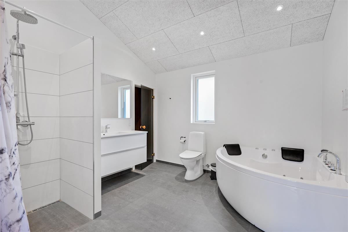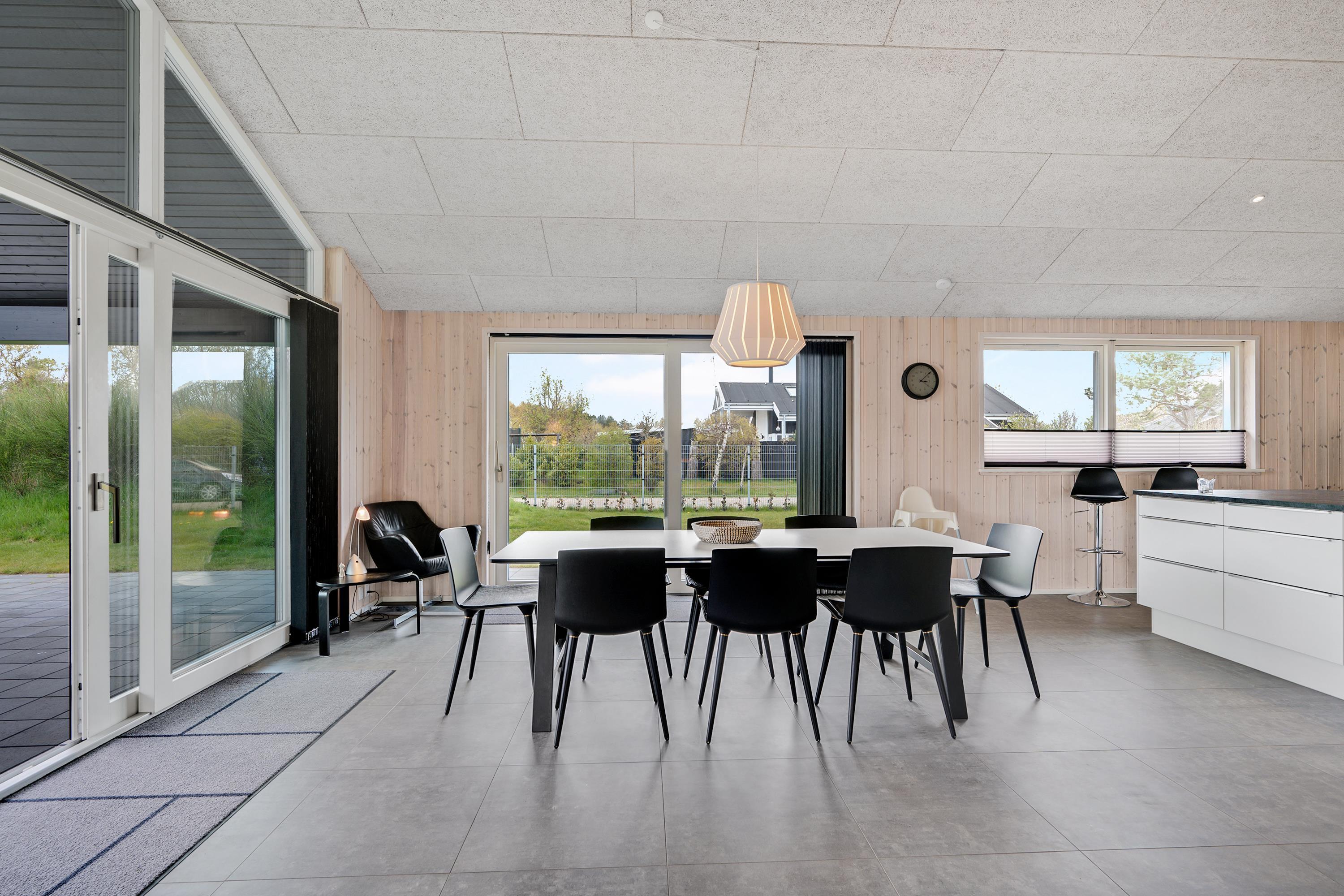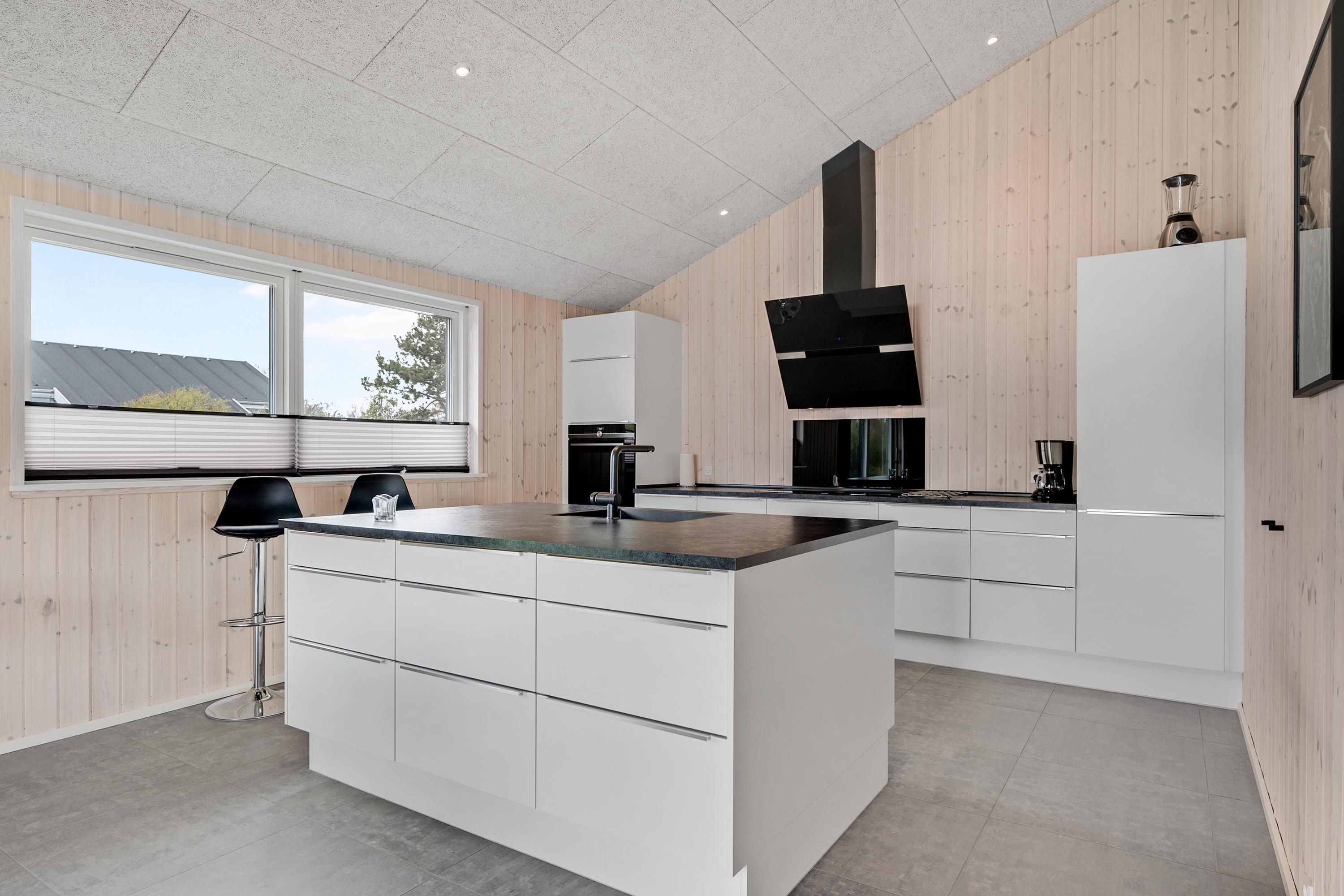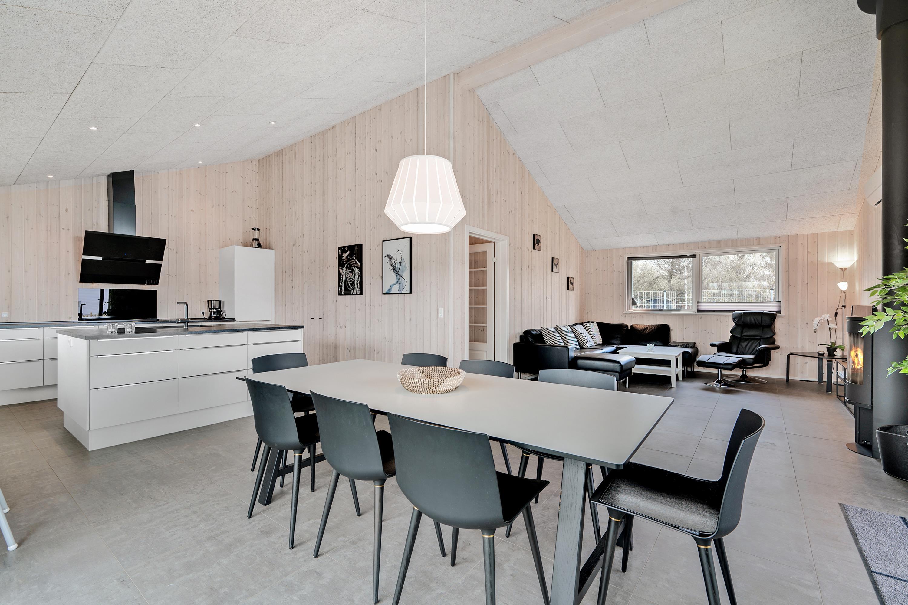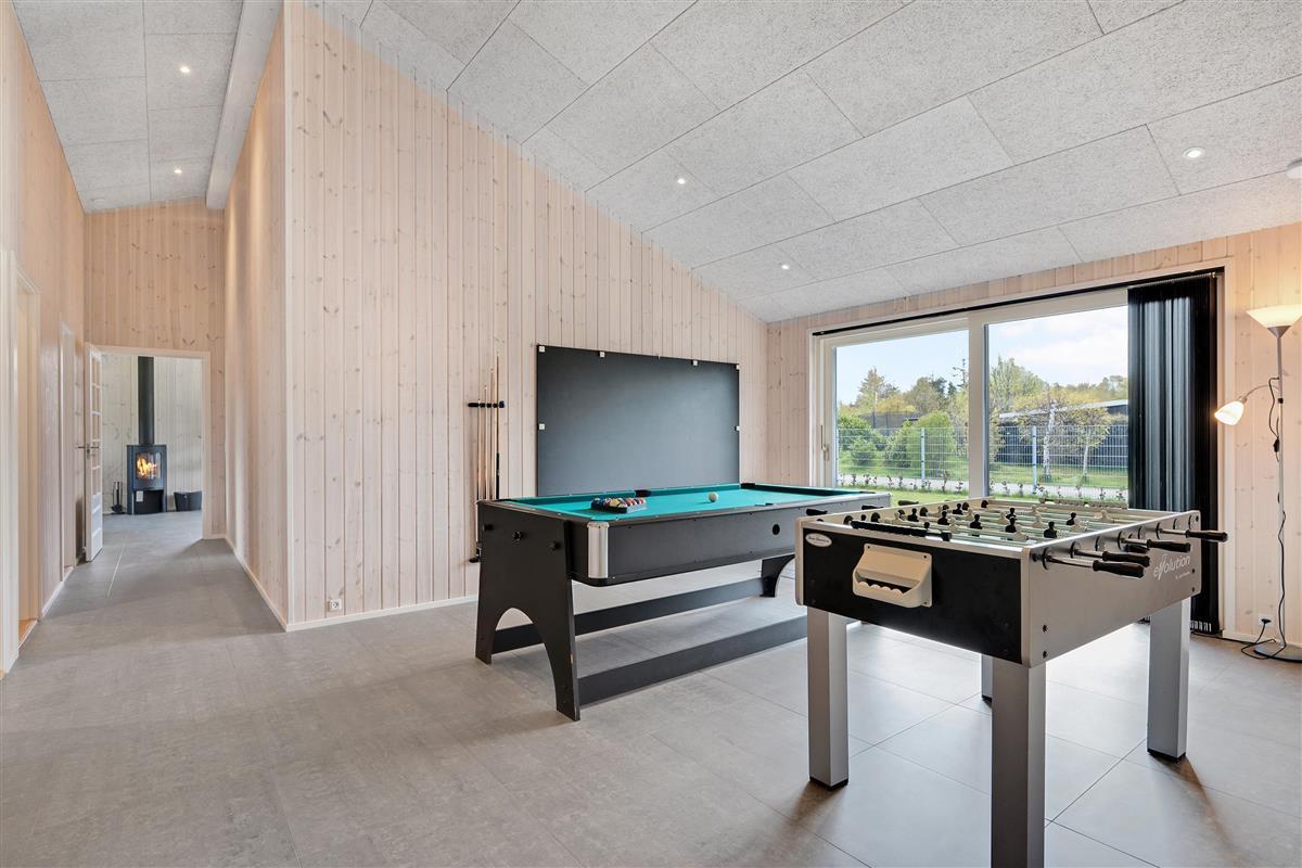 The entire house is open to the ridge with a high ceiling, contributing to the feeling of plenty of space and light. The large living room is in open connection with the kitchen and has panoramic windows and access to the terrace. There is a dining area for 8 people, a wood stove, a comfortable seating area, and a TV with Danish (including TV2) and German channels. A truly luxurious and well-designed kitchen with induction hobs, built-in oven, fridge/freezer, dishwasher, and microwave. As part of the hallway, there is a large activity/multi-room with a pool table and table football. The house's 8 sleeping places are distributed among 4 lovely, bright bedrooms – 2 with double beds and 2 with 2 single beds. Large, really nice bathroom with a shower, jacuzzi, and sauna, as well as a slightly smaller bathroom with a shower. There is underfloor heating in both wet rooms. In the large entrance hall, there is also a washing machine and a dryer. Internet access i available.