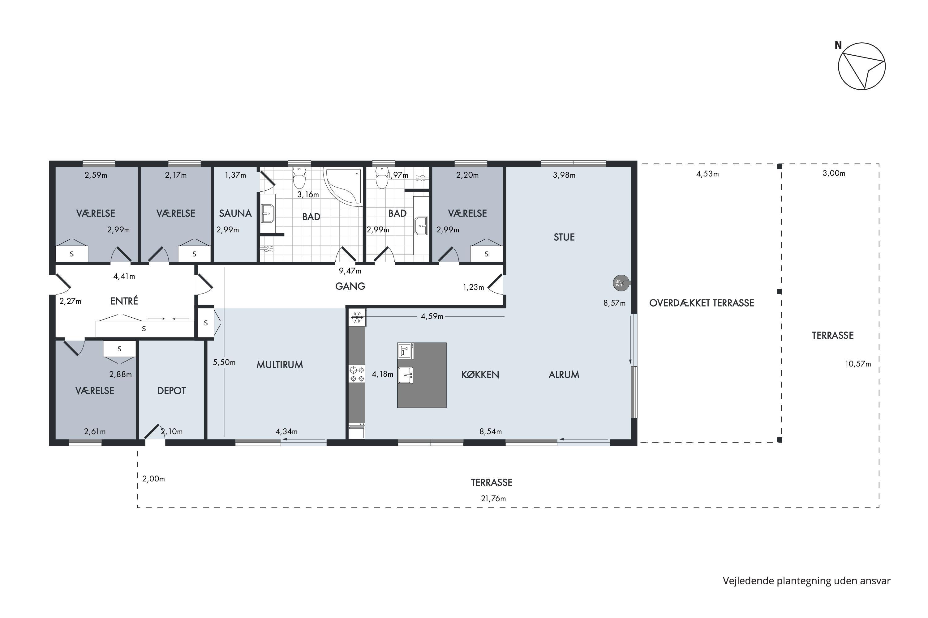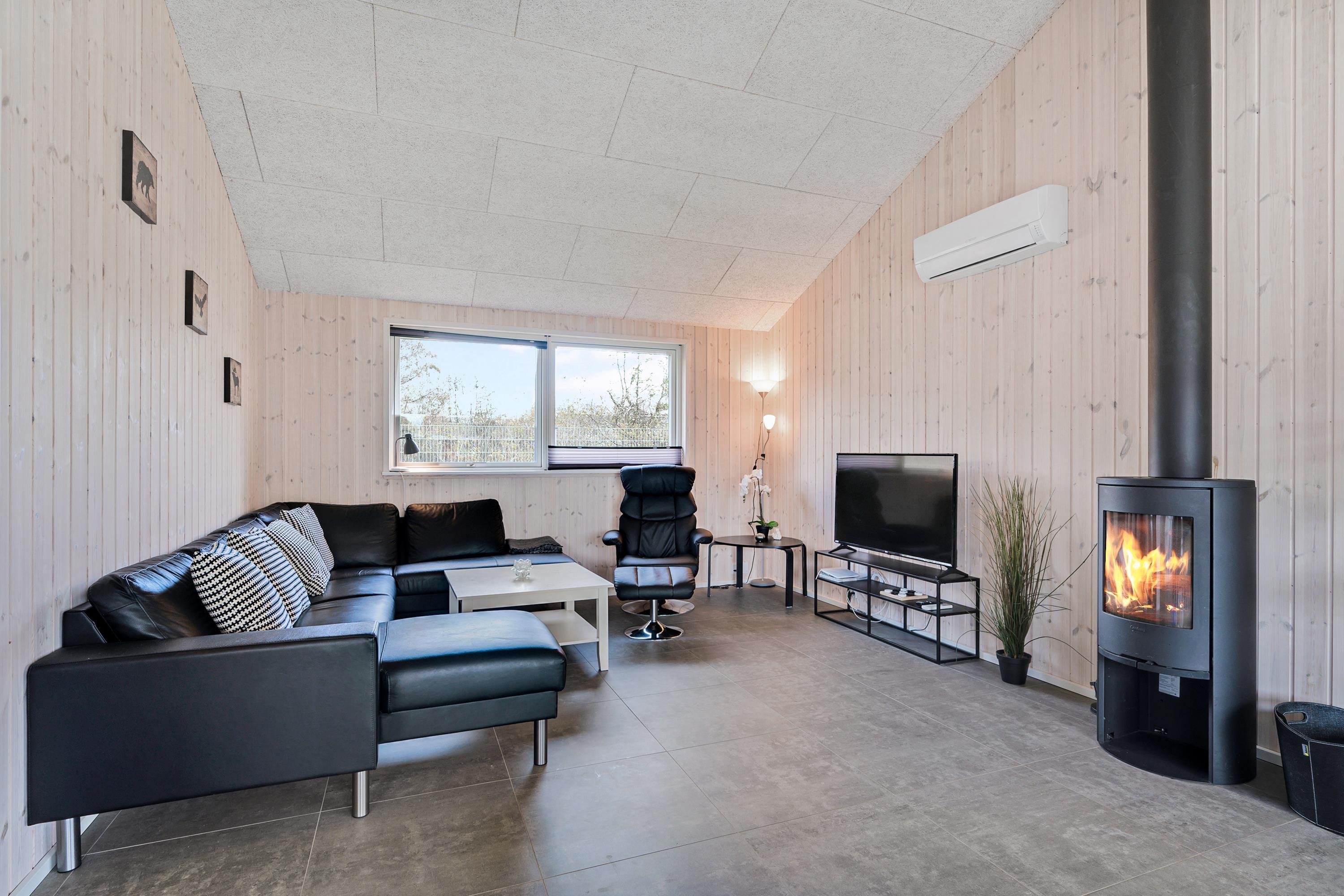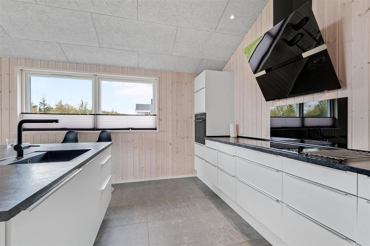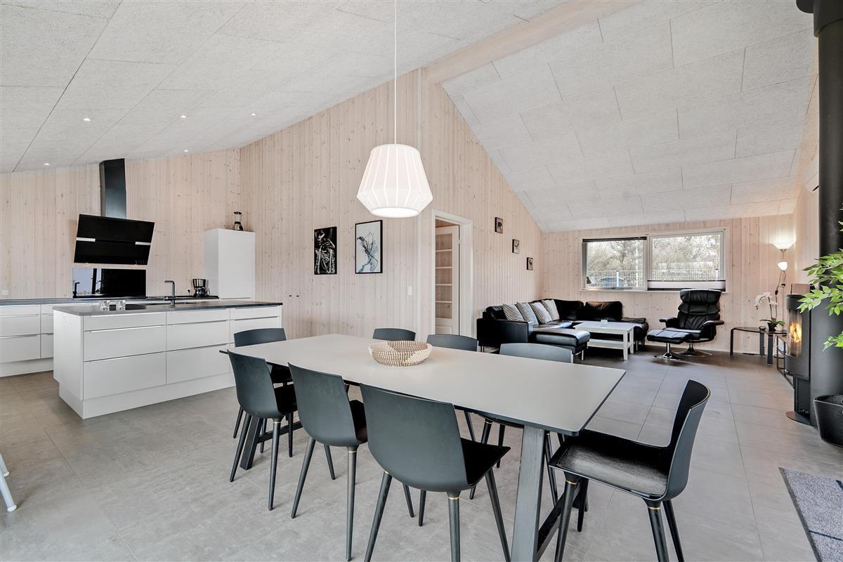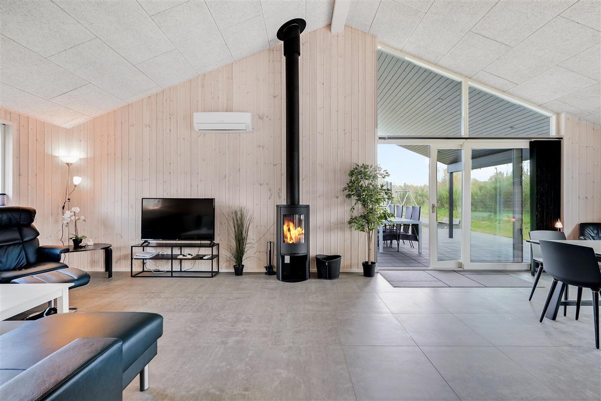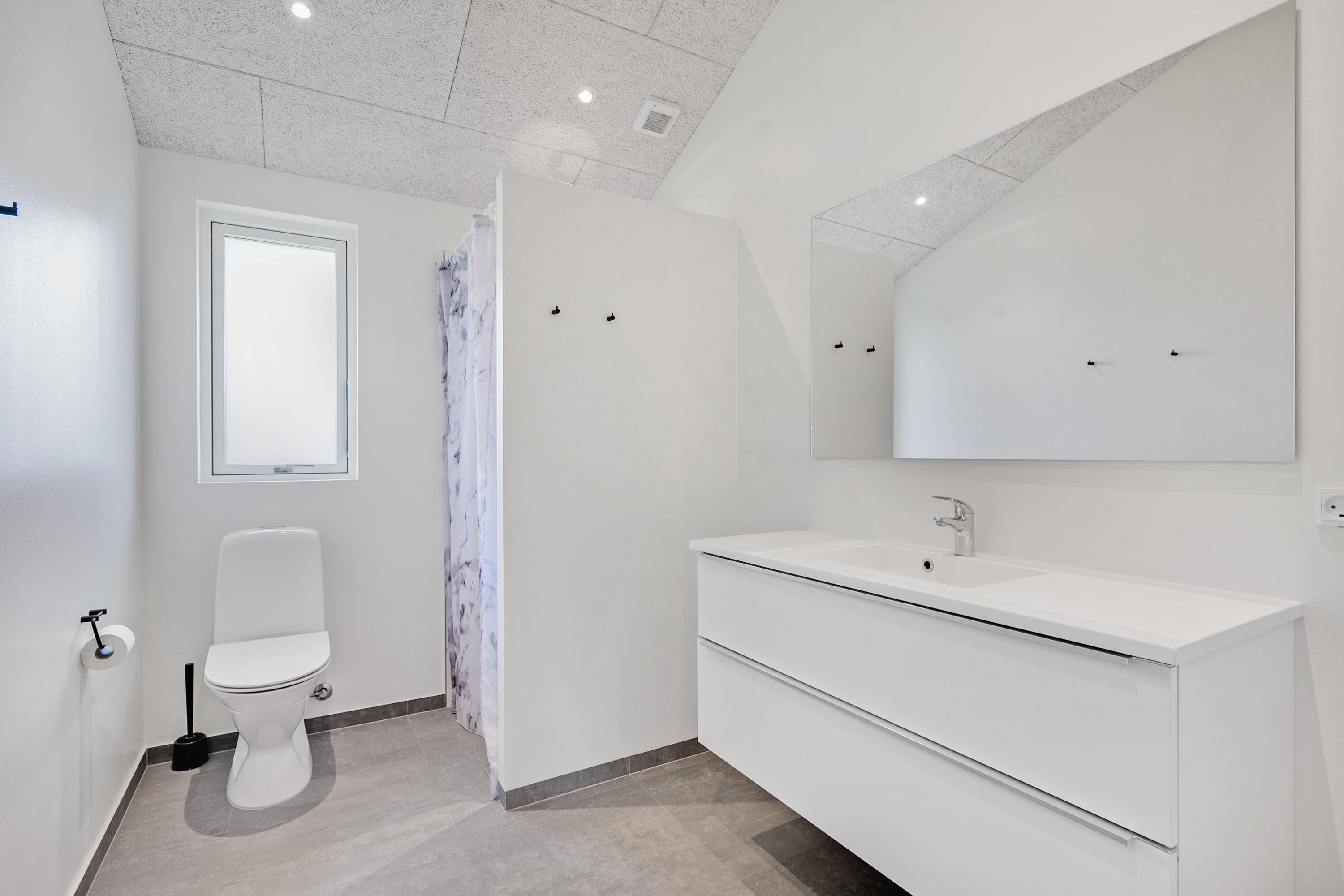 The entire house is open to the ridge with a high ceiling, contributing to the feeling of plenty of space and light. The large living room is in open connection with the kitchen and has panoramic windows and access to the terrace. There is a dining area for 8 people, a wood stove, a comfortable seating area, and a TV with Danish (including TV2) and German channels. A truly luxurious and well-designed kitchen with induction hobs, built-in oven, fridge/freezer, dishwasher, and microwave. As part of the hallway, there is a large activity/multi-room with a pool table and table football. The house's 8 sleeping places are distributed among 4 lovely, bright bedrooms – 2 with double beds and 2 with 2 single beds. Large, really nice bathroom with a shower, jacuzzi, and sauna, as well as a slightly smaller bathroom with a shower. There is underfloor heating in both wet rooms. In the large entrance hall, there is also a washing machine and a dryer. Internet access i available.