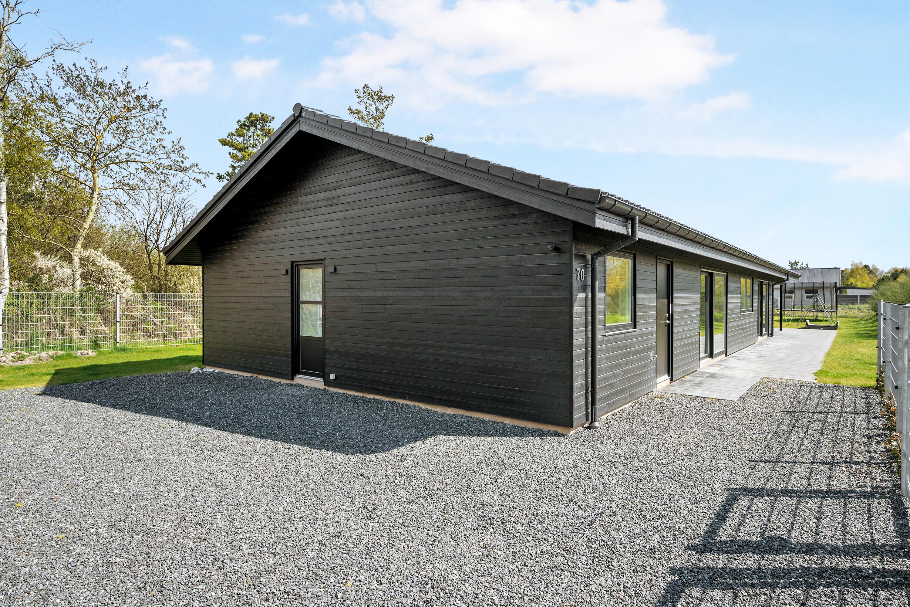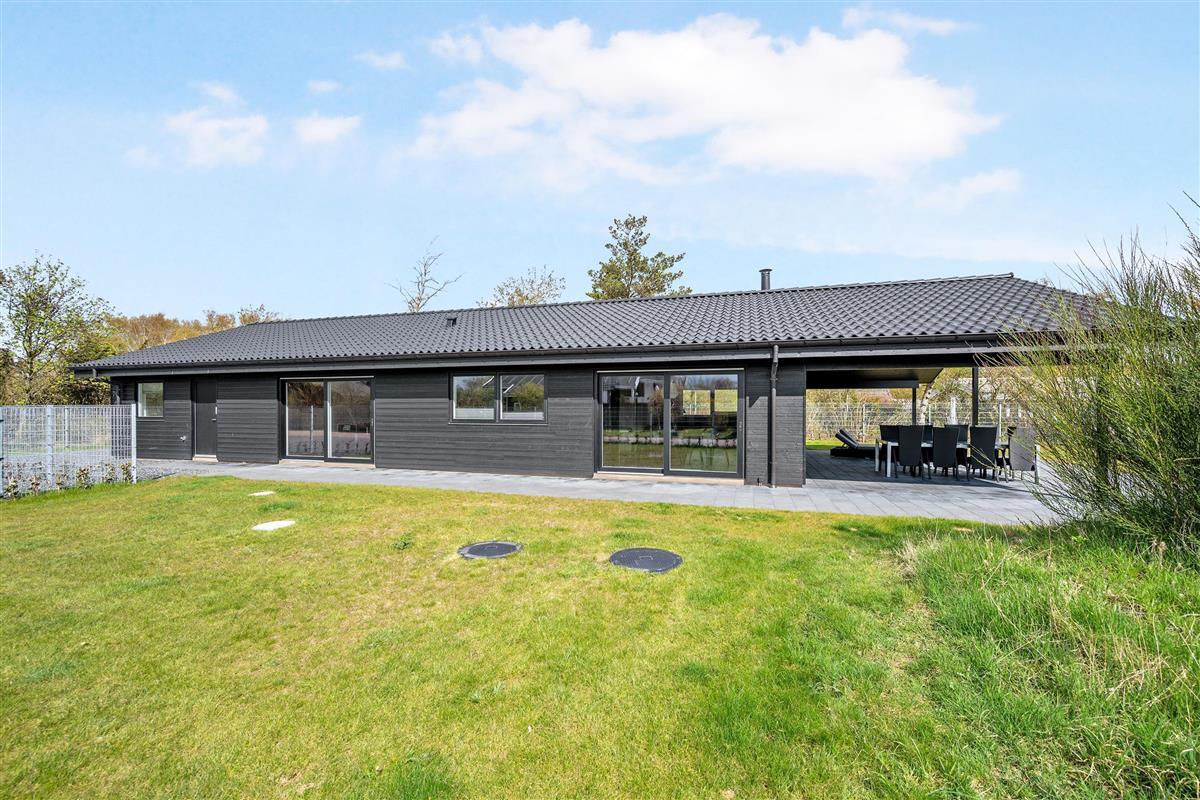 This new and extremely spacious holiday house is located on a natural lot near Øer south of Ebeltoft. The house is surrounded by a large, partially covered tiled terrace with garden furniture, sun loungers, parasol, and a grill. For the children, there are swings, a trampoline, and a sandbox. The entire property is fenced, allowing a dog to roam freely. In a locked shed, there is also an outdoor table tennis table that can be set up in the garden or on the terrace. A beautiful and well-equipped house with all amenities and comfort regardless of age.