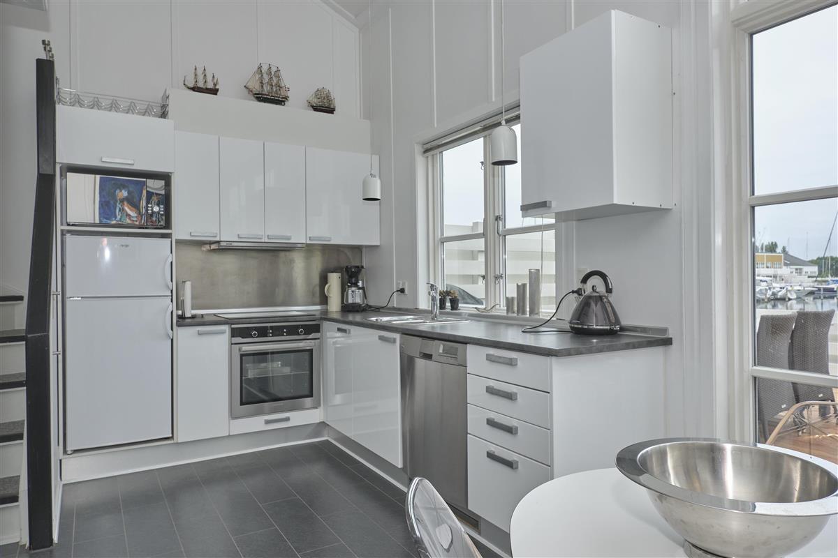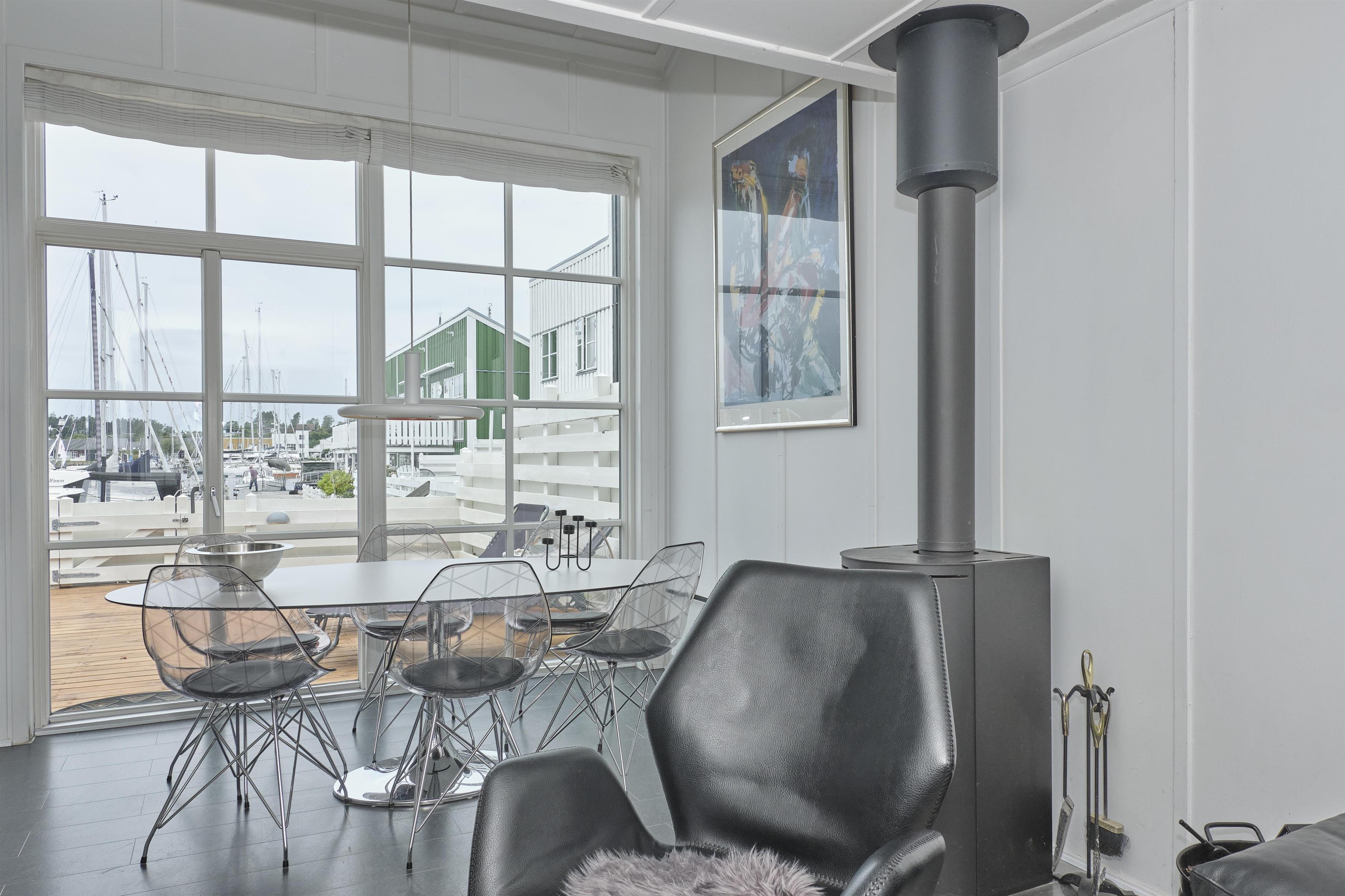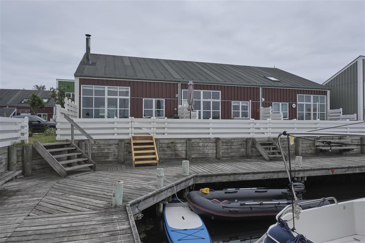 Beautifully decorated holiday apartment on 2 levels located in the picturesque Øer Maritime Holiday Village with a delightful view of the boat moorings from the terrace, kitchen, and living room. Large, lovely wooden terrace with garden furniture, sun loungers, parasol, and grill, as well as a cozy, tiled courtyard with good shelter.