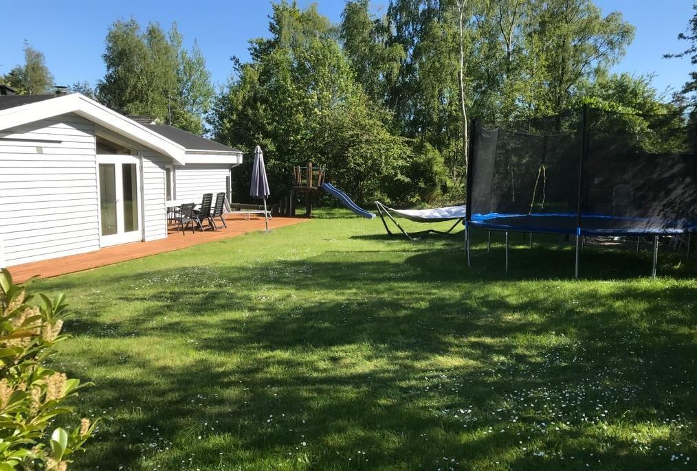 Das in einer Sackgasse gelegene, große und ungestörte Eckgrundstück verwöhnt mit viel Ruhe und Privatsphäre. Die offene Terrasse lädt zu stimmungsvollen Runden an langen Sommerabenden ein, die deine Familie sicherlich gern mit einem köstlichen Abendessen vom Grill krönt. Tagsüber genießt du ausgedehnte Sonnenbäder auf der Rasenfläche. Vielleicht hast du zwischendurch auch Lust, mit den Kindern umherzutollen und ein wenig Fußball zu spielen? Die Lage in Wassernähe macht es euch leicht, an den kinderfreundlichen Strand zu spazieren, um dort in den wogenden Wellen zu baden, zu spielen oder die Aussicht über die Küstenlandschaft und das Meer zu genießen. Aufgrund der ruhigen Lage und des minimalen Verkehrsaufkommens bildet dein Ferienhausgrundstück einen perfekten Rahmen für erholsame, unvergessliche Stunden in der Natur.