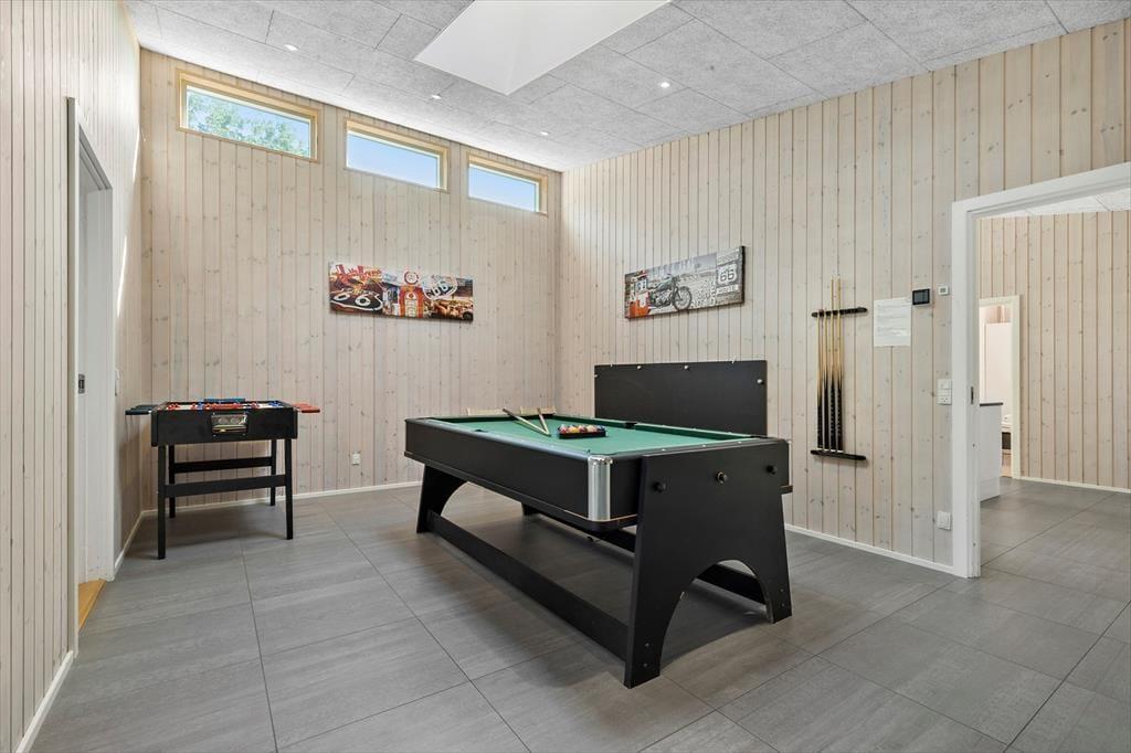 Unmittelbar nachdem du dieses Haus zum ersten Mal betrittst, wird dich das Maximum an Gemütlichkeit, Komfort und Aktivitätsangeboten begeistern. Du erfreust dich mit deiner Familie nicht nur am behaglich knisternden Kaminofen und den gemütlichen Sitzgelegenheiten, die dem Haus Atmosphäre und Stimmung verleihen, sondern zugleich an einer Vielzahl verschiedenster Aktivitätsmöglichkeiten für Groß und Klein. Mit deiner gesamten Familie kannst du nach Herzenslust Billard und Tischtennis spielen und die vielen anderen zur Verfügung stehenden Spiele nutzen. Nach ausgelassenen aktiven Stunden ziehst du dich garantiert gern mit einem frischen Becher Kaffee in den geräumigen Wohnraum zurück. Dein Ferienhaus präsentiert sich modern und zeitlos, glänzt aber dennoch mit ausgesprochen viel Seele und Charme. Aktivität, Erholung und wertvolle gemeinsame Zeit gehen bei diesem Mietobjekt Hand in Hand.