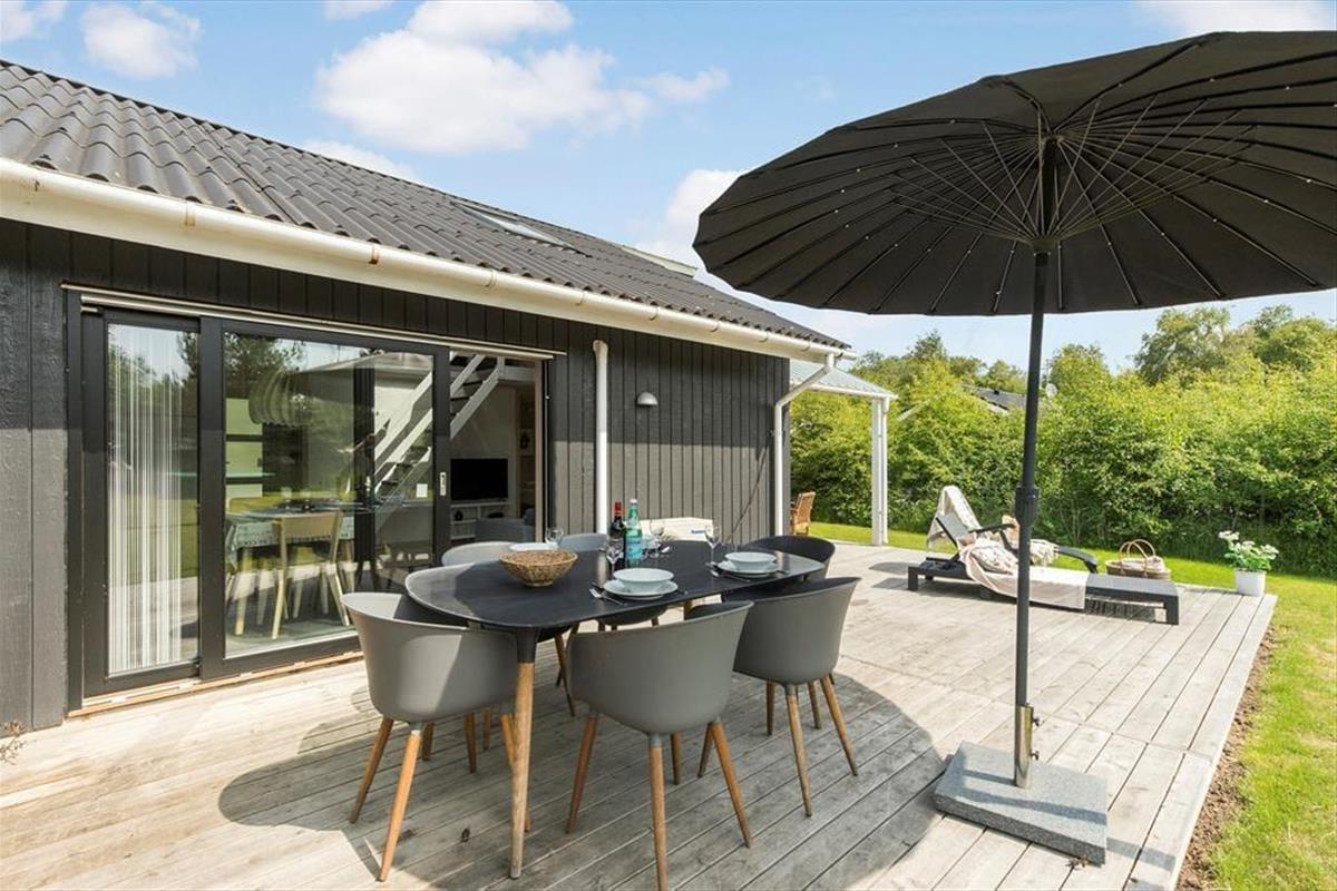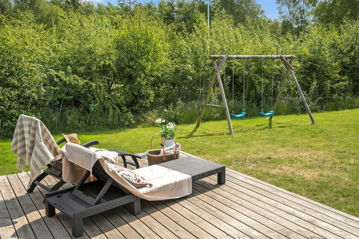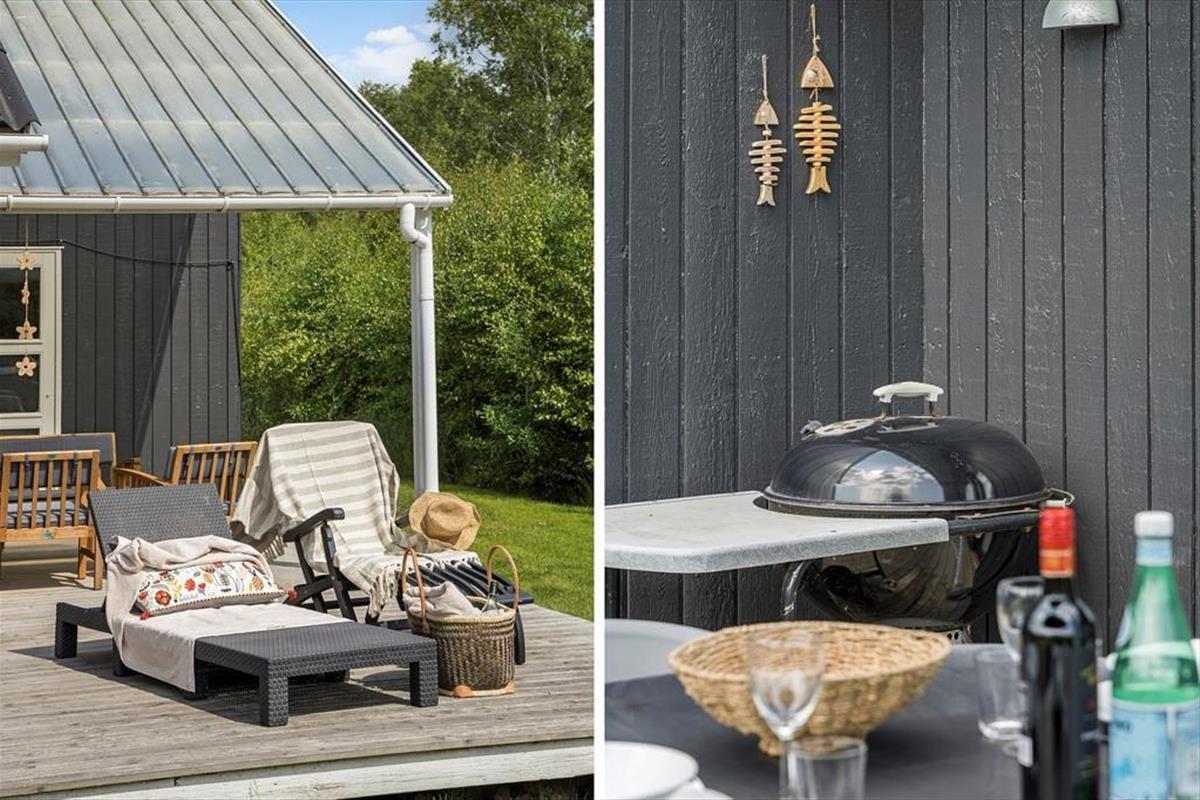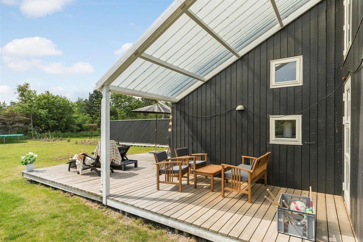 Unter freiem Himmel erwartet dich ein schöner Garten mit viel Platz zum Spielen und Erholen. Auf der teilweise überdachten Terrasse genießt du mit deiner Familie köstliche Mittagessen vom Grill und lange, stimmungsvolle Sommerabende. Während du es dir mit einem frischen Becher Kaffee in der Sonne gemütlich machst, werden deine Kinder ausgelassen schaukeln und auf dem Gartentrampolin hüpfen. Da dein Ferienhaus lediglich 400 Meter vom Strand trennen, kannst du mit deinen Lieben jederzeit zu erfrischenden Bädern und langen Strandspaziergängen an die Küste aufbrechen.