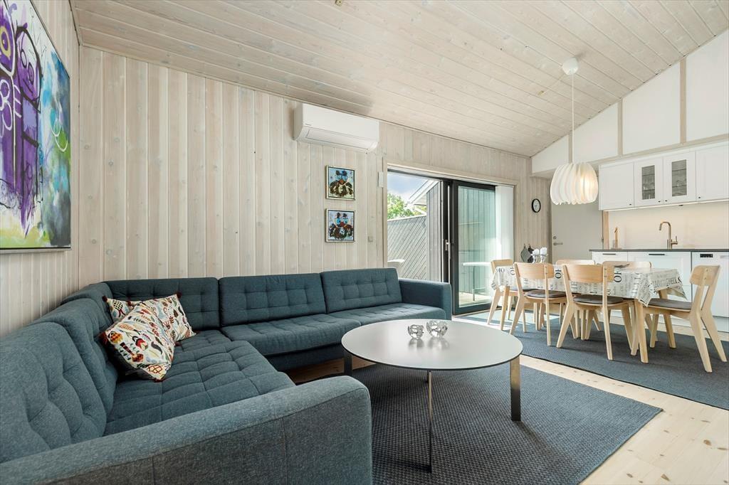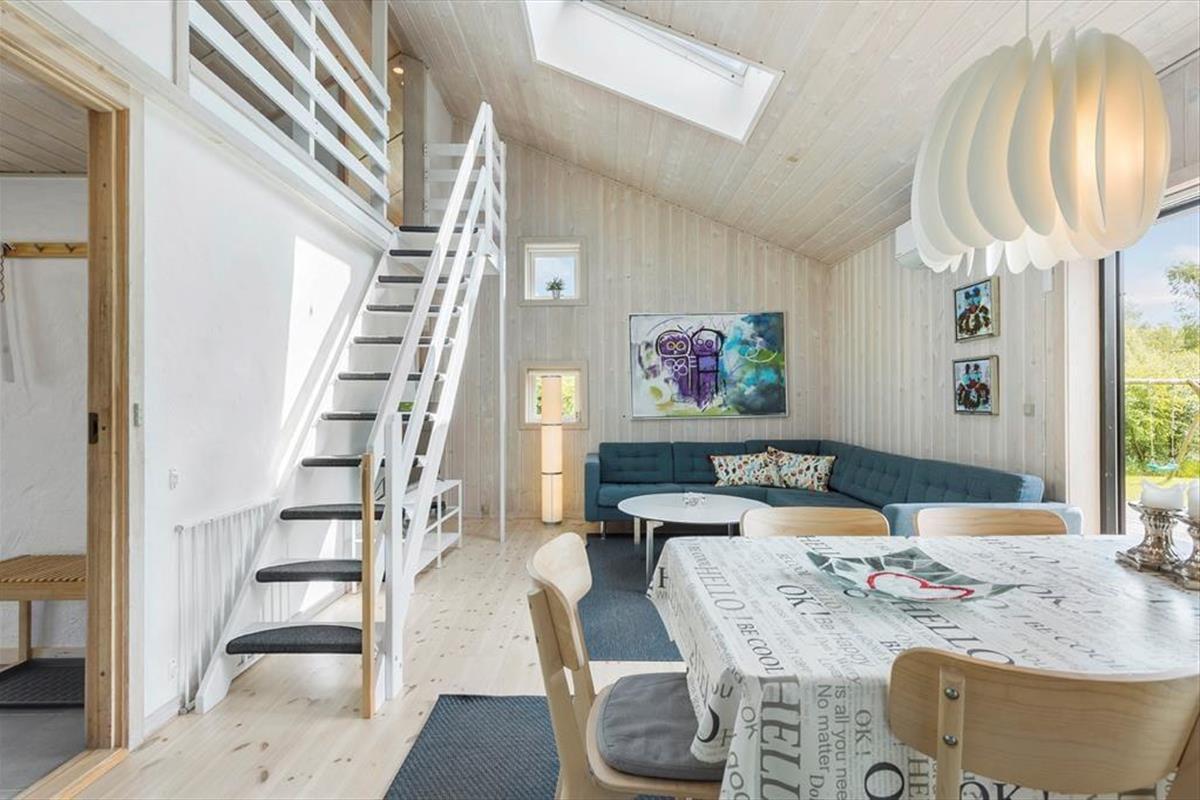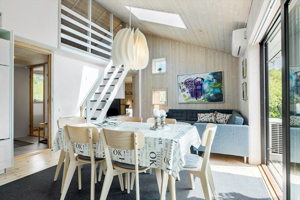 Dein Ferienhaus präsentiert sich angenehm hell und ansprechend eingerichtet. Es lädt dich vom ersten Moment an zum Entspannen und zu gemütlichen Stunden im Kreise deiner Lieben ein. Dein Haus beinhaltet zwei geräumige Schlafzimmer, ein modernes Badezimmer und einen gemütlichen Schlafboden, der sich bestens für Kinder und für eine zurückgezogene Stunde mit einem spannenden Buch eignet. Der offen kombinierte Küchen-, Wohn- und Essbereich ist das Herzstück deines Urlaubsdomizils. In diesem schönen Raum kannst du köstliche Mahlzeiten zubereiten und genießt dabei die Nähe und Gesellschaft deiner Familienmitglieder. Nach einem Tag voller schöner Erlebnisse gönnst du dir am besten erholsame Saunagänge, einen Spieleabend im Familienkreis oder gemütliche Momente auf dem schönen Sofa.