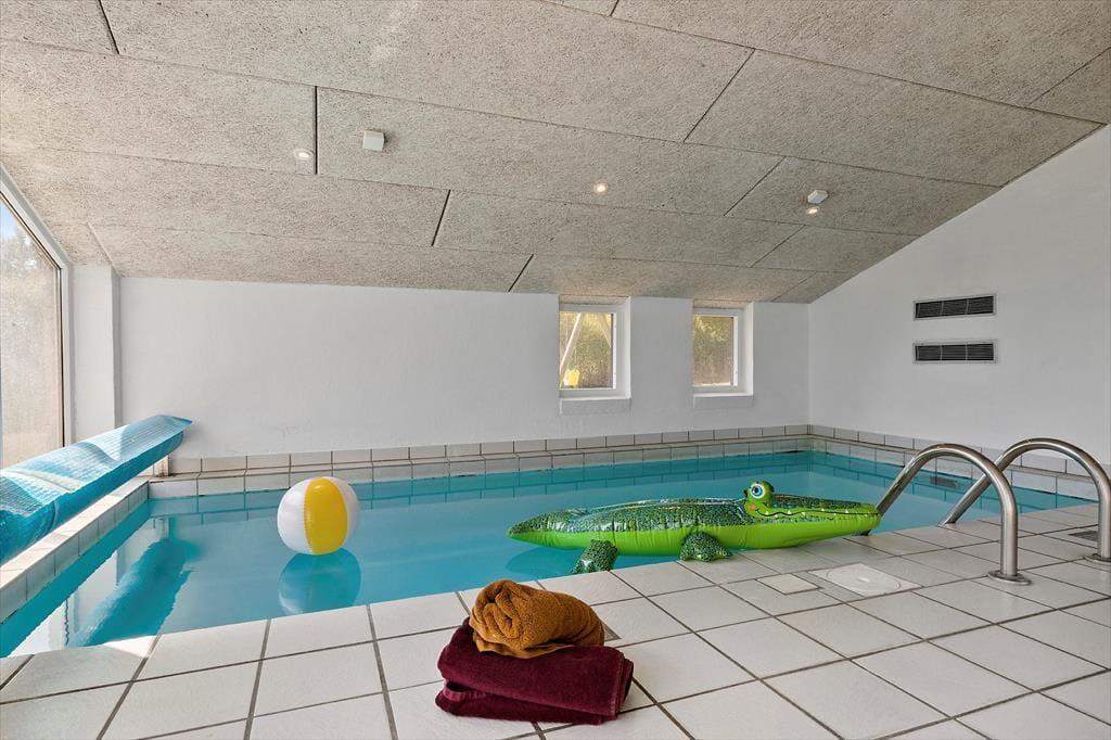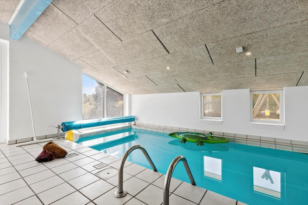 Freue dich bereits jetzt auf gelungene Urlaubstage in diesem hellen, modernen Ferienhaus, in dem Komfort und Gemütlichkeit Hand in Hand gehen. Die offene Küche ist voll ausgestattet und direkt mit dem Wohn- und Essbereich verbunden. Dadurch genießt du selbst während der Zubereitung der täglichen Mahlzeiten die Nähe und Gesellschaft deiner Lieben. Die großen Fenster gewähren einen schönen Tageslichteinfall. An kühlen Abenden verwöhnt euch der heimelig knisternde Kaminofen des Wohnraums mit behaglicher Wärme und maximalen Ferienhauscharme. In den vier Schlafräumen ist reichlich Platz für deine Sachen und eine gute Nachtruhe – ideal für entspannte Tage mit Familie oder Freuden. Das Highlight ist der hauseigene Poolbereich, der euch mit seinem Swimmingpool und seinem Whirlpool das gesamte Jahr über Badespaß verspricht. Ein separates Badezimmer mit Sauna und Duschnische rundet den Poolbereich ab und sorgt für einen Hauch von Wellnessflair.