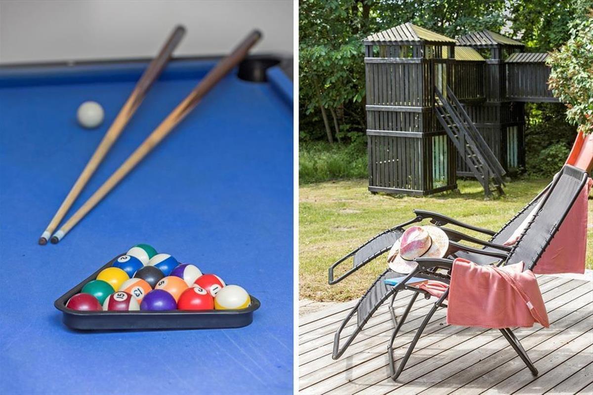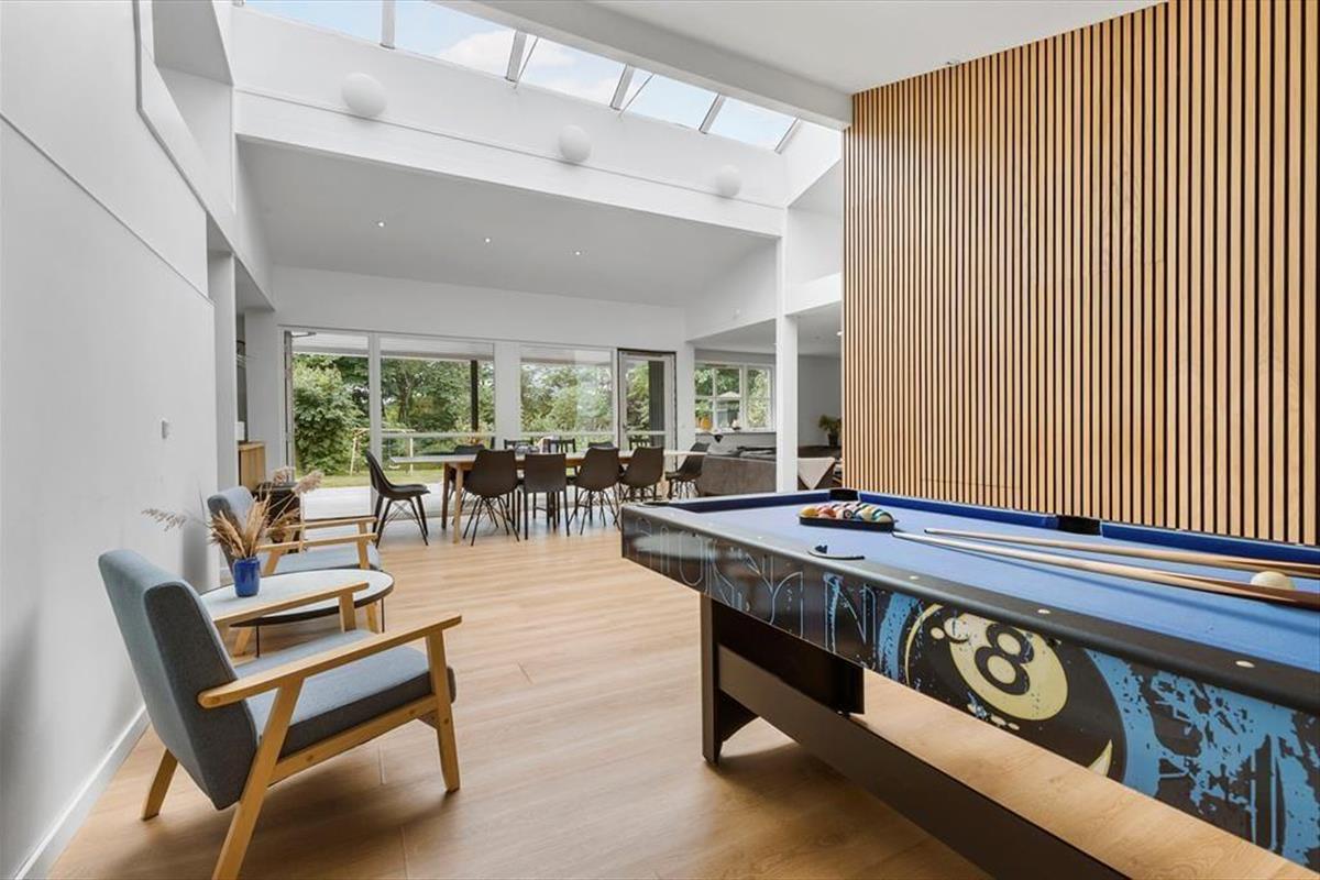 Gesellige Stunden mit gemeinsamem Spiel und gleichzeitig kochen? Kein Problem, denn die offene Küche ermöglicht es, dass man sich mit den Familienmitgliedern am Esstisch und im Wohnzimmer unterhalten kann. Wenn du Lust auf eine Partie Billard hast, wartet der Billardtisch auf dich, während für deine Lieben vielleicht ein Besuch im Wellness-Bereich mit Whirlpool und Sauna das Beste ist, was es gibt. In puncto Entspannung stehen euch also alle Möglichkeiten offen.