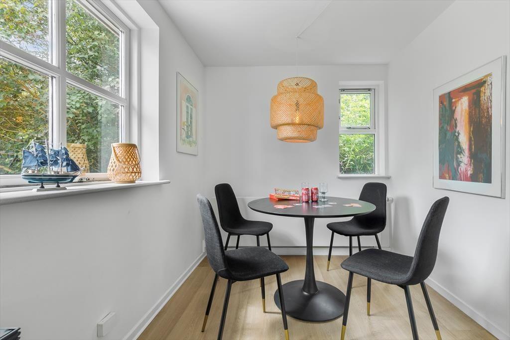 Die Gegend um Øer ist ein gemütliches und beliebtes Feriengebiet, mit Nähe zu Wald und Strand. Letzterer ist durch seichtes Wasser und Sand gekennzeichnet. Allerdings findet sich an manchen Stellen auch eine Mischung aus Steinen und Sand. Wie bereits erwähnt, gibt es für Mountainbiker in der Umgebung beste Voraussetzungen, wie eine 13 km lange Strecke, die in verschiedene Schwierigkeitsgrade unterteilt ist. Vom Haus aus sind es nur fünf Minuten Fahrt zum Hafen von Ebeltoft, wo ihr das Glasmuseum finden werdet, das führend in der modernen Glaskunst ist. Am Hafen finden ihr mehrere gute Restaurants. Außerdem habt ihr hier immer die Möglichkeit, fangfrischen Fisch zu kaufen. In den gemütlichen Kopfsteinpflastergassen von Ebeltoft warten viele gemütliche kleine Cafés und interessante Geschäfte auf euch, z.B. mit Kunsthandwerk. Und nicht zuletzt befindet sich hier auch die meistbesuchte Attraktion der Stadt, das alte Rathaus, in dem Menschen aus nah und fern sich jedes Jahr das Ja-Wort geben. Das Kattegat-Zentrum in Grenaa und Djurs Sommerland, der größte Vergnügungspark in Skandinavien, sind nur eine Autostunde vom Haus entfernt. Wir empfehlen euch einen Besuch in einem oder mehreren der vielen Parks, die Djursland zu bieten hat, wie z. B. den Safaripark Ree Park, und den Skandinavisk Dyrepark. Und auf jeden Fall solltet ihr eine lange Wanderung im einzigartigen Nationalpark Mols Bjerge einplanen.