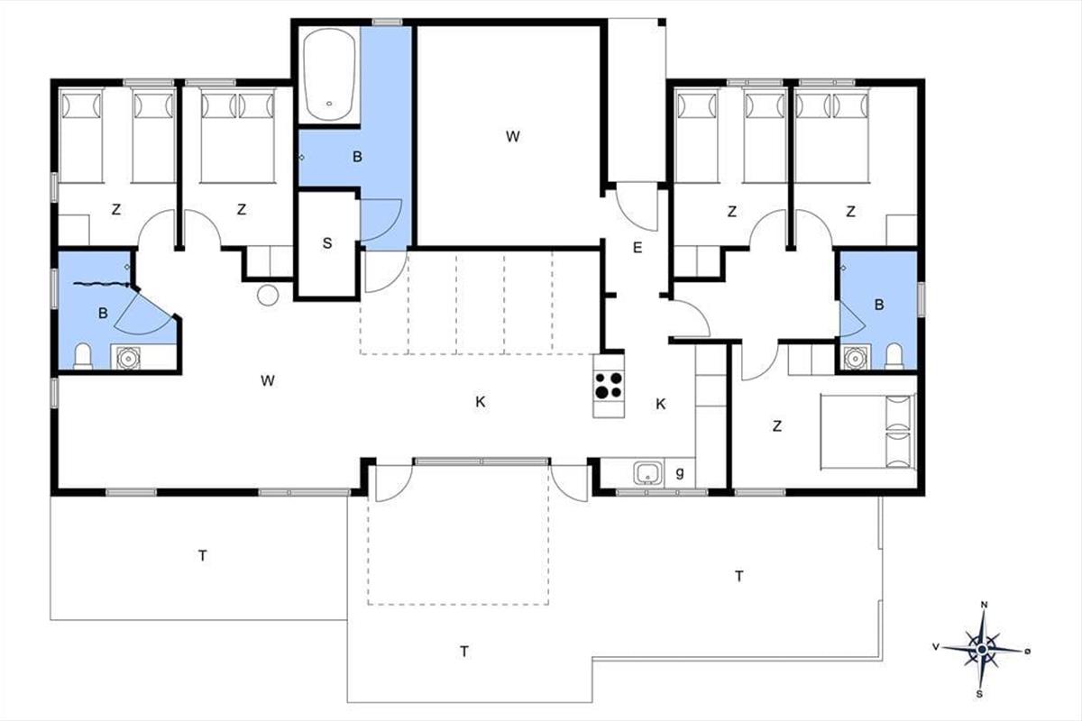 Das Haus verfügt insgesamt über fünf Schlafzimmer und zwei Bäder, was angenehm ist, wenn ihr als große Familie unterwegs seid. So findet jeder guten Schlaf und die Schlange vor dem Bad hält sich am folgenden Morgen in Grenzen.