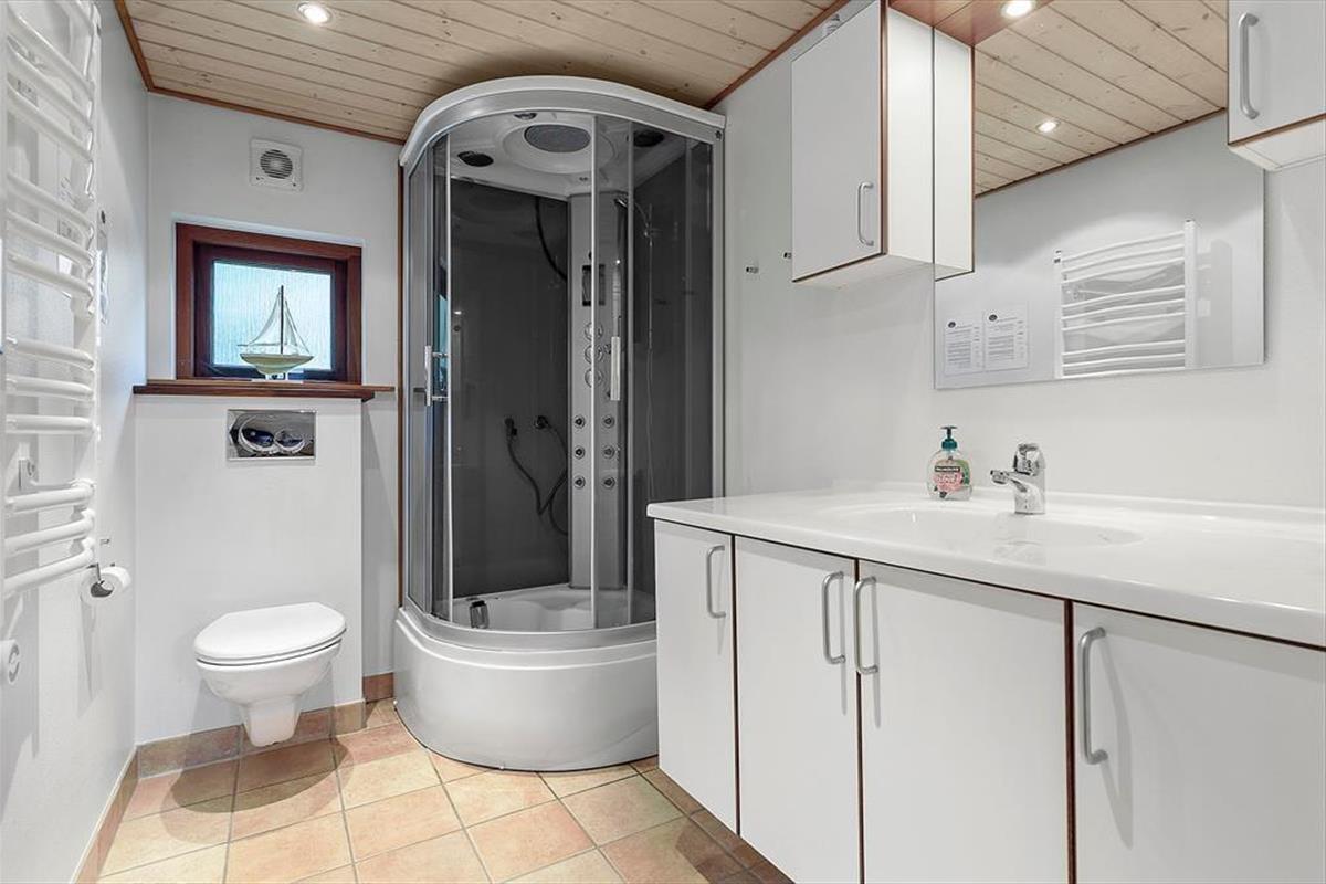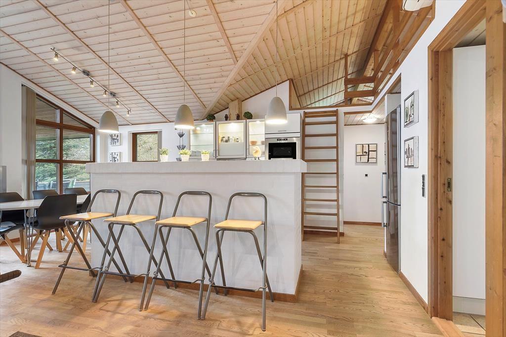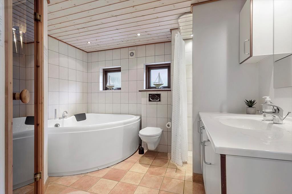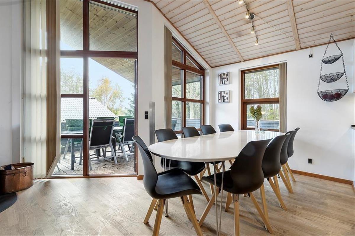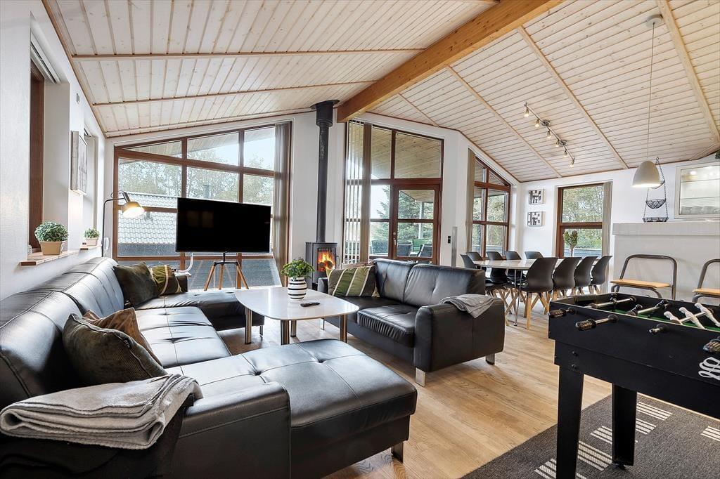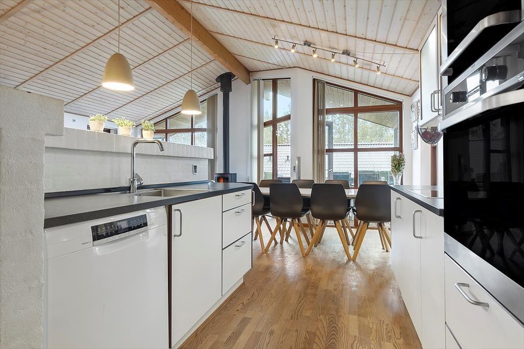 Dieses große Whirlpoolferienhaus lädt mit viel Platz und einer schönen Ausstattung zu unvergesslichen Urlaubtagen ein. Das Ferienhaus, das ein wenig südlich von Ebeltoft liegt, wird durch beste Urlaubsatmosphäre und ansprechende Farbtöne geprägt. Es beinhaltet einen attraktiven, hellen Wohnraum mit modernen Möbeln, einem Kaminofen und einer Wärmepumpe. In der schönen Küche bereiten Sie die Mahlzeiten zu, die Sie im Anschluss am Esstisch genießen. Das Urlaubsdomizil verfügt über zwei komfortable Badezimmer, sodass es sich gut für einen Urlaub mit der gesamten Familie eignet. Eines der Bäder ist mit einem luxuriösen Whirlpool versehen, der nach einem langen Urlaubstag wohltuende Momente der Entspannung verspricht. Alternativ können Sie den Abend mit dem ein oder anderen heißen Saunagang krönen. Die Schlafplätze mit Boxspringmatratzen verteilen sich auf vier Schlafräume und auf vier Schlafplätze auf dem Schlafboden.