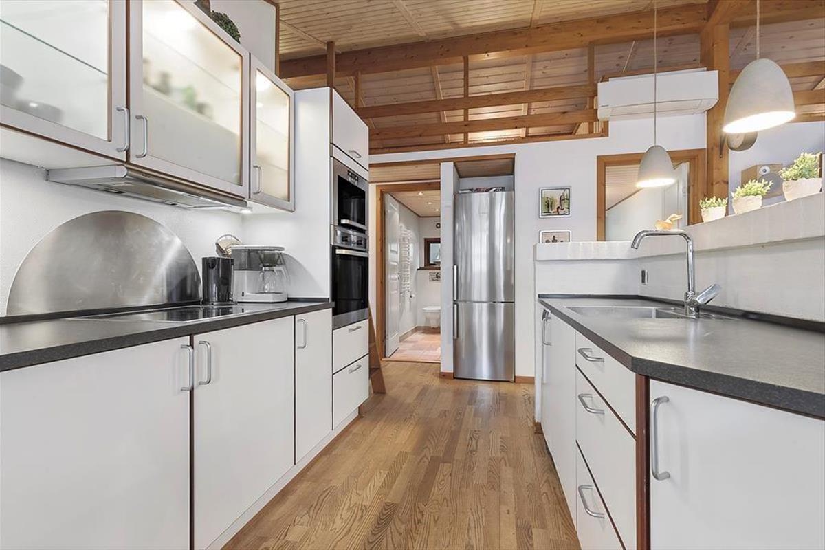 Die Umgebung von Øer ist eine wunderbare Urlaubsdestination. Ringsum treffen Sie auf viele Stellen, an denen Groß und Klein viel geboten wird. Sie dürfen sich auf einen kinderfreundlichen Badestrand, auf Wald und Natur freuen. Nur ein Spaziergang trennt Sie von der Urlaubsanlage Øer Maritime, bei der Sie auf ein im Sommer geöffnetes Lebensmittelgeschäft, eine Sporthalle und ein Bistro treffen. Mountainbiker wird der 13 Kilometer lange MTB-Track mit unterschiedlichen Schwierigkeitsgraden begeistern. Nach rund zehn Minuten erreichen Sie per Pkw den Hafen der malerischen Stadt Ebeltoft. Der Hafen glänzt mit maritimer Atmosphäre, guten Restaurants und der Möglichkeit, frischen Fisch, gute Weine und Glaskunst zu kaufen. Die Hafenpromenade führt Sie am bekannten Glasmuseum und an der Fregatte Jylland vorbei und führt weiter zur Maltfabrikken. Einen Bummel durch die alten Kopfsteinpflastergassen an kleinen Häusern und Stockrosen vorbei sollten Sie sich keinesfalls entgehen lassen. Überall treffen Sie auf kleine Geschäfte, gemütliche Cafés und schöne Restaurants. Die meist besuchte Sehenswürdigkeit der Stadt ist das alte Rathaus, Det Gamle Rådhus, in dem sich alljährlich zahllose Heiratswillige aus aller Welt das Ja-Wort geben. In der näheren Umgebung des Ferienhausgebietes treffen Sie auf die unter Naturschutz stehende Erhebung Jernhatten, die in der letzten Eiszeit geschaffen wurde und eine Höhe von 49 Metern aufweist. Oben angekommen eröffnet sich Ihnen ein herrlicher Ausblick über den östlichen Teil der Halbinsel Mols und auf die kleine Insel Hjelm. Für einen spannenden Familienausflug bieten sich der größte Vergnügungspark des Nordens, das Djurs Sommerland, und der beliebte Ree Park an. Einen Abstecher in den faszinierenden Nationalpark Mols Bjerge sollten Sie ebenfalls fest in Ihr Urlaubsprogramm einplanen.