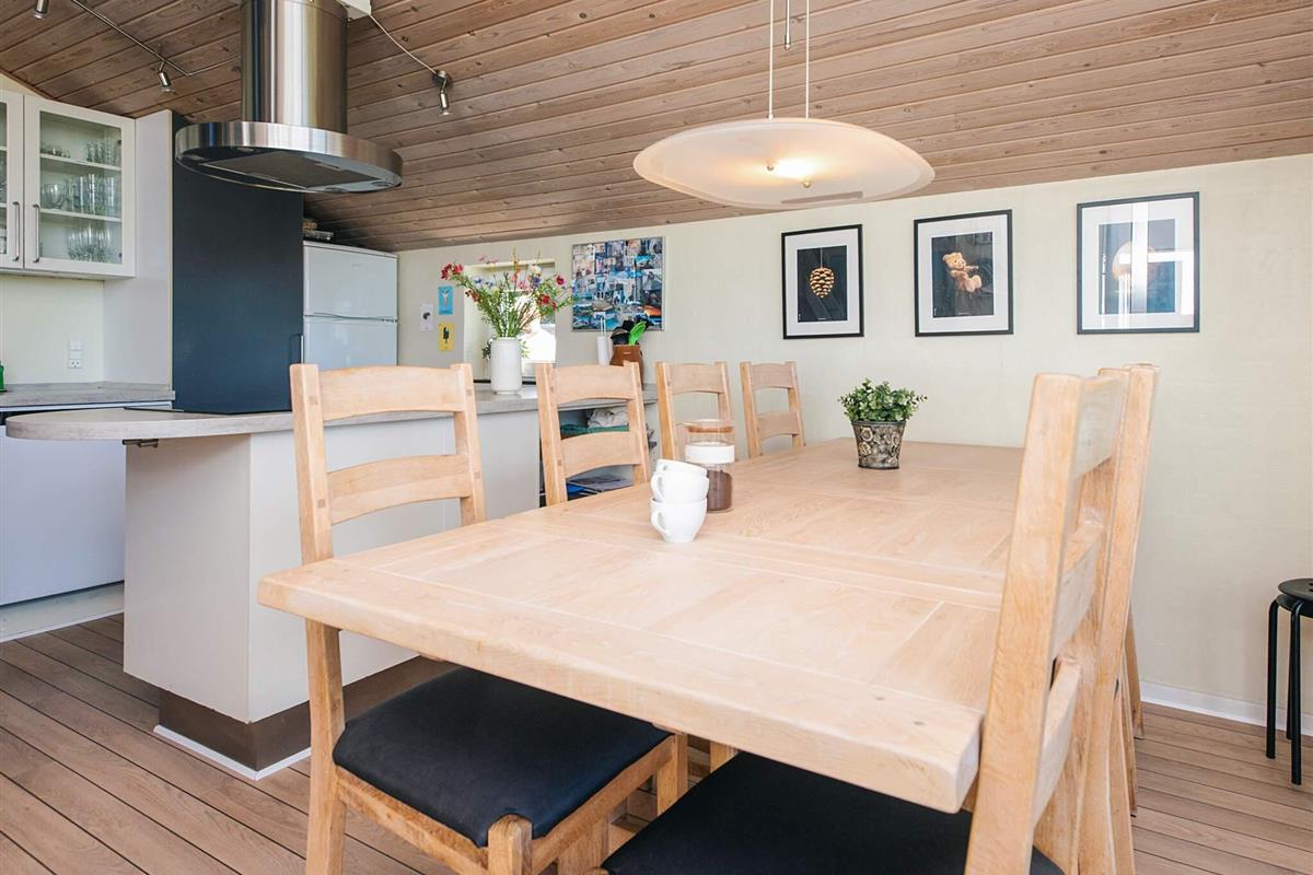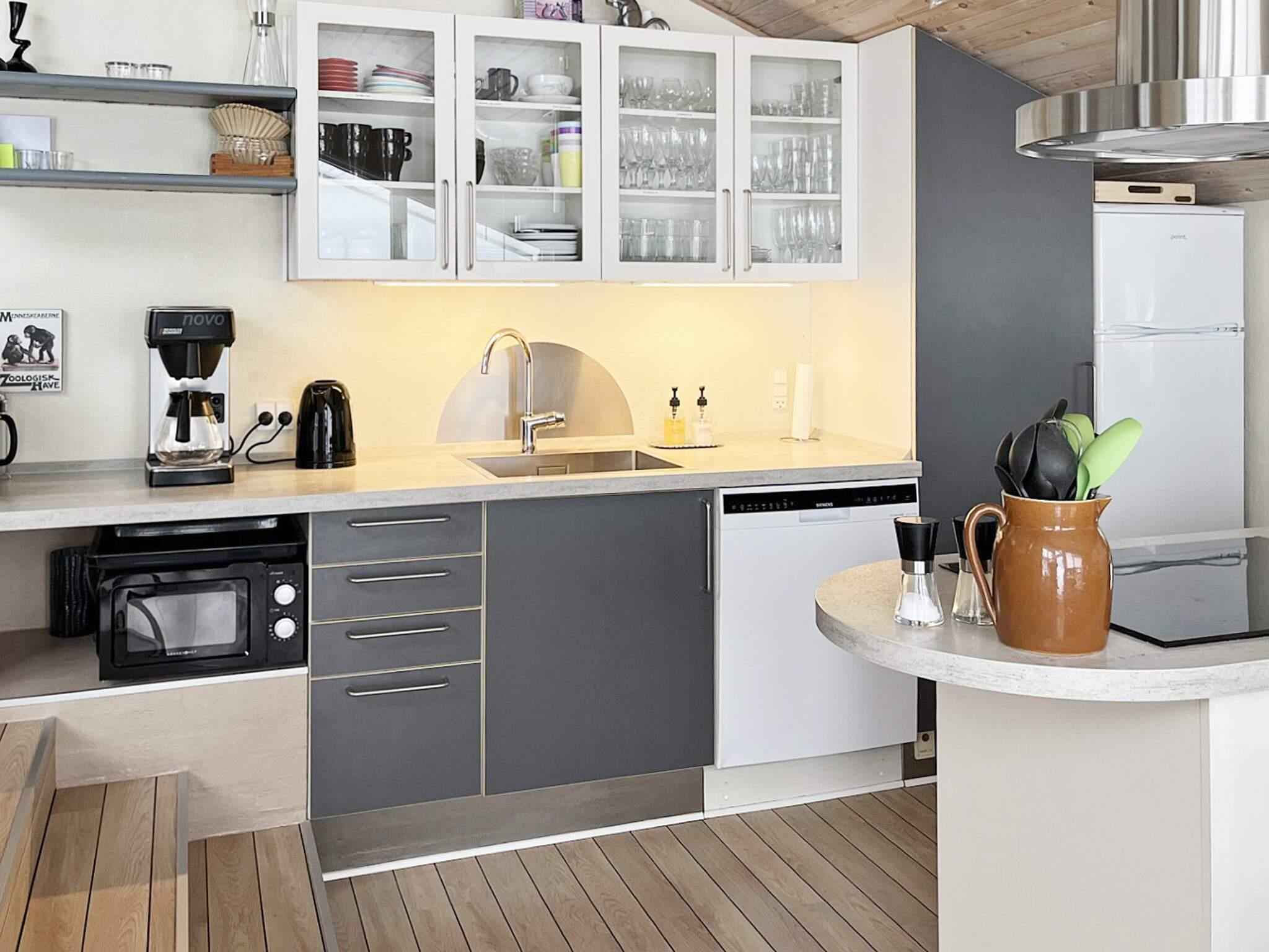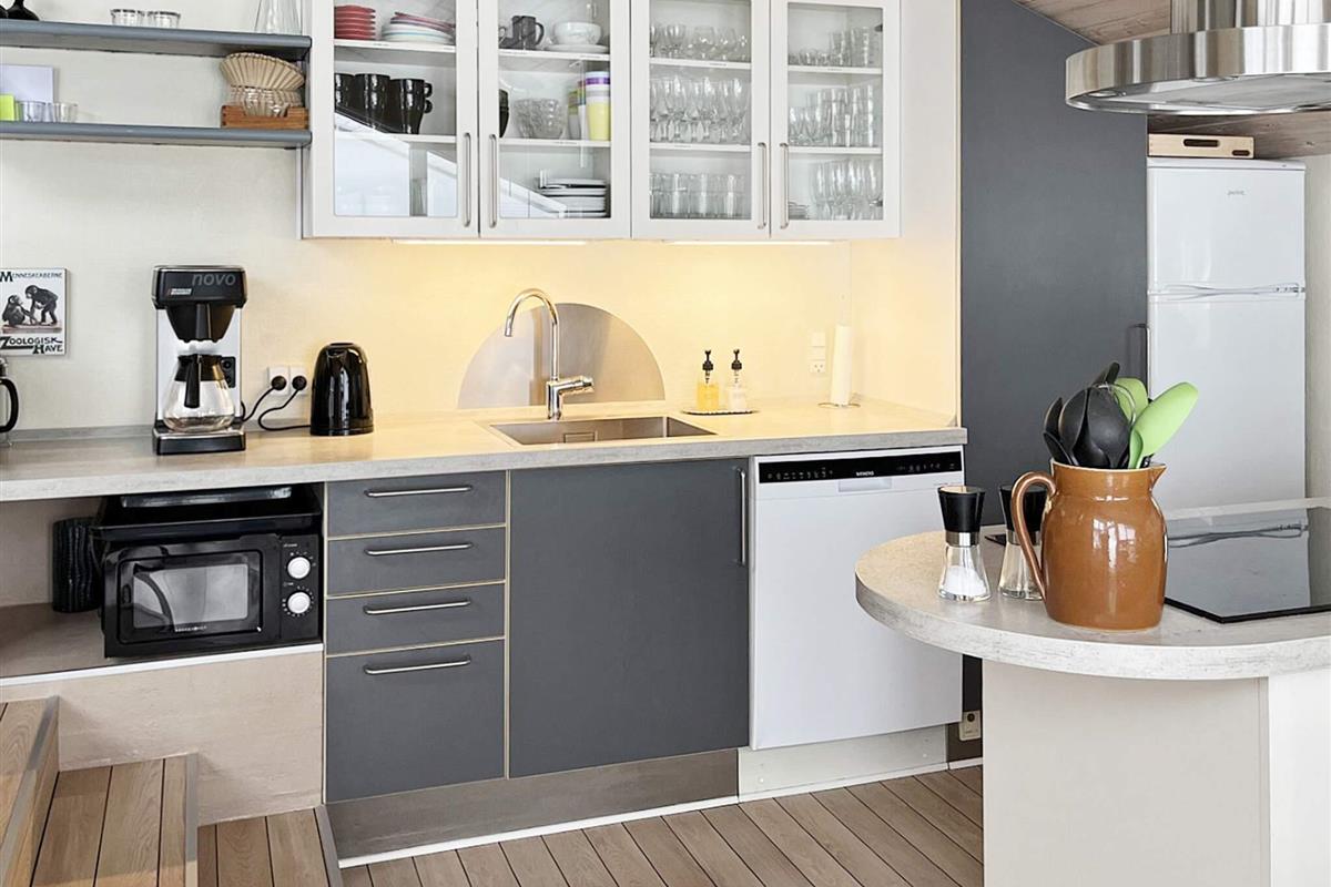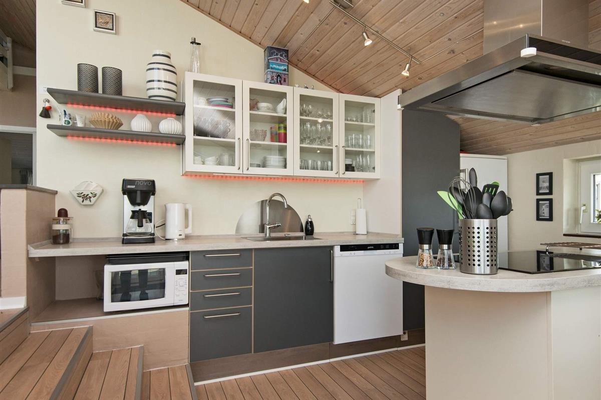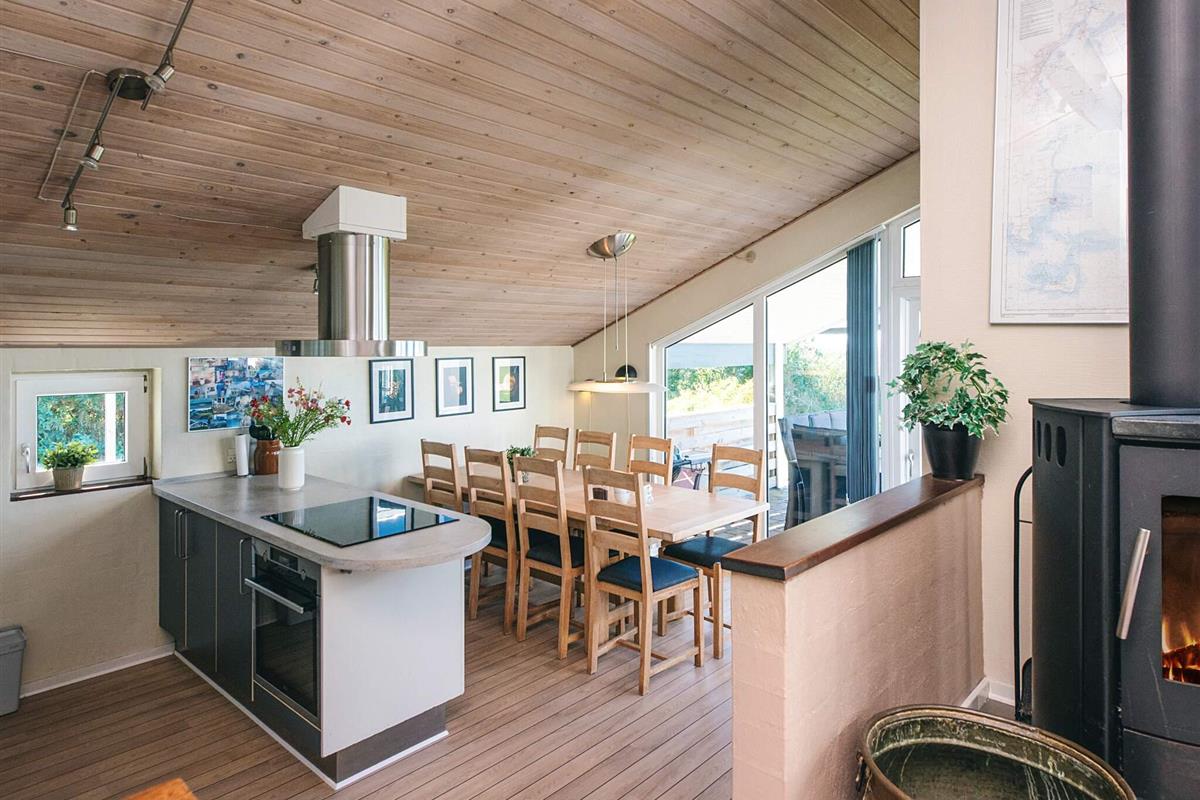 Von der zeitgemäß ausgestatteten Küche hat man zudem Zutritt auf eine überdachte Terrasse mit Grill, Sitzgelegenheiten und Liegen, die für sonnige Tage und gemütliche Grillabende mit Blick zum Sonnenuntergang genutzt werden kann. Das Frühstück können Sie auf der schönen Morgenterrasse genießen. In dem Schuppen können Sie verschiedene Sachen aufbewahren und es gibt hier einen Kühlschrank mit Gefrierfach sowie diverse Spielsachen für draußen. Das Ferienhaus wird fortlaufend gepflegt und instand gehalten.