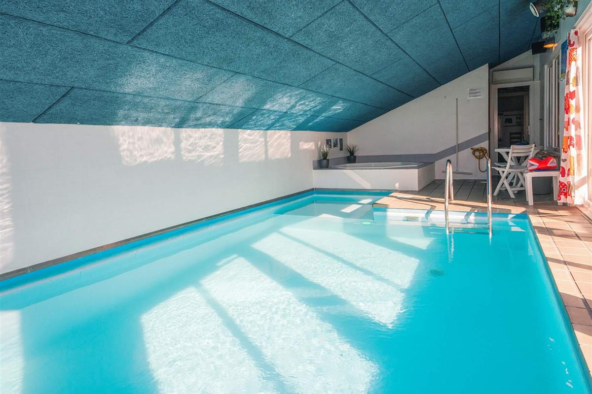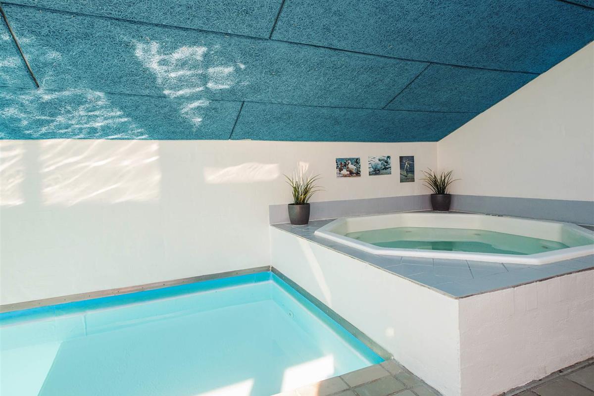 Im attraktiven Poolbereich finden Sie den 24 m² großen Pool mit Kinderbecken und Gegenstromanlage. Außerdem können Sie hier wunderbar im 5 Personen Standwasser-Whirlpool mit Massagedüsen und Temperaturregler oder in der Sauna für max. 5 Pers. entspannen. Ein Badezimmer mit Verbindung zum Poolbereich. Pool und Whirlpool werden durch eine energieeffiziente, kostensparende Wärmepumpe erwärmt.