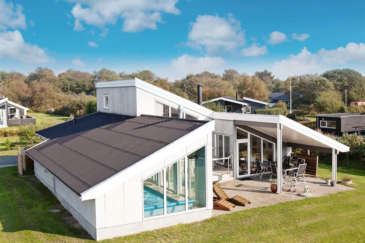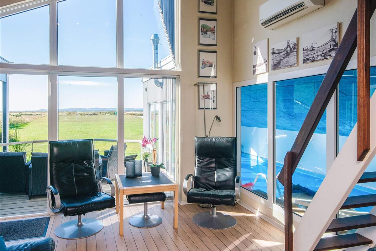 Ansprechendes, gut instand gehaltenes 156 m2 großes Ferienhaus mit hauseigenem Swimmingpool, gelegen auf einem 3.300 m2 großen Naturgrundstück vorne in erster Reihe bei Øer, mit erstklassigem Panoramaausblick zum Meer!