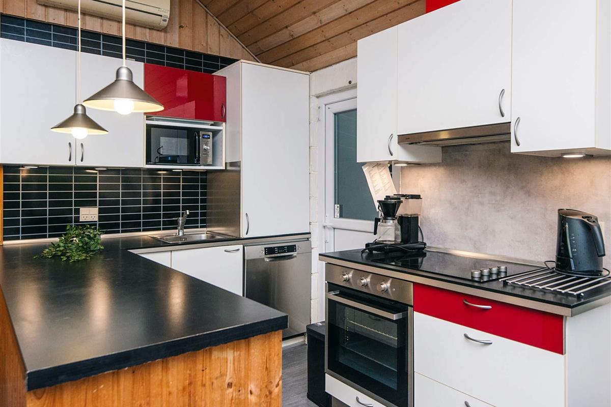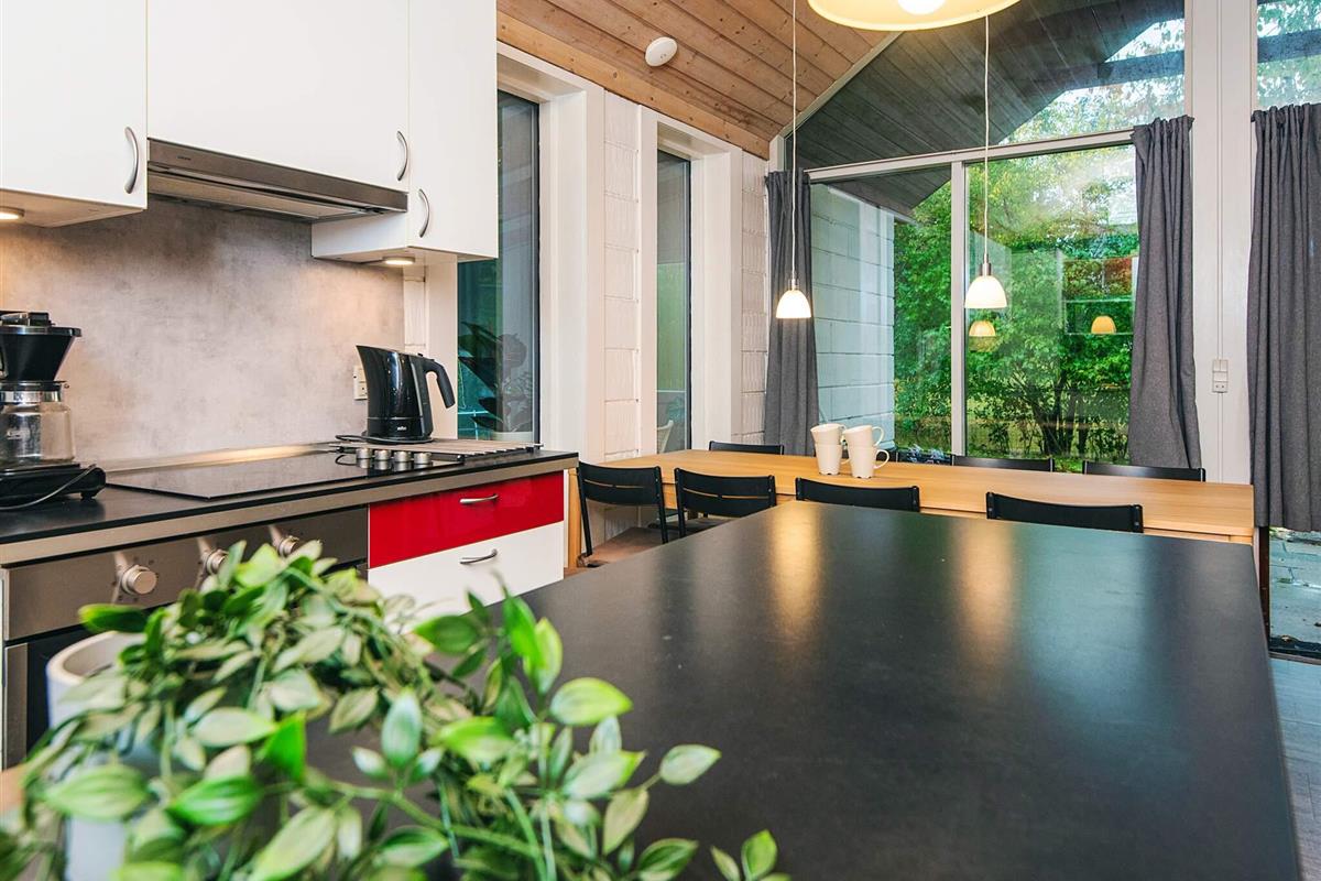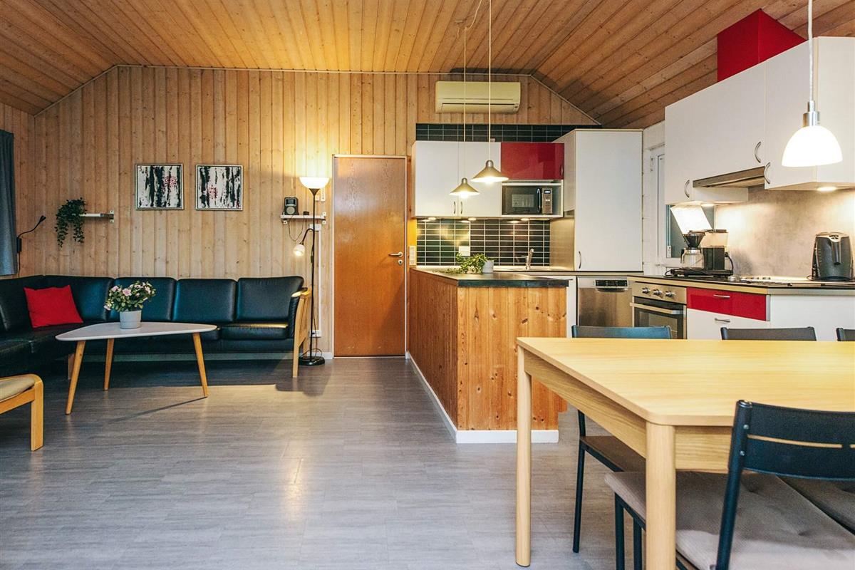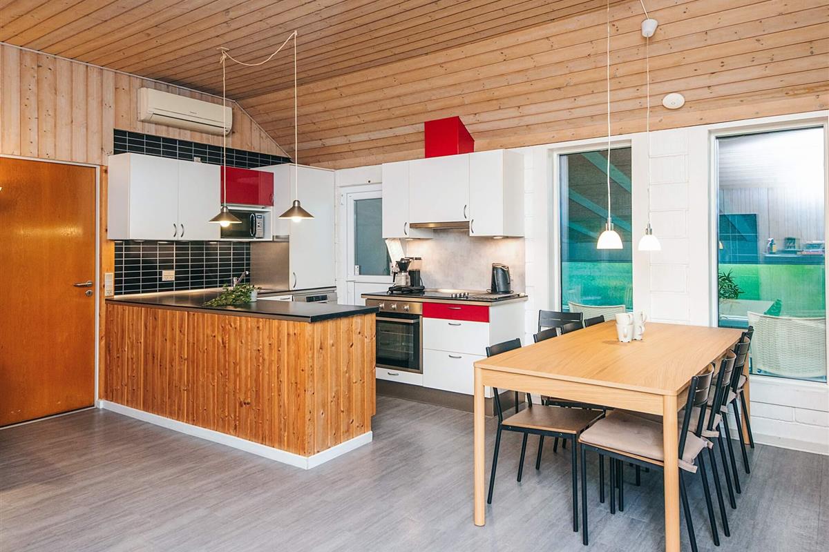 Terrasse blicken. Die Küche ist gut ausgestattet, u.a mit einer Geschirrspülmaschine. Es gibt drei Schlafzimmer im Haus, eines davon ist ein sog. Familienzimmer mit vier Schlafplätzen. Außerdem ist eine schnelle 50/50 mbit Internetverbindung vorhanden.