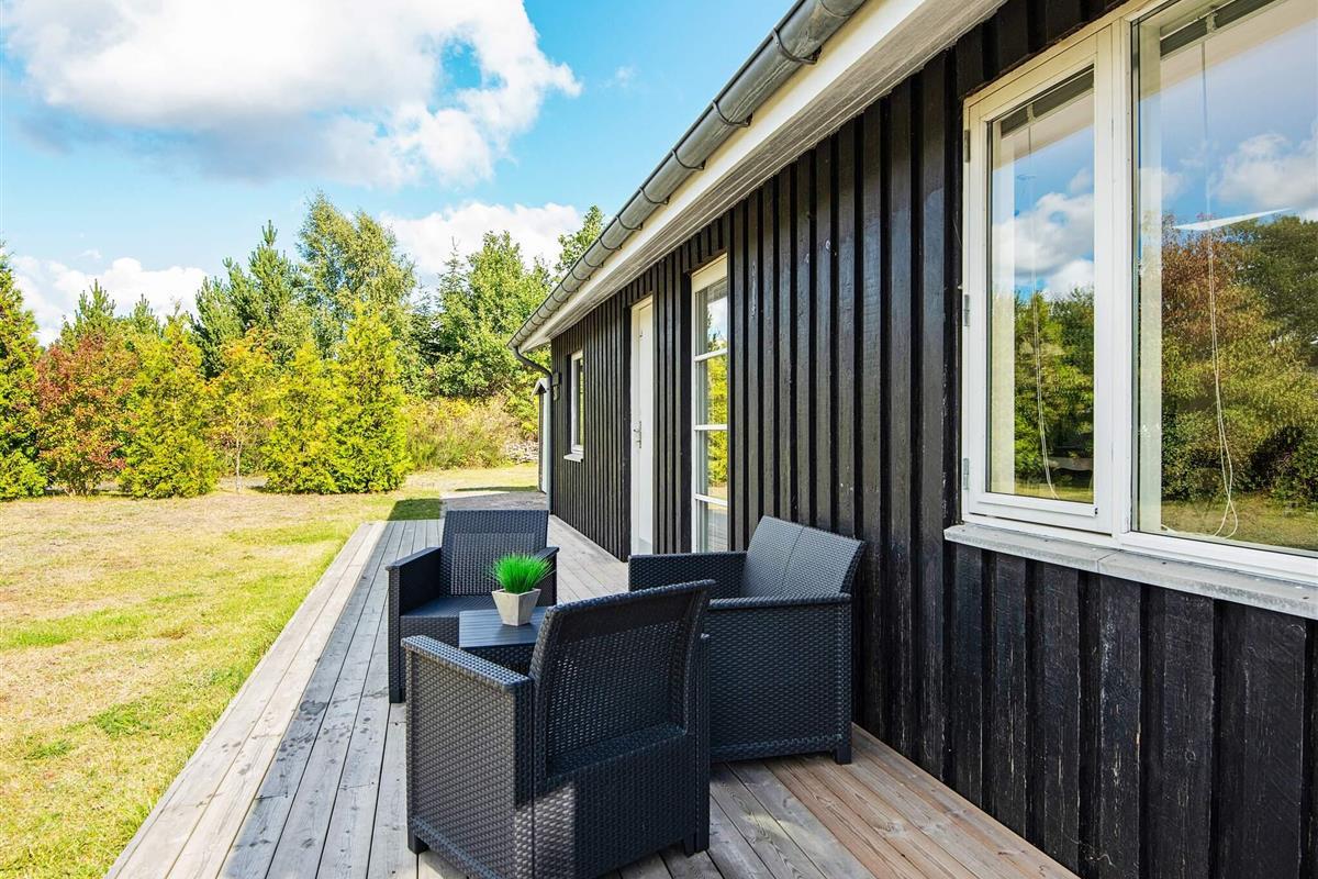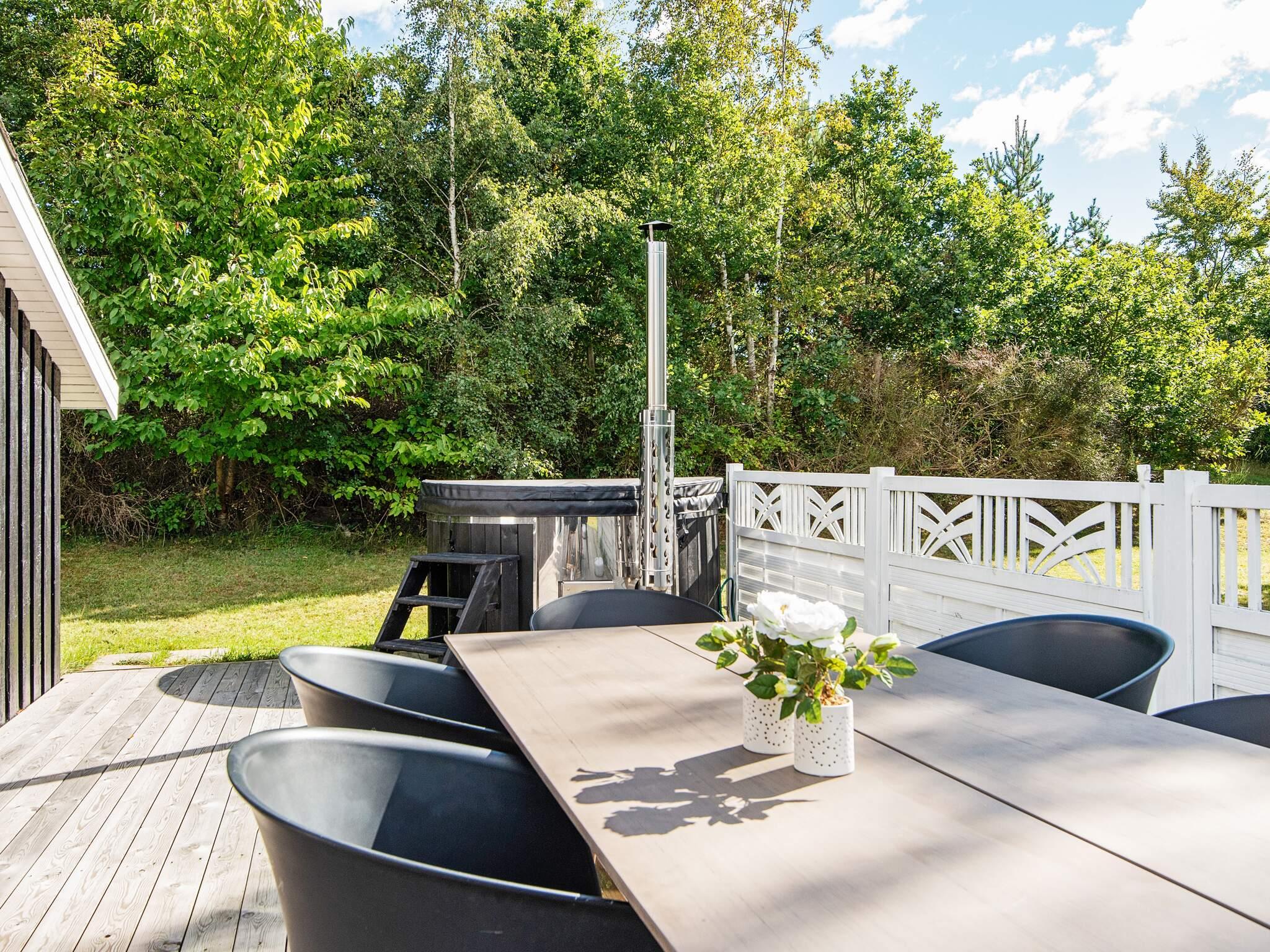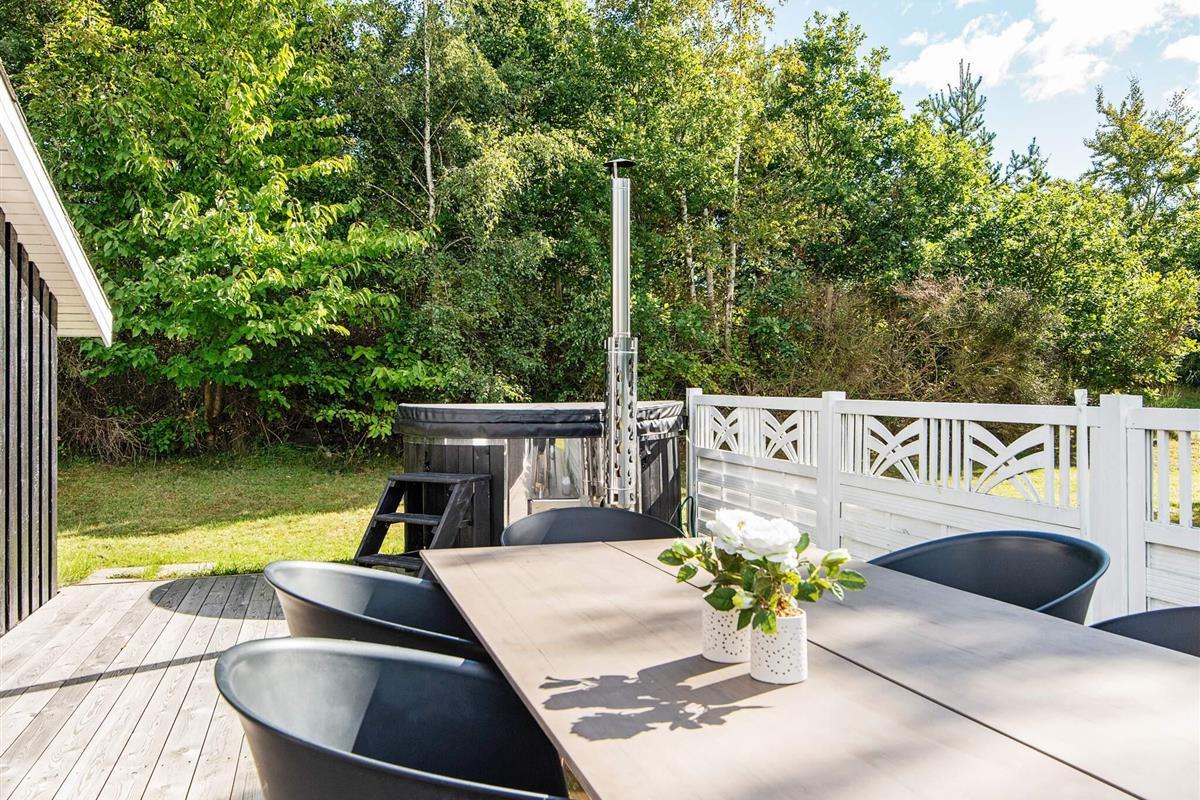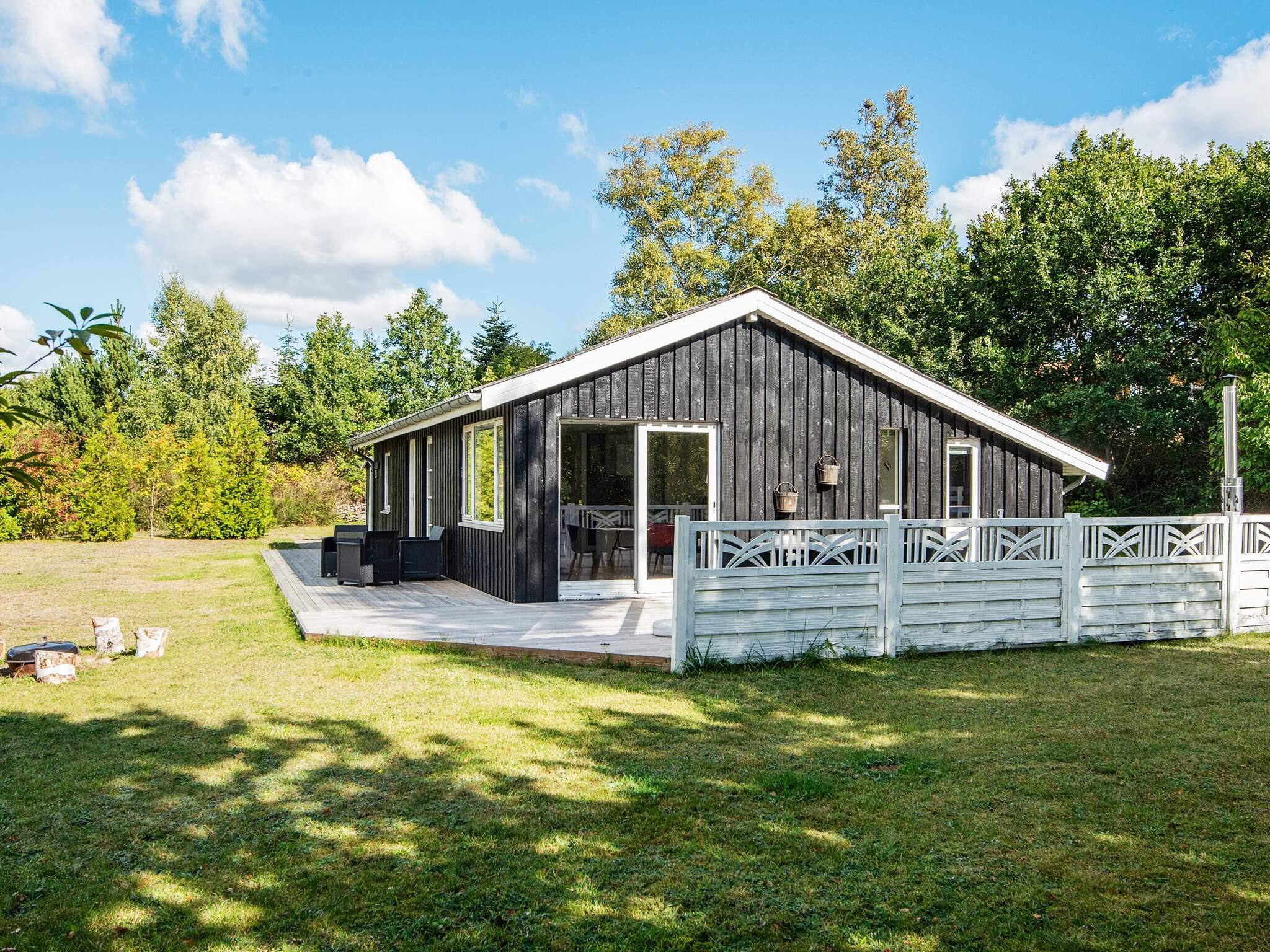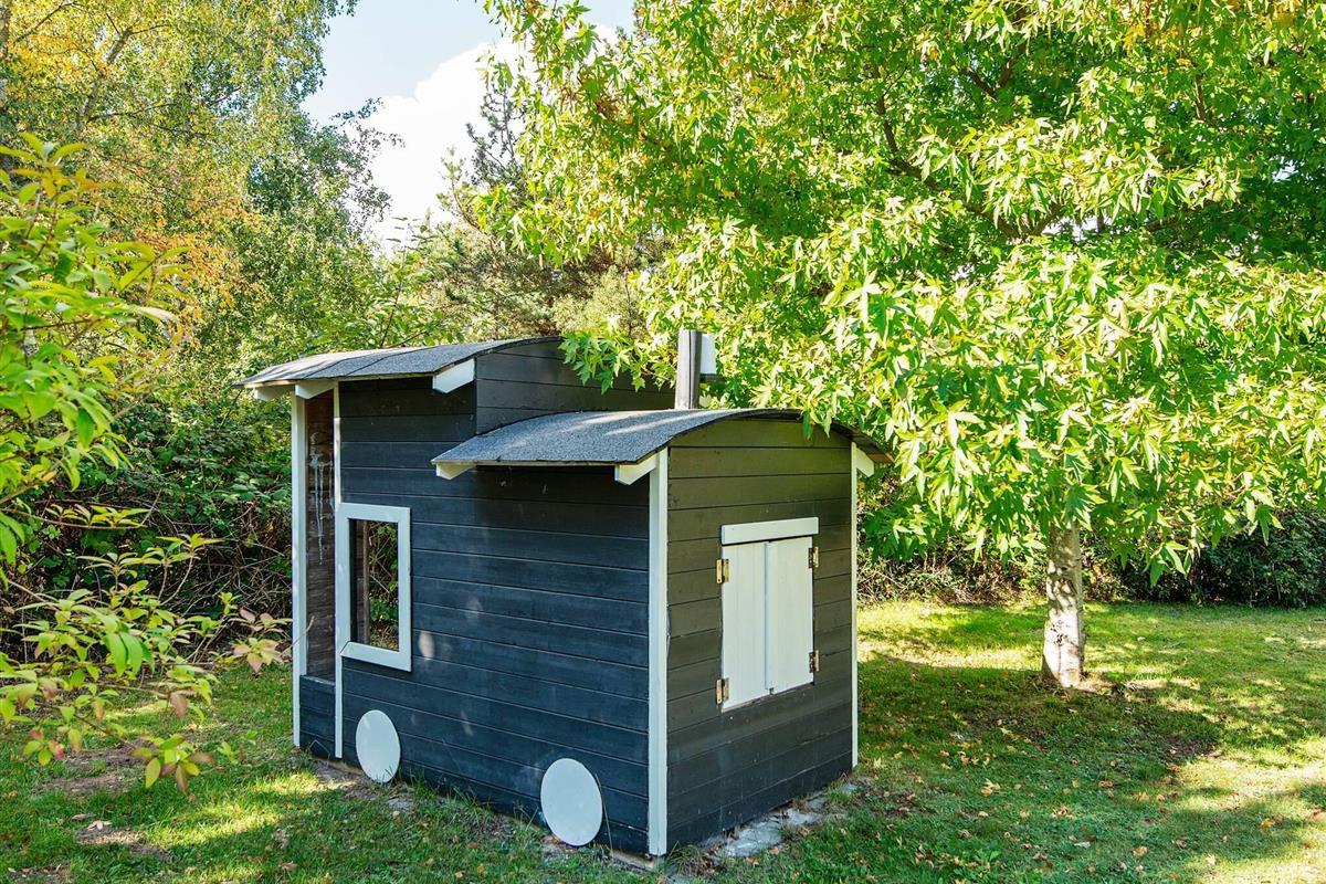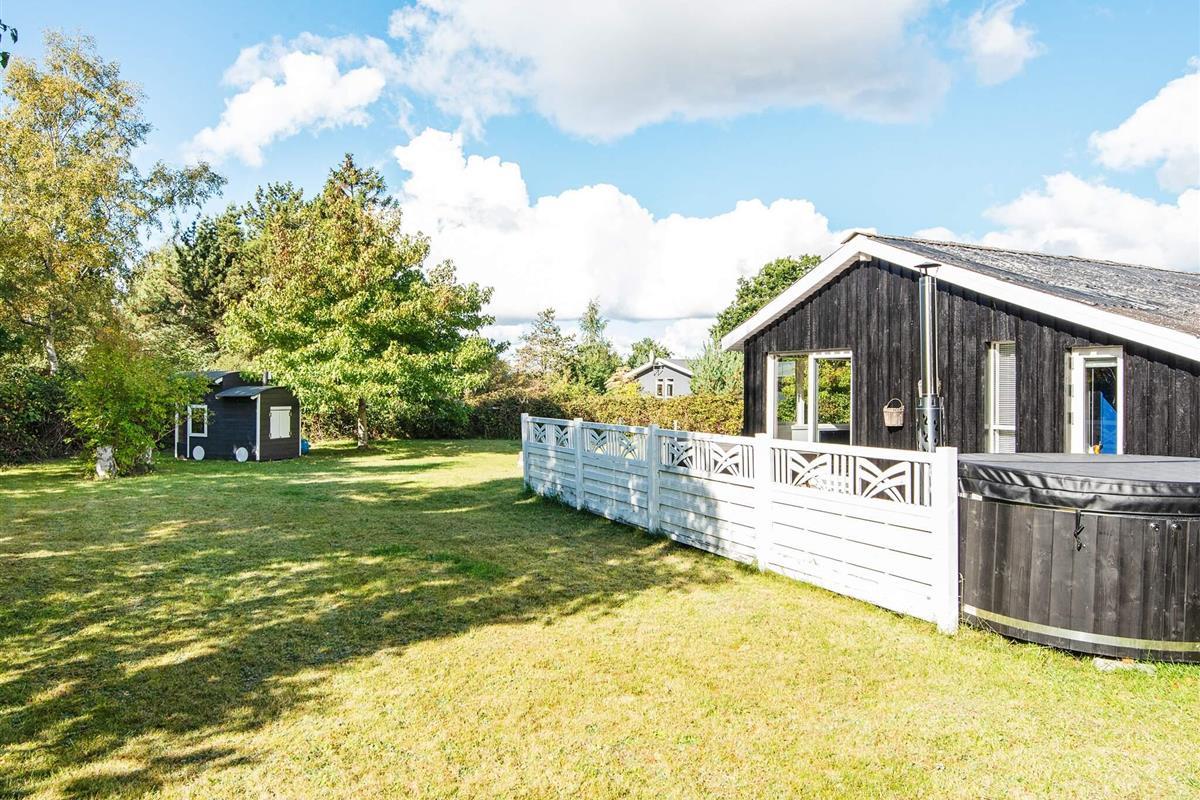 Draußen lädt eine großzügige Terrasse zum Essen, Lesen oder Genießen der frischen Luft ein, während die umliegende Rasenfläche viel Platz zum Spielen für Kinder bietet. Auf dem Grundstück befindet sich sogar ein kleines Spielhaus, in dem die kleinen Gäste Spaß haben, während die Erwachsenen im Whirlpool entspannen. Die Lage ist ruhig und malerisch, umgeben von der natürlichen Schönheit von Øer und seiner sanften Hügellandschaft.