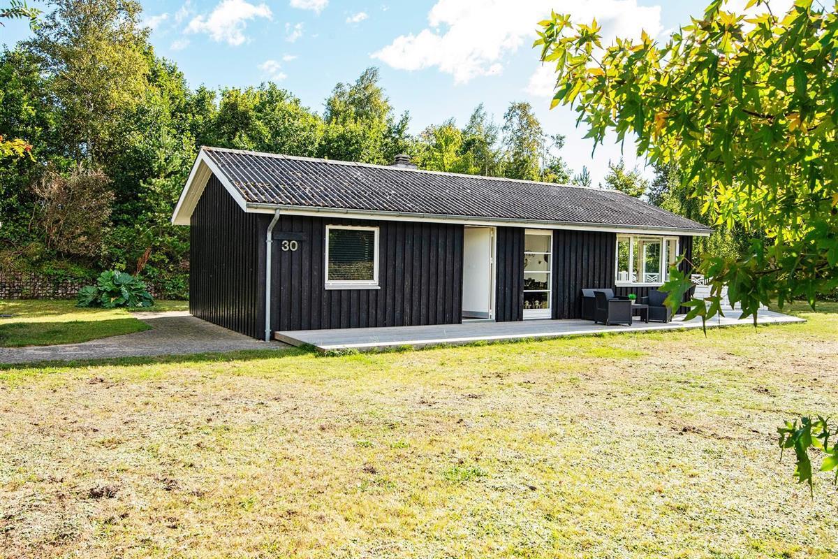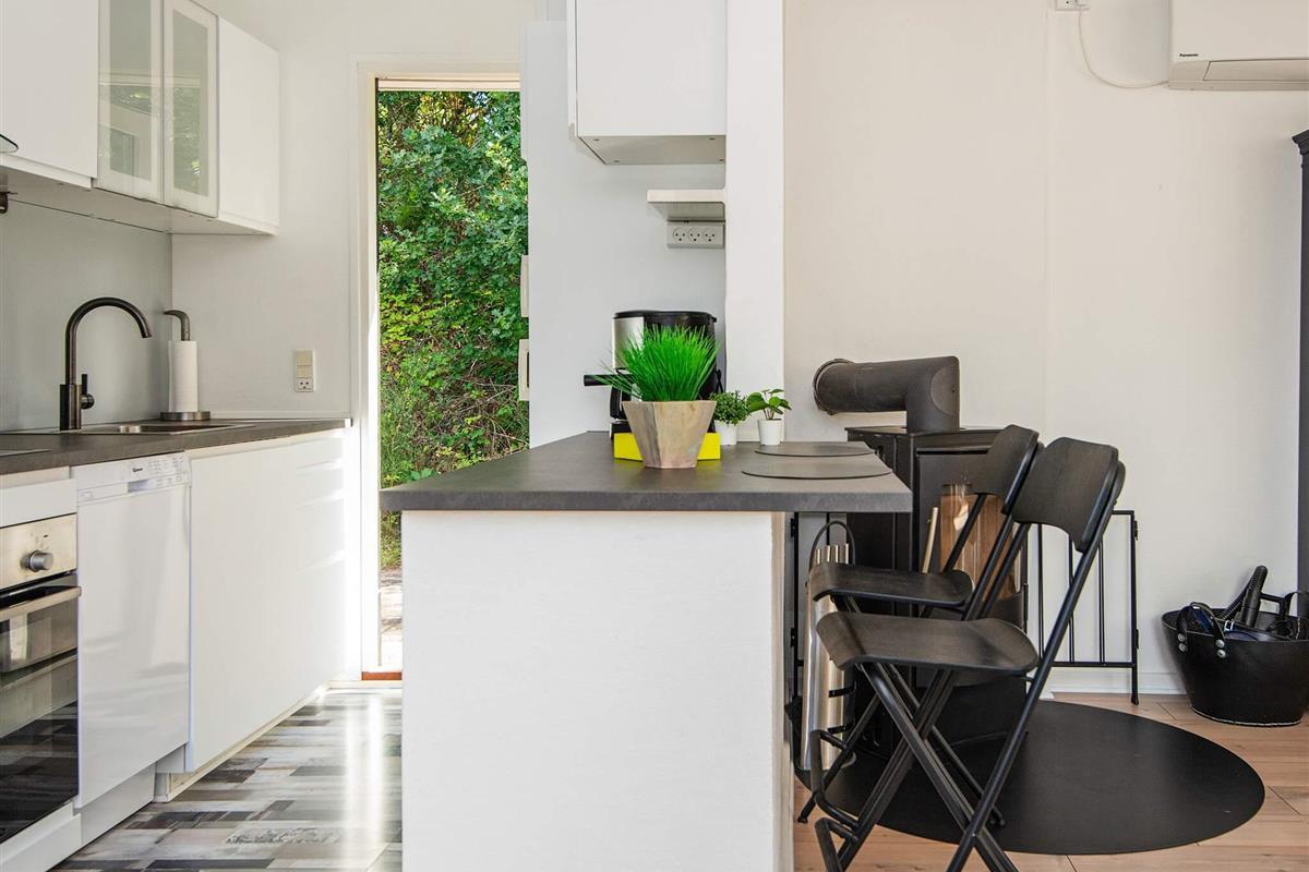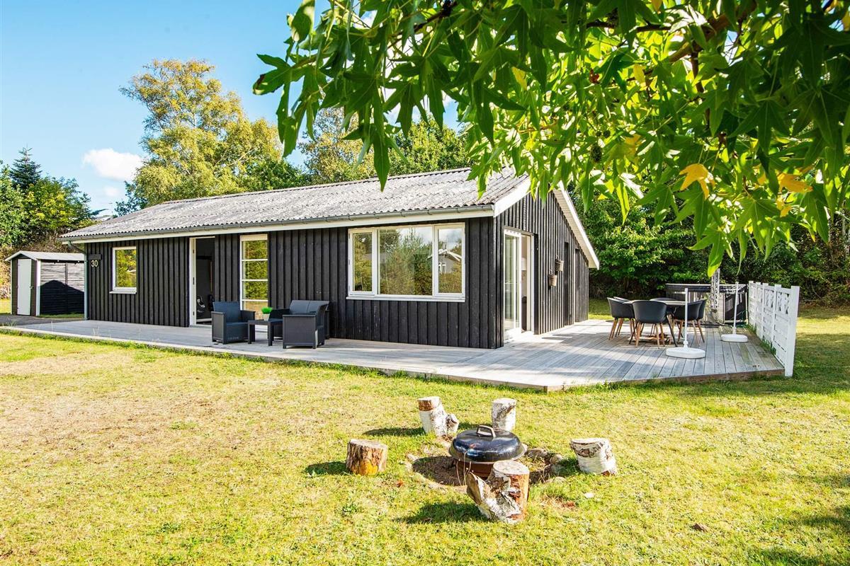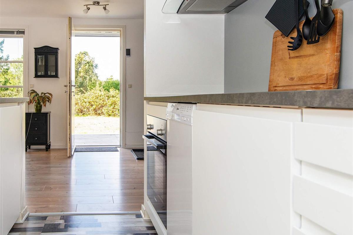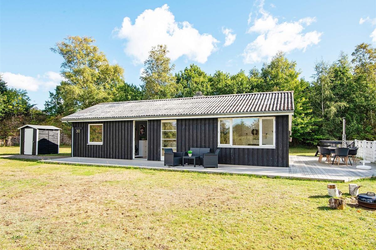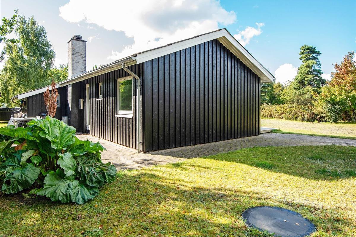 Draußen lädt eine großzügige Terrasse zum Essen, Lesen oder Genießen der frischen Luft ein, während die umliegende Rasenfläche viel Platz zum Spielen für Kinder bietet. Auf dem Grundstück befindet sich sogar ein kleines Spielhaus, in dem die kleinen Gäste Spaß haben, während die Erwachsenen im Whirlpool entspannen. Die Lage ist ruhig und malerisch, umgeben von der natürlichen Schönheit von Øer und seiner sanften Hügellandschaft.