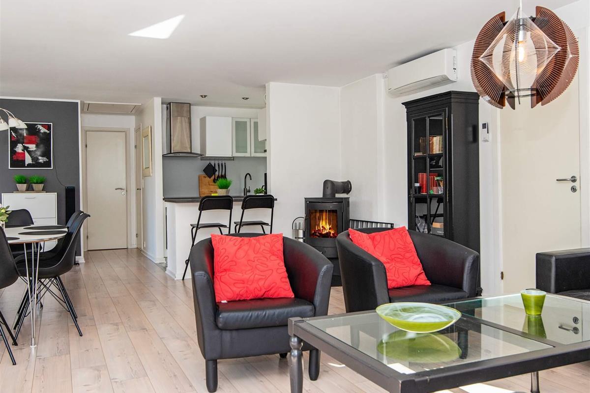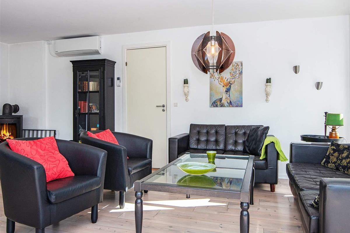 Dieses charmante Ferienhaus in der Nähe von Øer ist perfekt für einen erholsamen Familienurlaub und verfügt über einen großen Außenwhirlpool für bis zu sechs Personen. Das Haus verfügt über drei komfortable Schlafzimmer, eines davon mit einem Spieltisch für Kinder oder Familienunterhaltung. Die offene Küche ist mit modernen Geräten und einem Essbereich ausgestattet, während das gemütliche Wohnzimmer mit Holzofen und Fernseher ein einladender Treffpunkt ist.