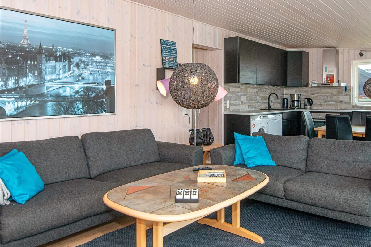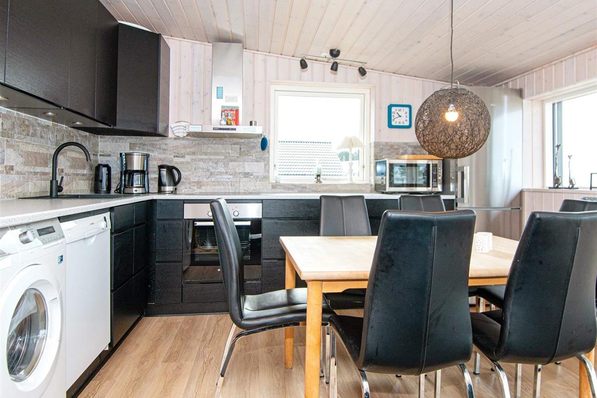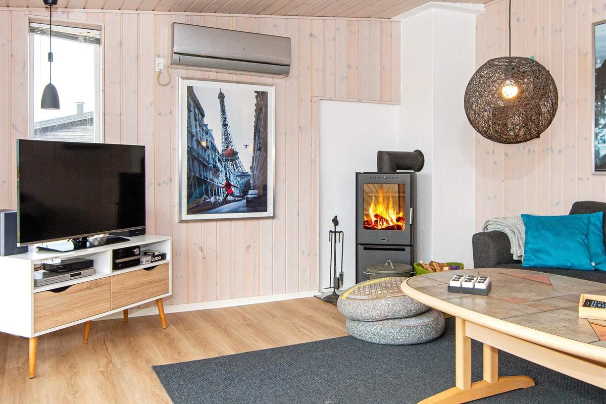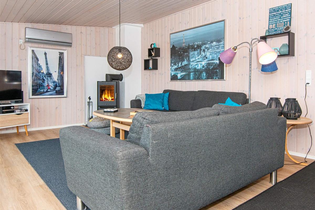Innen wurde das Ferienhaus geschmackvoll eingerichtet und 2016 zuletzt komplett renoviert. Die Einrichtung von Küche und Bad sowie das Mobiliar wurden bei dieser Gelegenheit erneuert. Das Familienleben spielt sich vor allem im großen Küchen-/Wohnbereich ab, in dem es auch eine gemütliche Sitzecke mit Kaminofen und TV gibt.