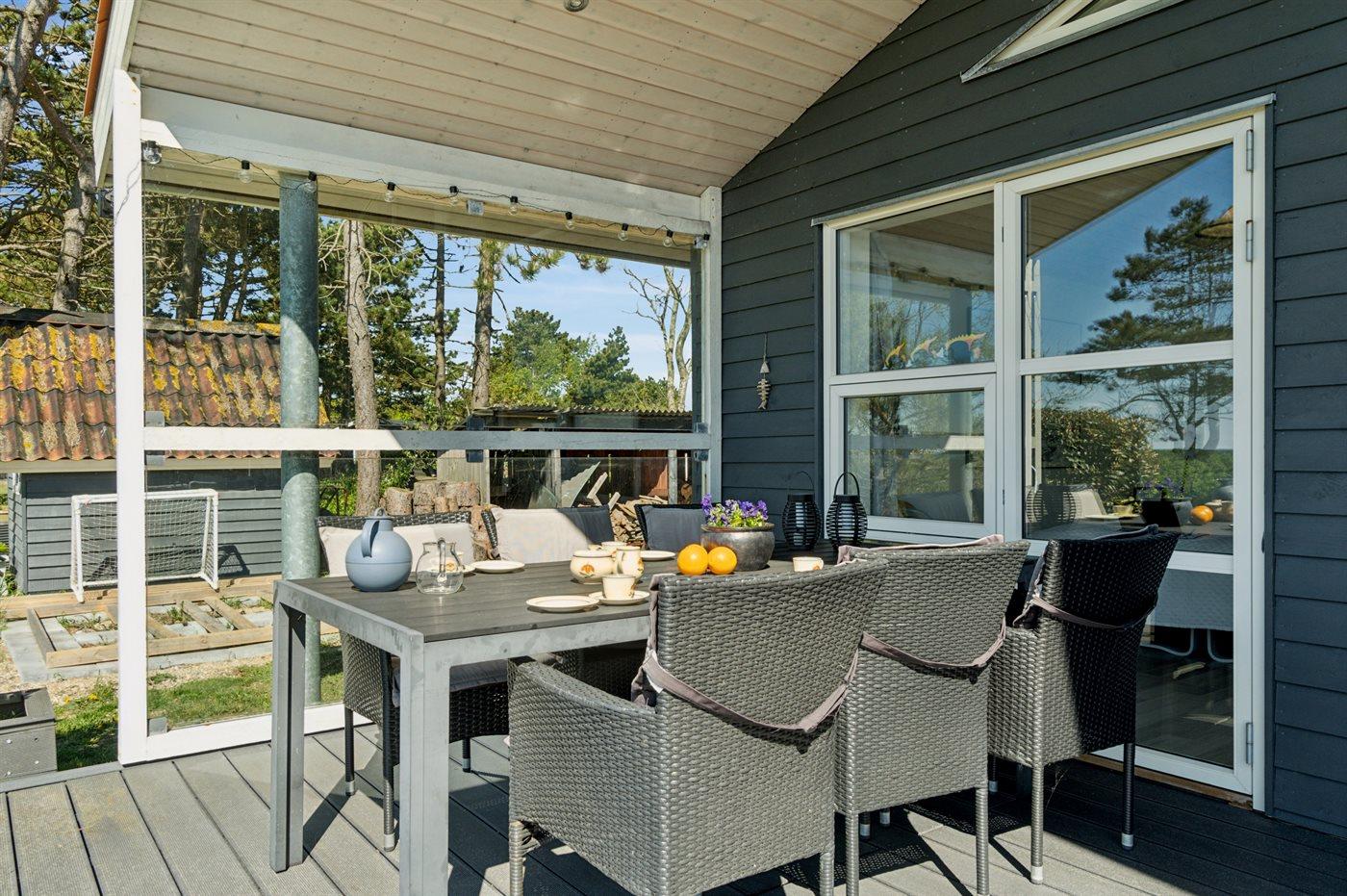 De vakantiewoning is gelegen op een 2059 m² groot natuural grond. Afstand tot de zee 50 m. Dichtstbijzijnde winkel 5000 m. Bij de vakantiewoning hoort terras. Daarnaast is er een overdekt terras. Schommel. Zandbak. Trampoline. Barbecue. Parkeerplaats bij het huis.
