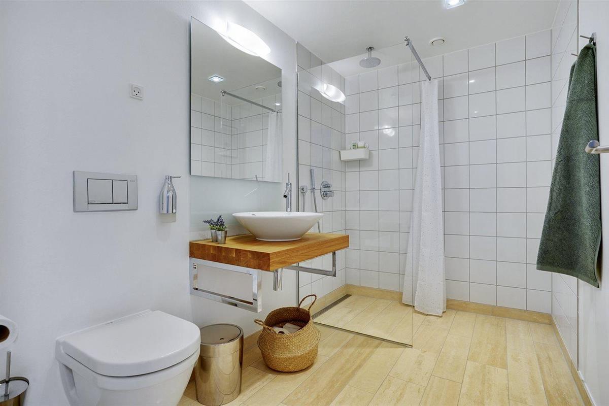 Er is 1 badkamer met douche en 1 toilet.. Er is vloerverwarming in 1 badkamer.