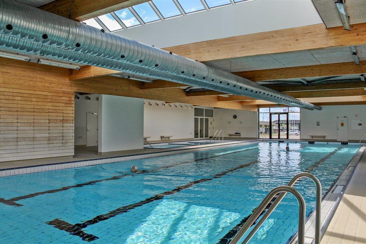 Het gemeenschappelijk innenzwembad biedt de gelegenheid om heerlijk te spelen en gezellig samen te zijn.