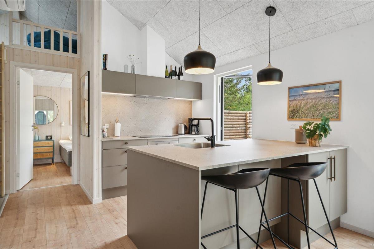 De keuken is uitgerust met koelkast Er is 4 inductiekookplaten, heteluchtoven, magnetron en vaatwasser.