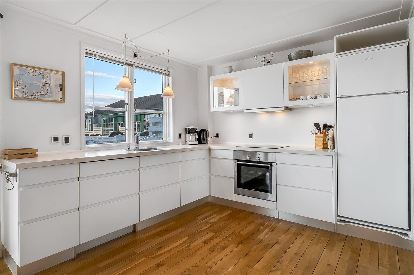 De keuken is uitgerust met koelkast Er zijn 4 keramische kookplaten, heteluchtoven en vaatwasser.