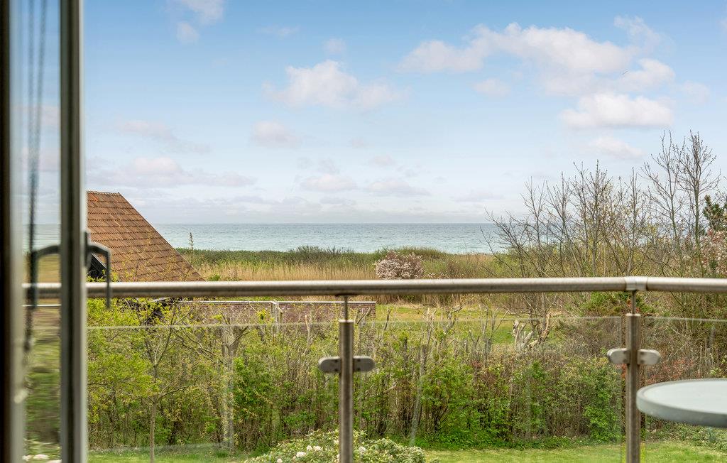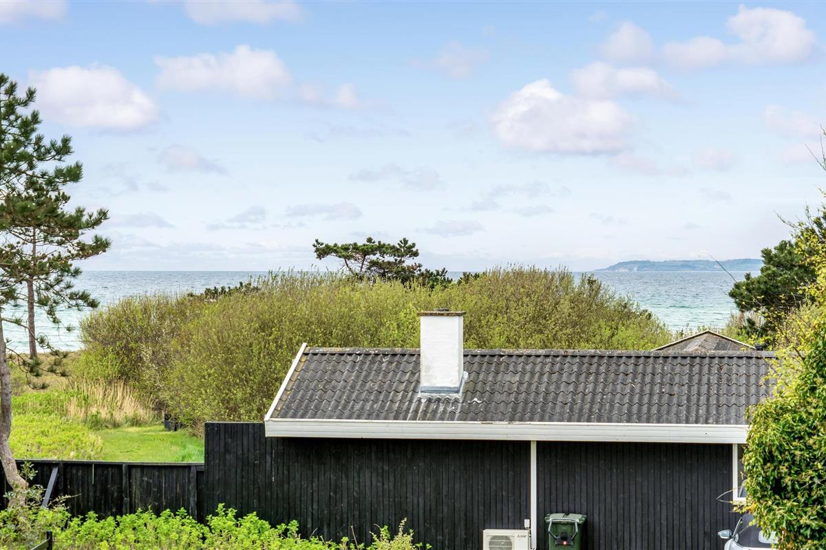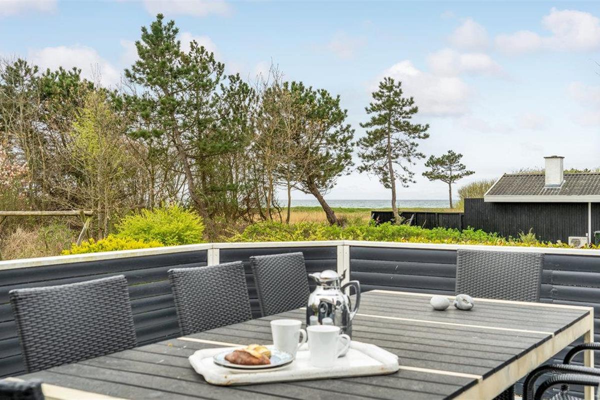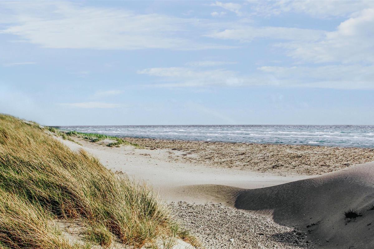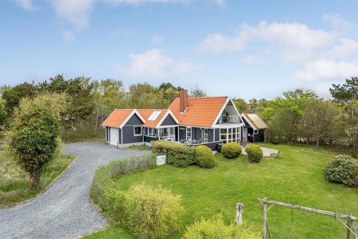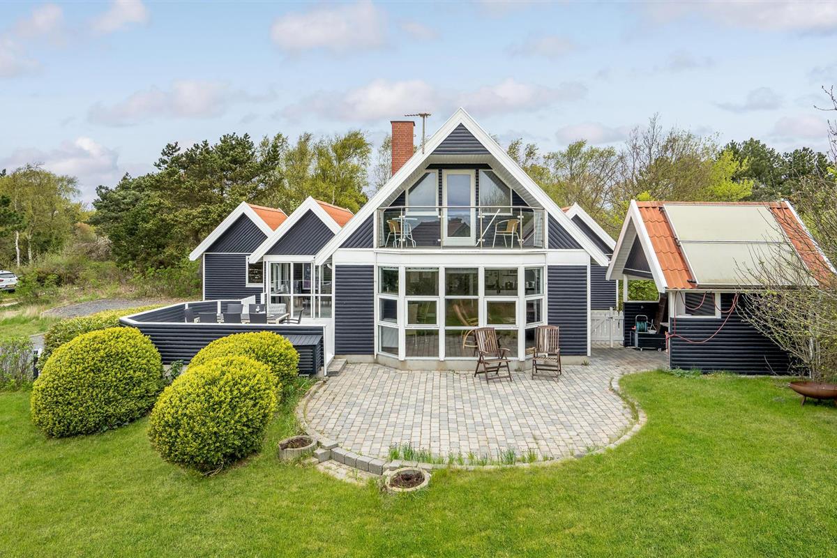 Gezellig houten vakantiehuis bij Øer Strand met jacuzzi, open haard en prachtig uitzicht op zee.