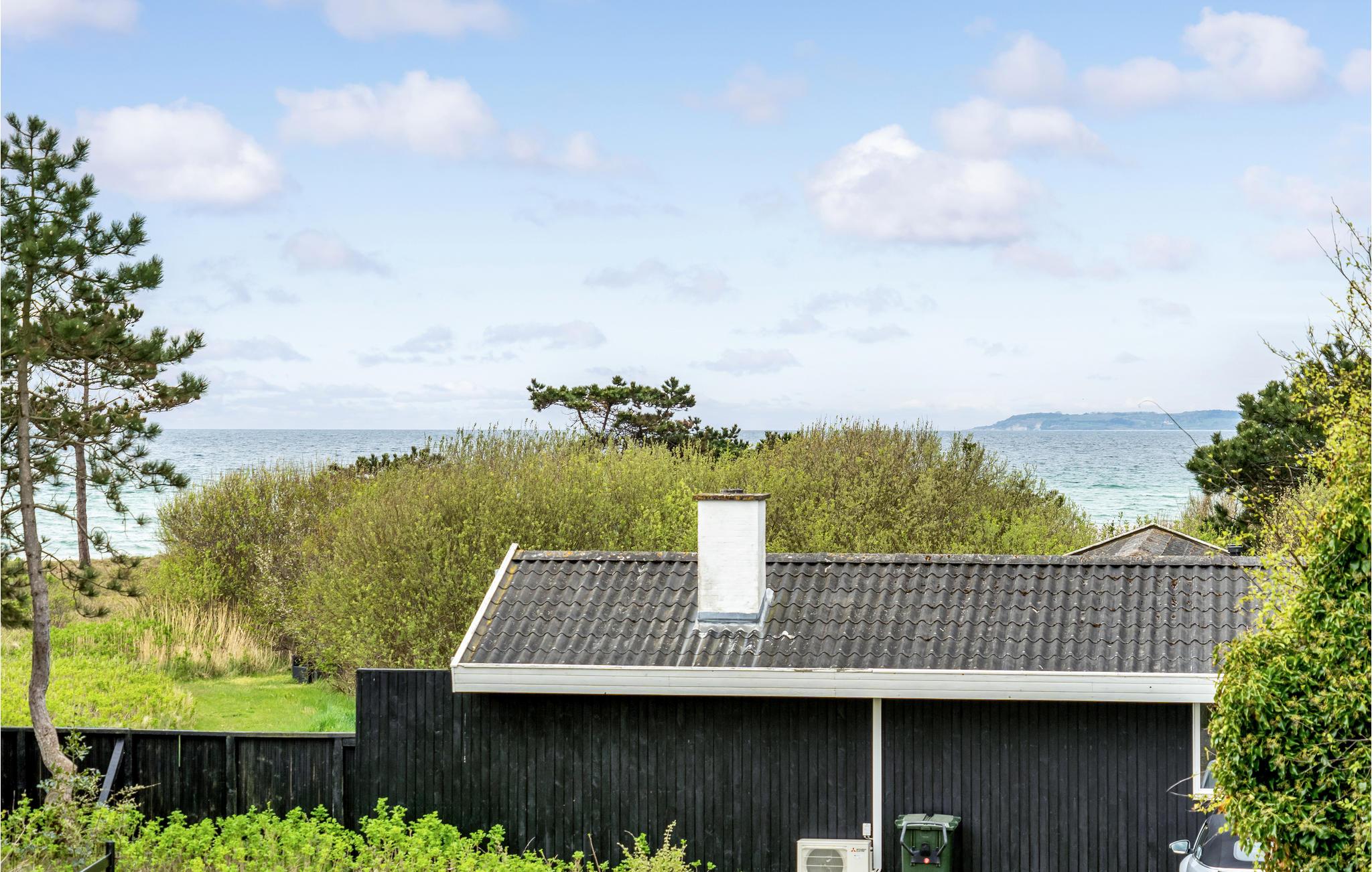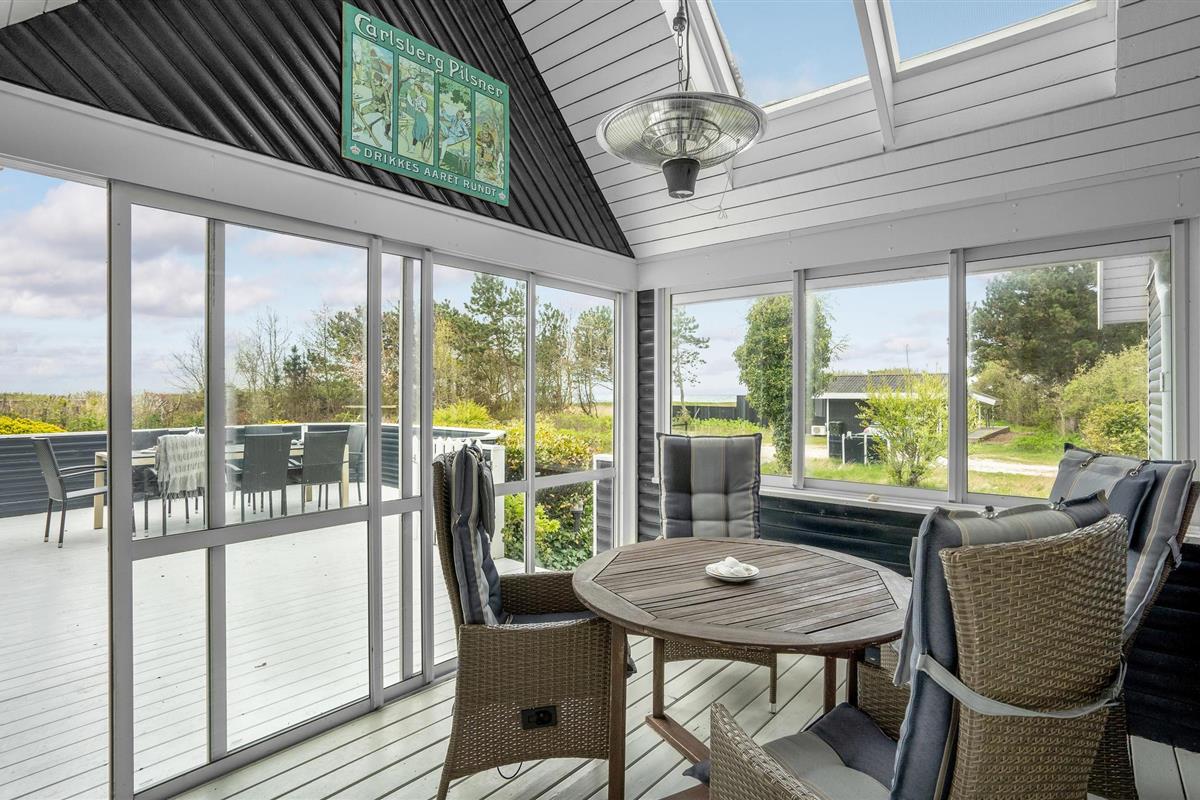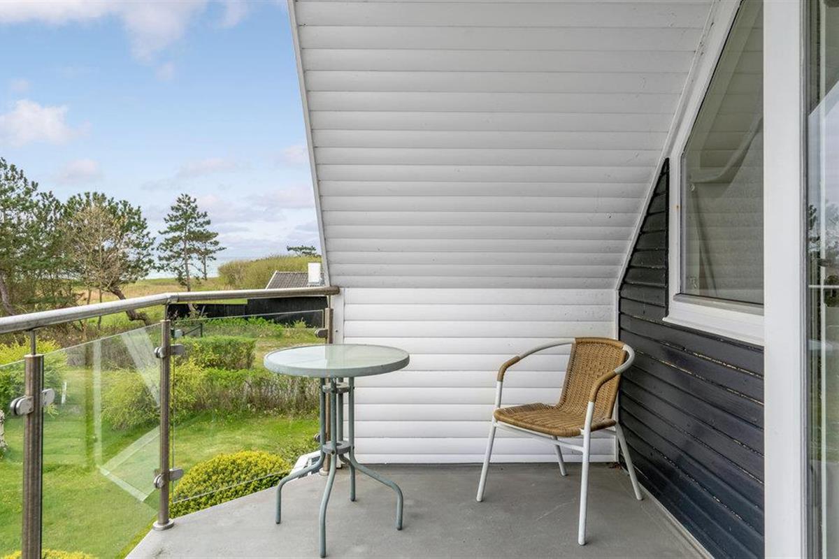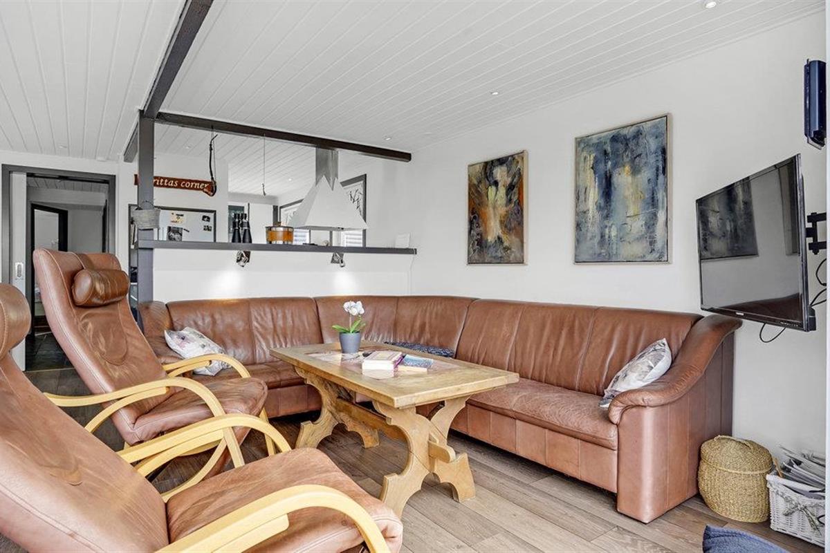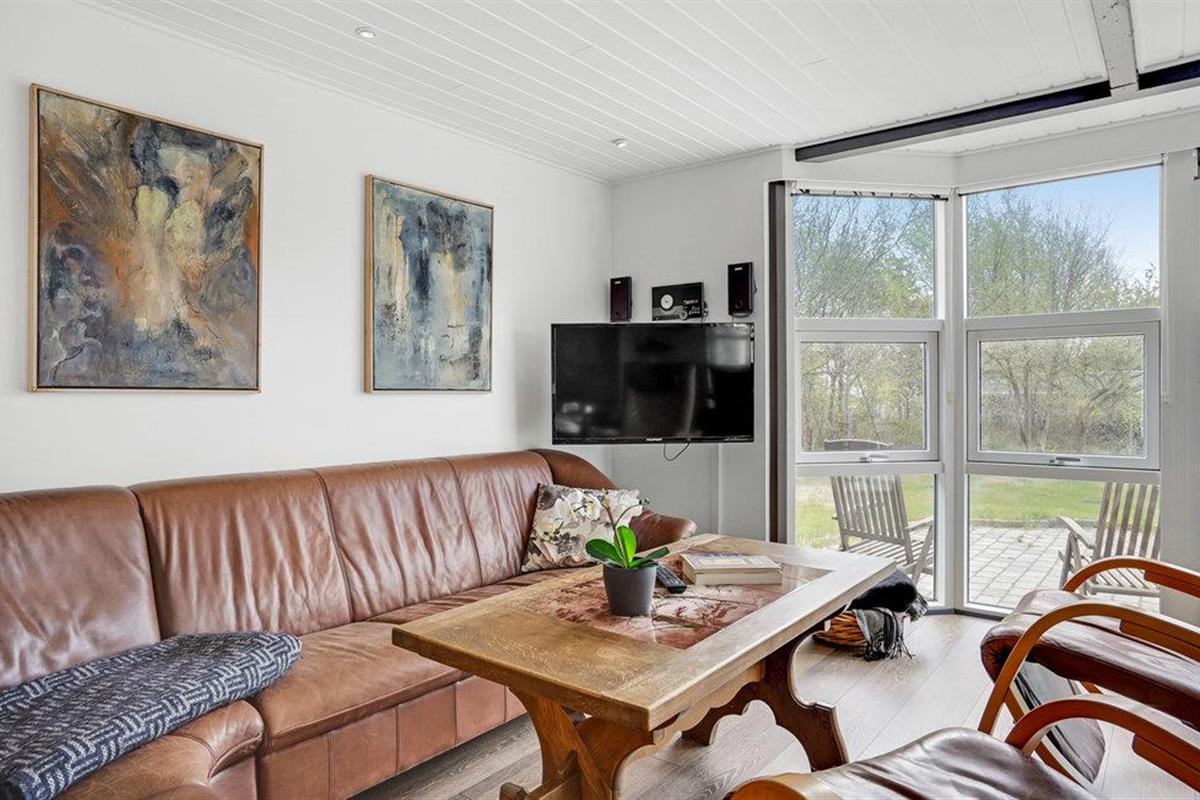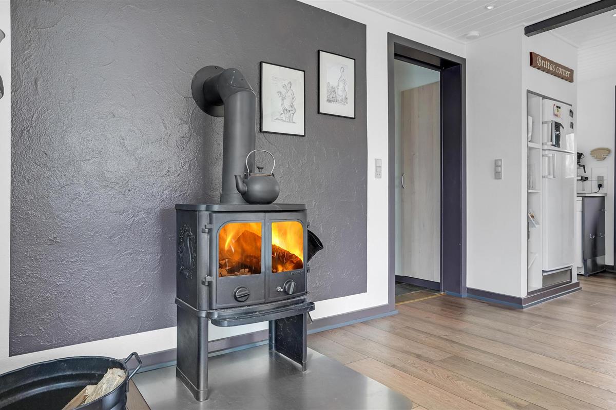 Gezellig houten vakantiehuis bij Øer Strand met jacuzzi, open haard en prachtig uitzicht op zee.