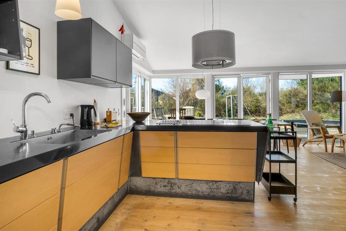 De rustige, verkeersarme locatie is ideaal voor gezinnen - je kinderen kunnen hier veilig rondlopen. Op slechts een kilometer afstand ligt een singletrack mountainbikeroute te wachten op avonturiers. De historische stad Ebeltoft met zijn geplaveide straten, het beroemde glasmuseum en het indrukwekkende fregat Jylland liggen op slechts een paar minuten rijden. De omgeving nodigt uit tot kustwandelingen, excursies naar het nationale park Mols Bjerge of ontspannende dagen aan het strand.