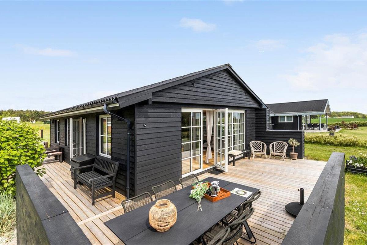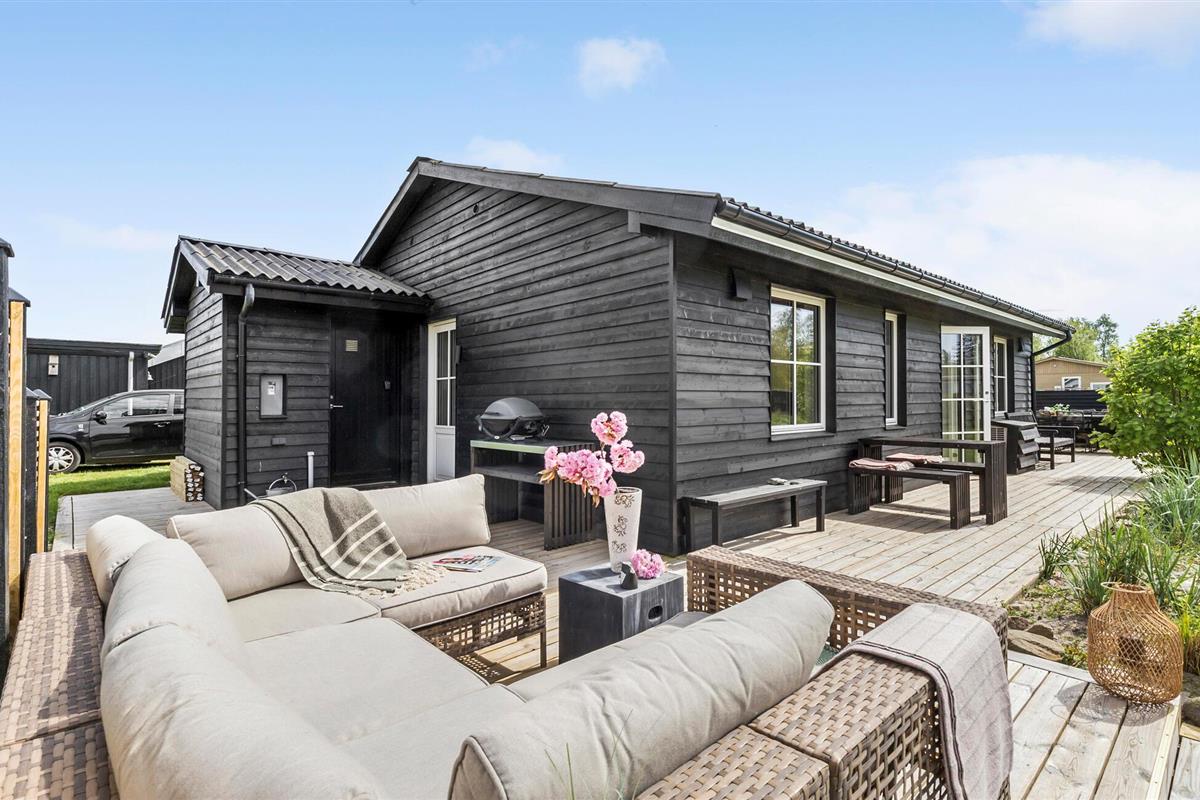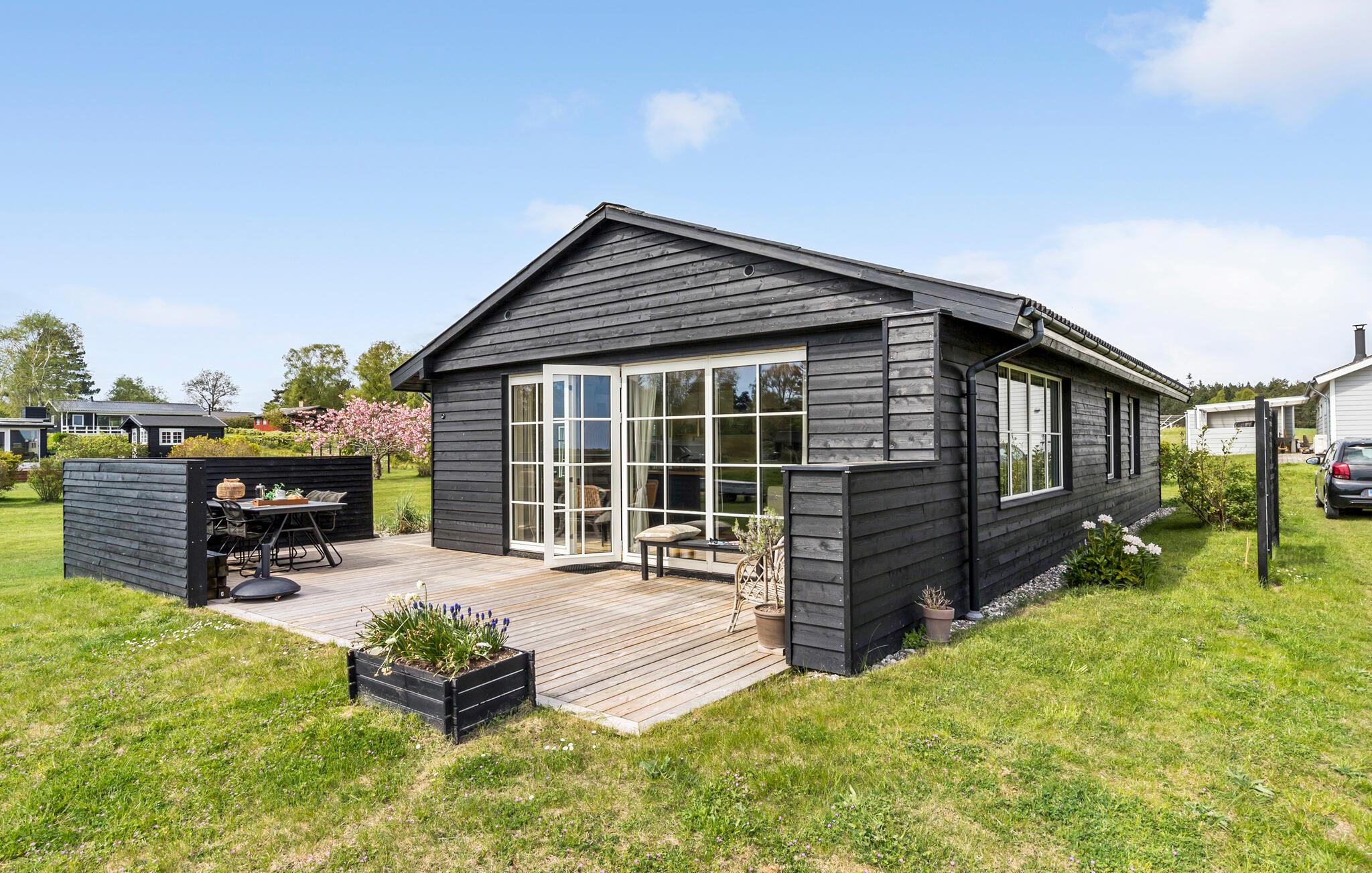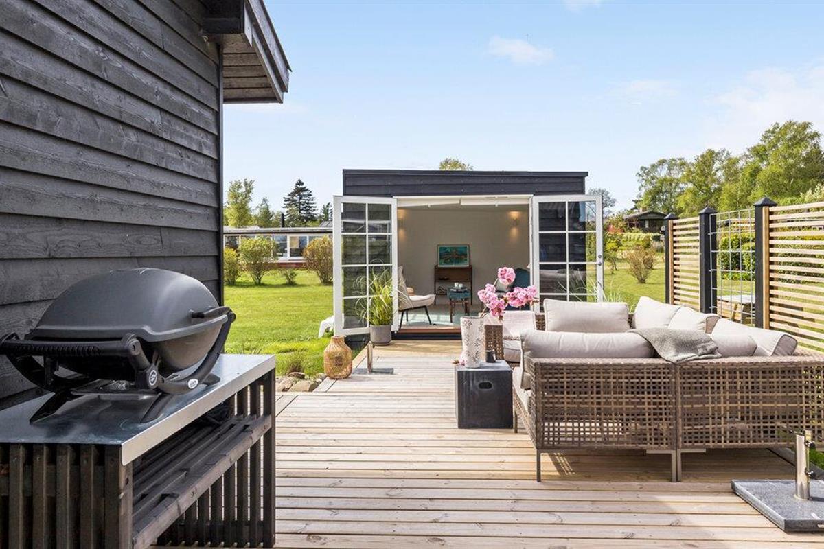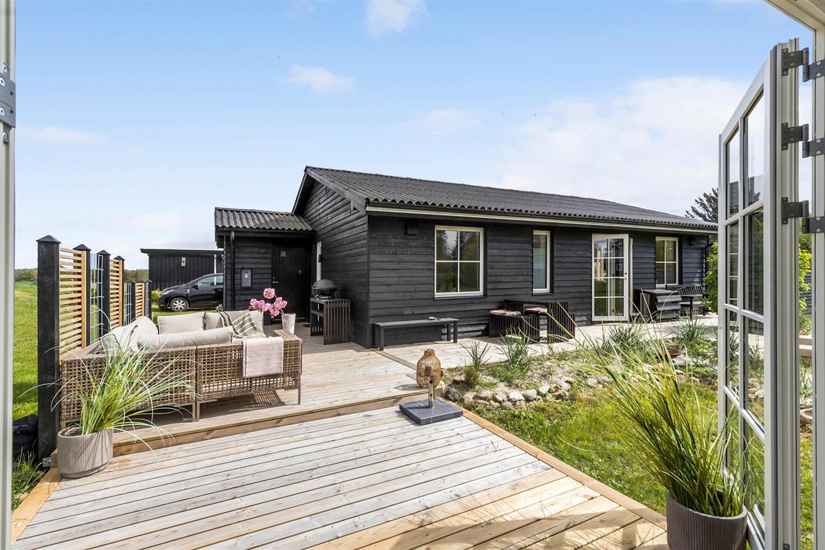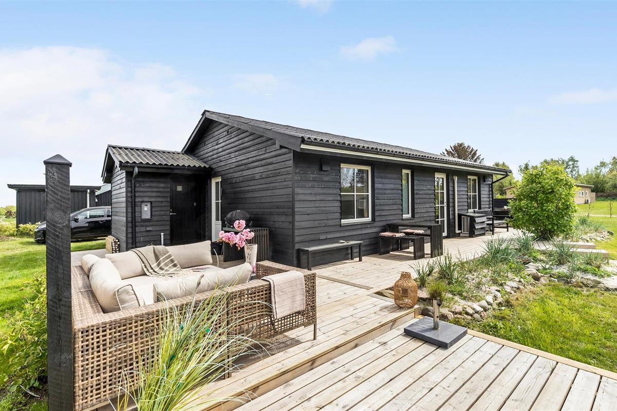 Modern en gezellig vakantiehuis nabij Ebeltoft met groot terras, tuin en vlakbij zee en natuur.