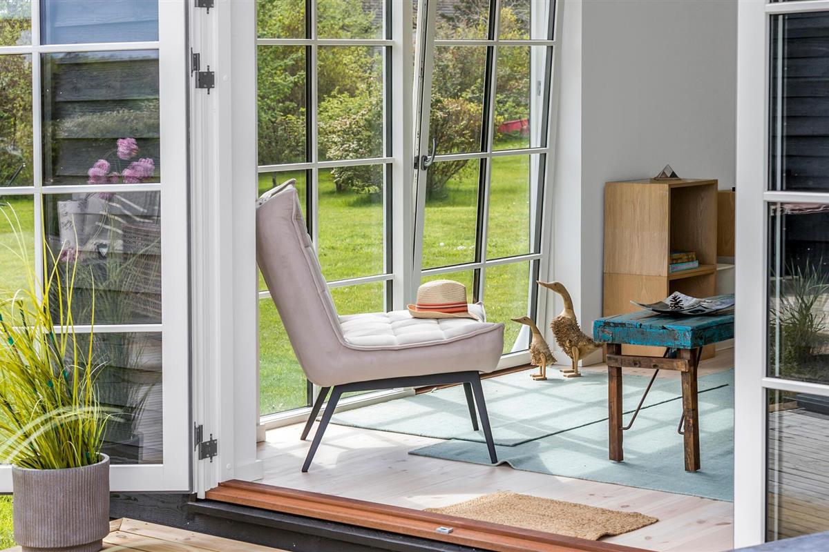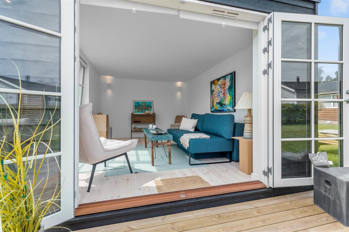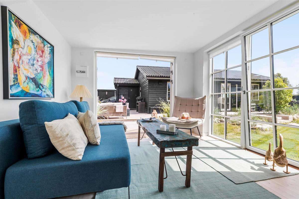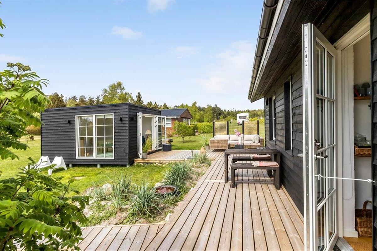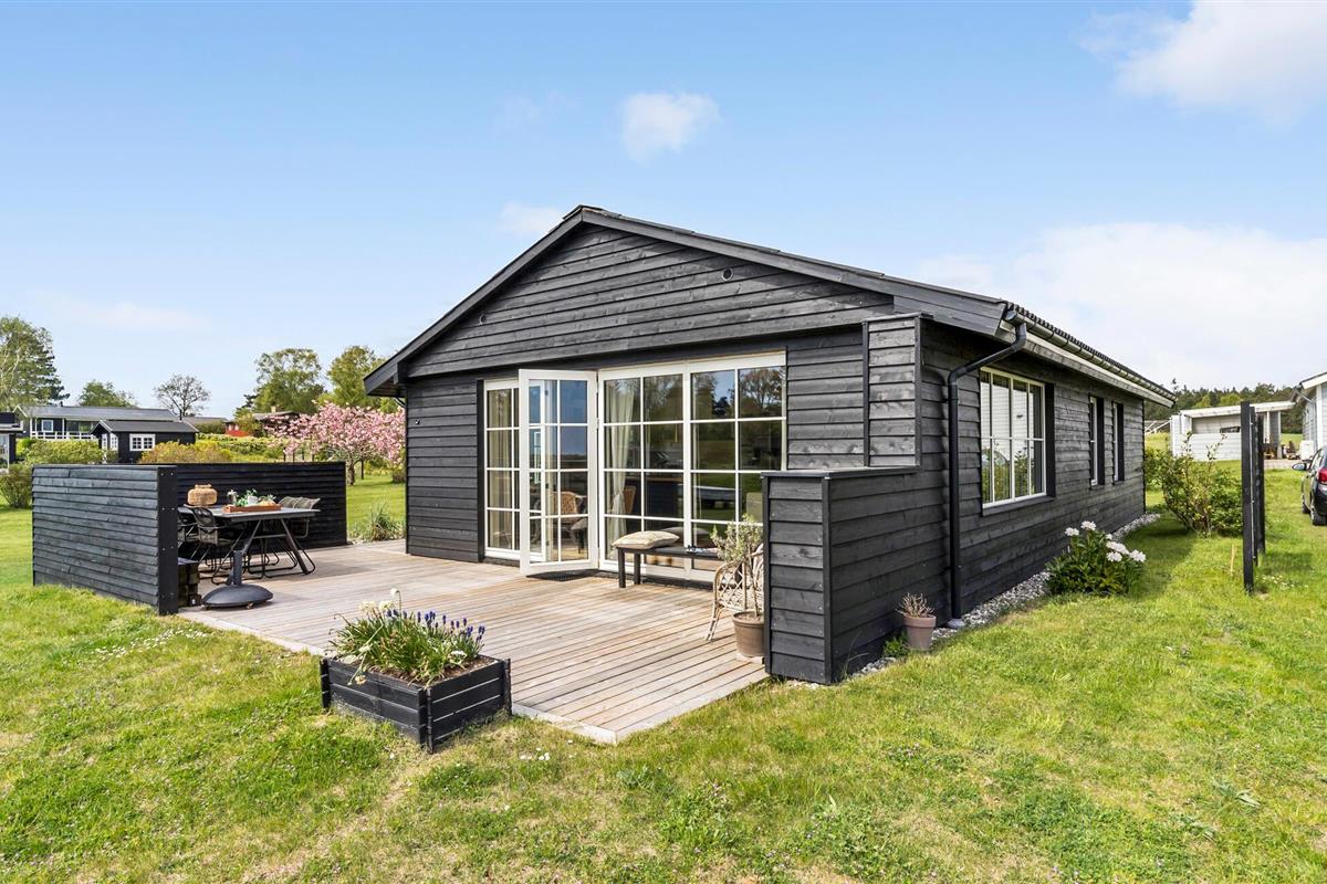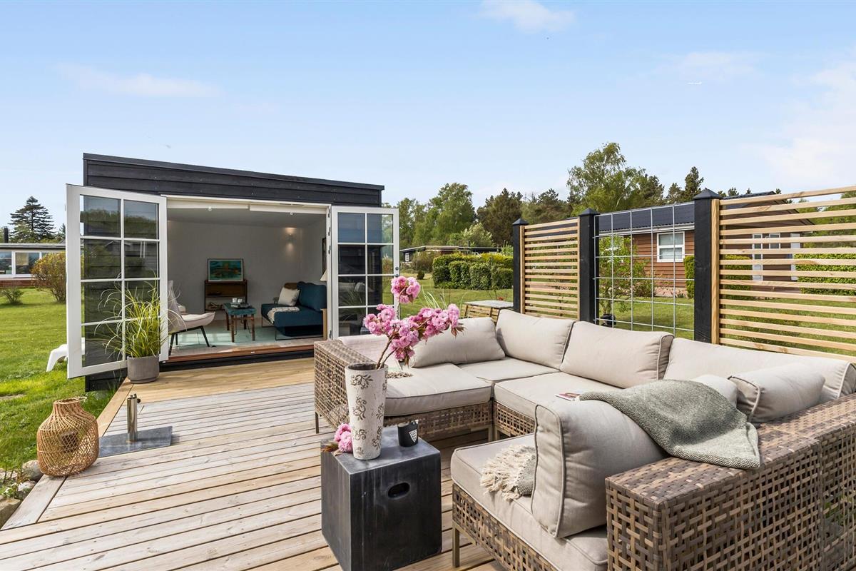 Modern en gezellig vakantiehuis nabij Ebeltoft met groot terras, tuin en vlakbij zee en natuur.