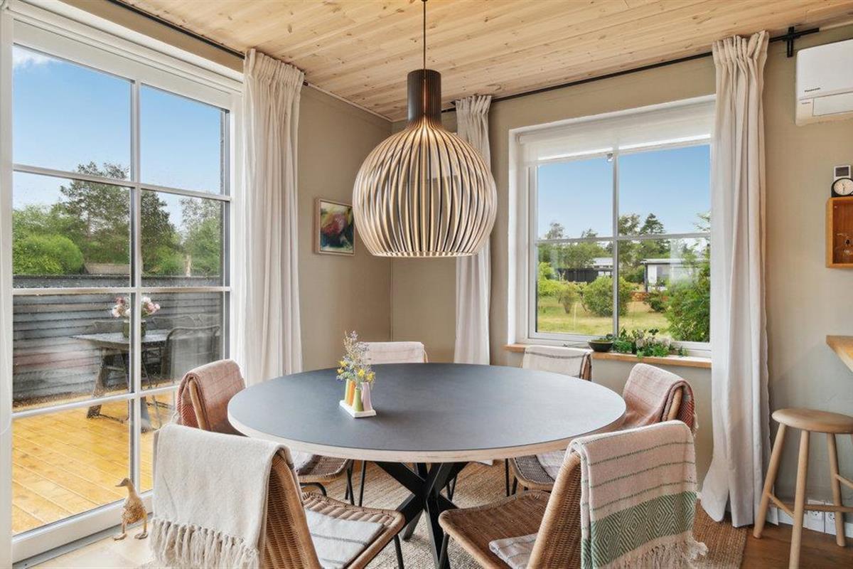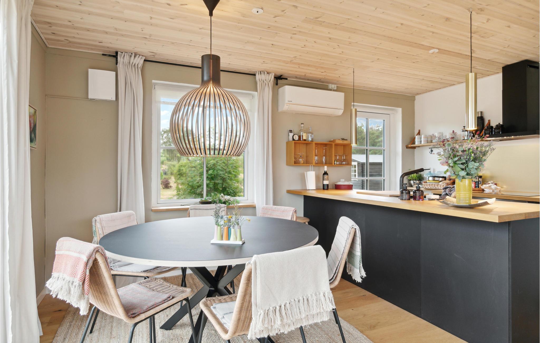 Ten zuiden van Ebeltoft verwelkomt dit mooie vakantiehuis u met een ruim houten terras. Maak het vakantiehuis de uwe en hanteer uw houten lepels in de mooie keuken, speel een bordspel aan de eettafel en geniet van een spannende film op de bank met een kom popcorn. Naast de natuurlijke lichtinval in het huis valt het mooie huis op door het grote terras dat het hele huis omringt. Afhankelijk van het moment van de dag kunt u meewandelen met de zon of een schaduwrijk plekje opzoeken. Maak het uzelf gemakkelijk, geniet van de zonnestralen en kijk hoe uw kinderen ravotten op het gazon terwijl u uw voeten omhoog legt.