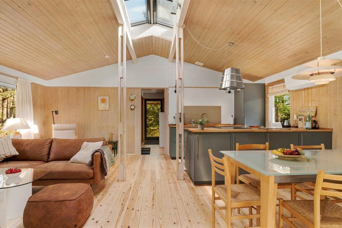 Op een rustig en privéterrein, omgeven door veel bomen, heet dit lichte en smaakvol ingerichte vakantiehuis u welkom. Hier kunt u zich verheugen op comfort en een moderne inrichting. Dakramen laten de leefruimte schijnen in natuurlijk daglicht en bieden u een fijne feel-good sfeer bij het koken, spelen of ontspannen.