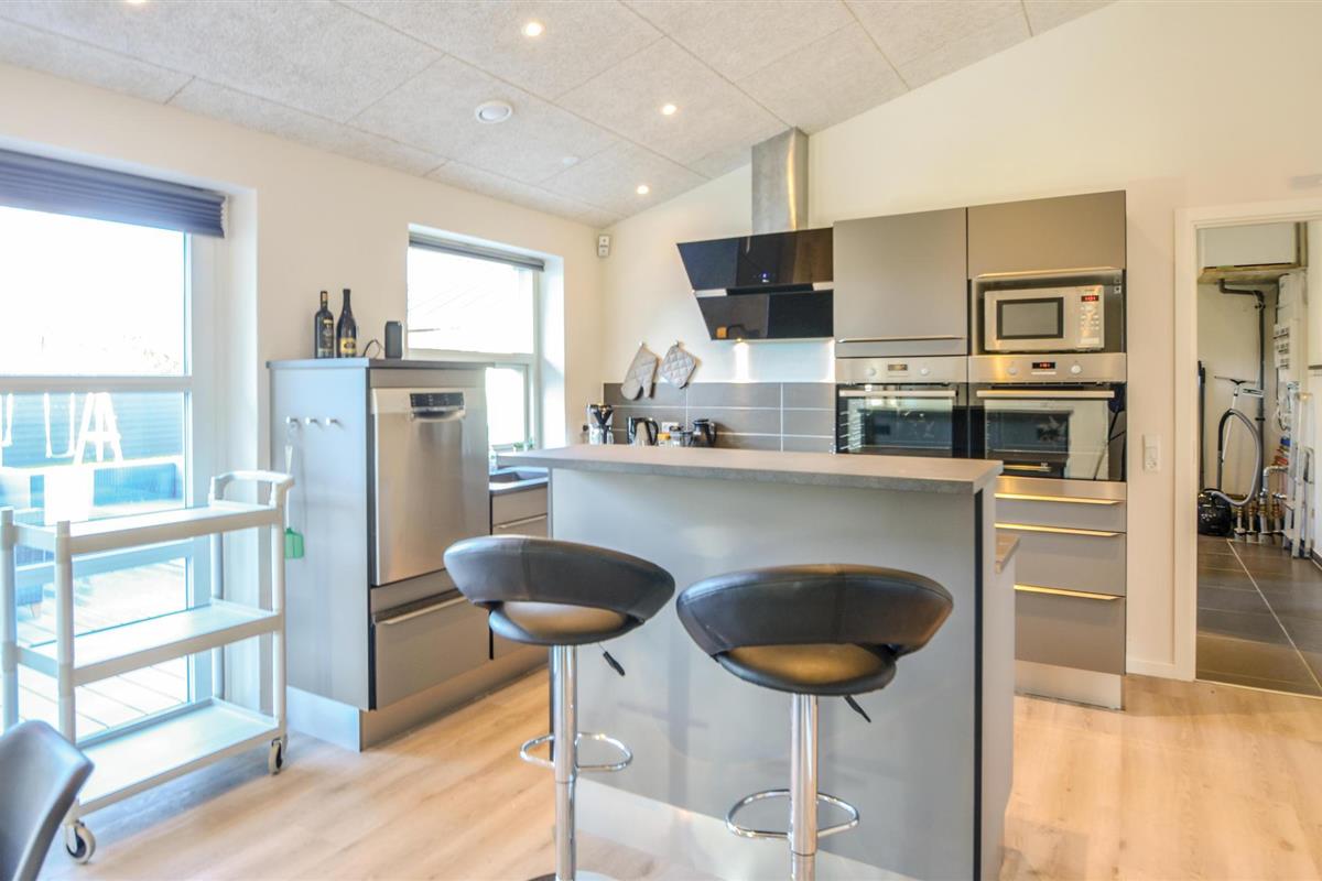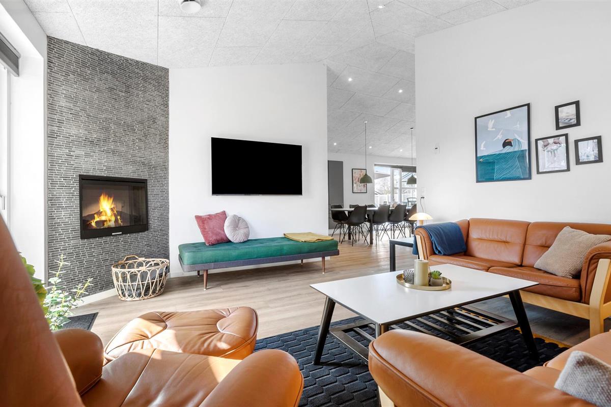 Je ruime vakantiehuis biedt je een warm welkom en de ideale omgeving voor een afwisselende vakantie met je familie of vrienden. Het comfortabele vakantiehuis ligt aan Øer Strand en creëert een aangename sfeer met zijn stijlvolle inrichting en moderne design. Kom samen in de grote woonkamer en breng gezellige uren door voor de houtkachel of geniet van filmavonden op de bank. Bereid heerlijke maaltijden in de moderne keuken en speel daarna een potje pool of tafelvoetbal. Na een dag vol belevenissen zorgt de sauna voor pure ontspanning.